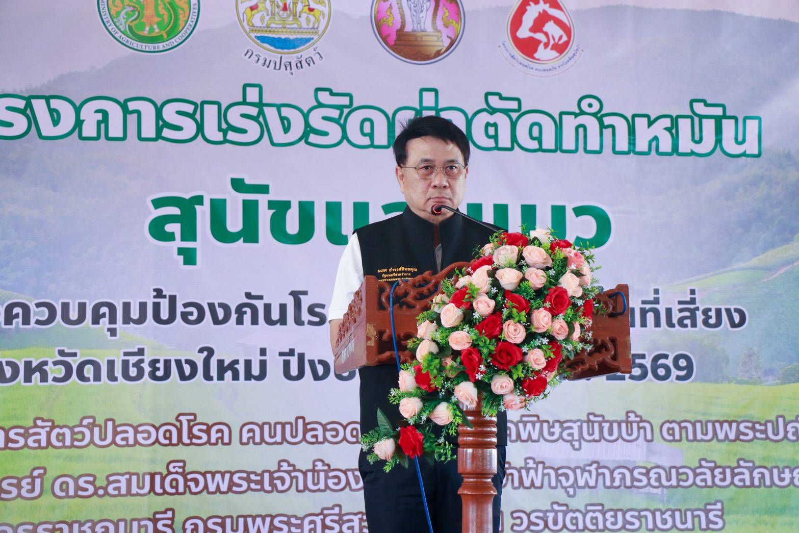 วันที่ 21 พ.ย. 68) นายนเรศ ธำรงค์ทิพยคุณ รัฐมนตรีช่วยว่าการกระทรวงเกษตรและสหกรณ์ ลงพื้นที่ไปยังตลาดนาเจริญ ตำบลข่วงเปา อำเภอจอมทอง จังหวัดเชียงใหม่ เปิดโครงการเร่งรัดผ่าตัดทำหมันสุนัขและแมว เพื่อควบคุมป้องกันโรคพิษสุนัขบ้าในพื้นที่เสี่ยงจังหวัดเชียงใหม่ ประจำปีงบประมาณ พ.ศ. 2569 ซึ่งจัดขึ้นภายใต้โครงการสัตว์ปลอดโรคคนปลอดภัยจากโรคพิษสุนัขบ้า ตามพระปณิธานของสมเด็จพระเจ้าน้องนางเธอ เจ้าฟ้าจุฬาภรณวลัยลักษณ์ อัครราชกุมารี กรมพระศรีสวางควัฒน วรขัตติยราชนารี