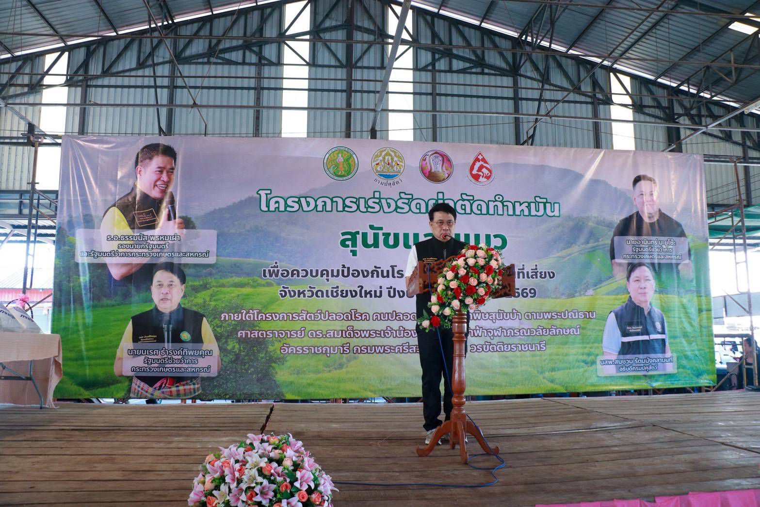 รัฐมนตรีช่วยว่าการกระทรวงเกษตรและสหกรณ์ ลงพื้นที่ อำเภอจอมทอง จังหวัดเชียงใหม่ เปิดโครงการเร่งรัดผ่าตัดทำหมันสุนัขและแมว เพื่อควบคุมป้องกันโรคพิษสุนัขบ้าในพื้นที่เสี่ยง พร้อมพบปะเกษตรกรเพื่อรับฟังปัญหาด้านการเกษตรในพื้นที่