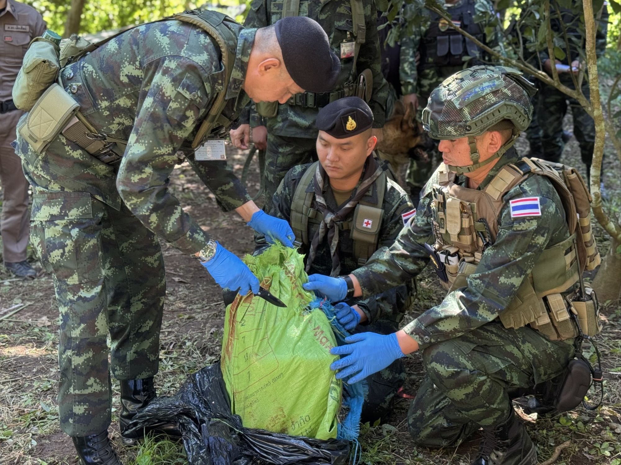 หลังรับแจ้ง เจ้าหน้าที่จึงจัดกำลังร่วมกับ ชุดปฏิบัติการข่าวที่ 3 (ชป.สท.3) และเจ้าหน้าที่ตำรวจ สภ.เชียงดาว (ประจำด่านตรวจแก่งปันเต๊า) เข้าตรวจสอบพื้นที่ดังกล่าว จากการตรวจสอบพบเป้กระสอบดัดแปลงห่อหุ้มด้วยถุงพลาสติกสีดำ จำนวน 4 กระสอบ วางทิ้งไว้ในสวนส้มโอ โดยไม่พบกลุ่มขบวนการหรือผู้แสดงตัวเป็นเจ้าของ