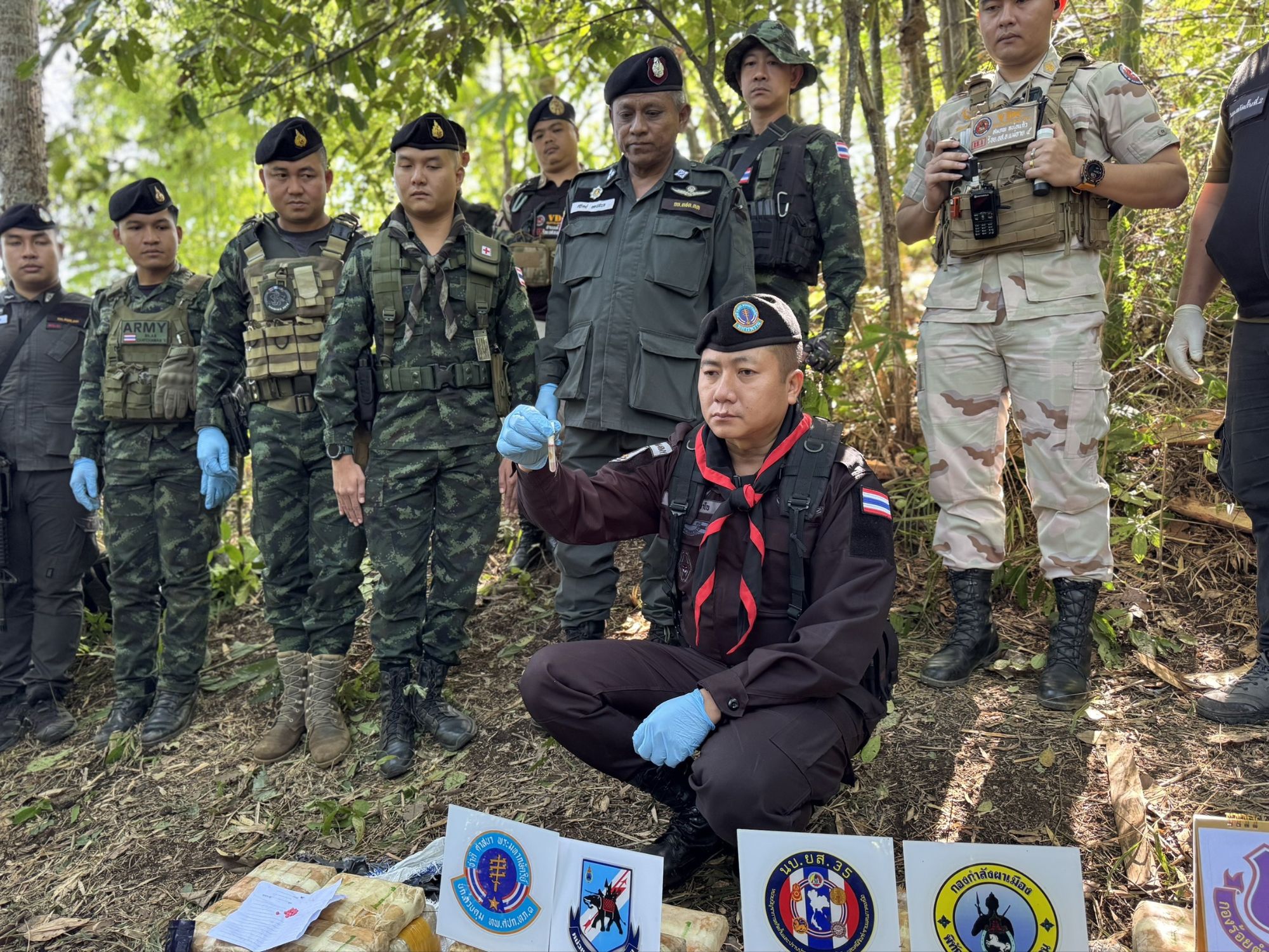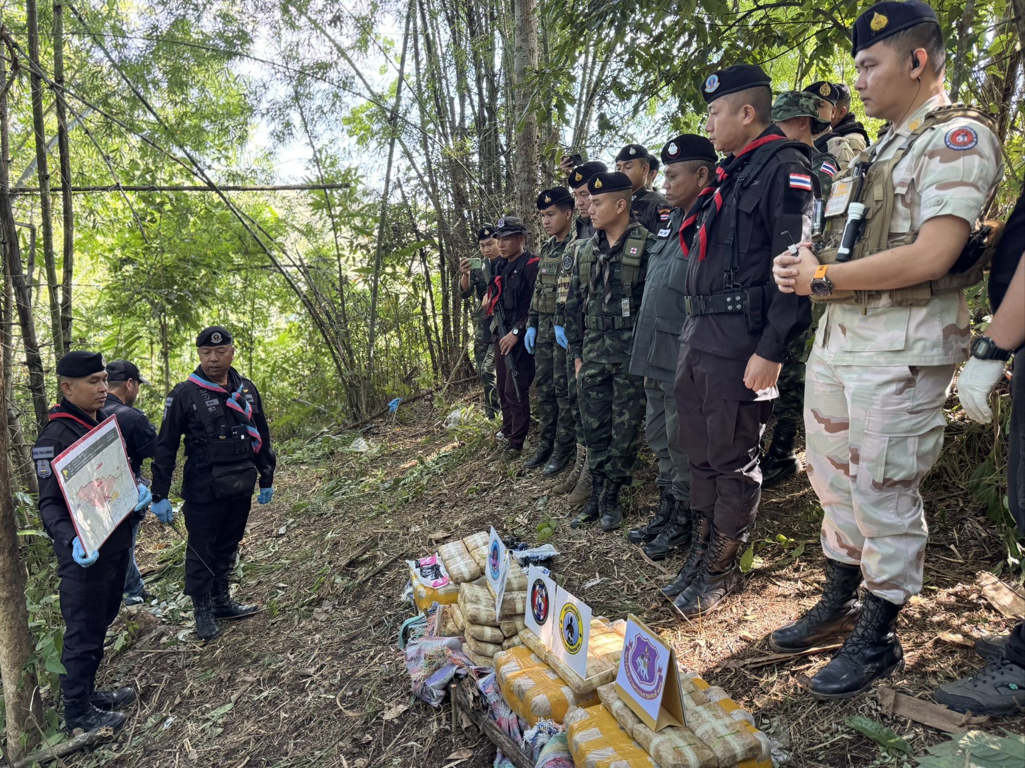 ต่อมาเมื่อวันที่ 25 พฤศจิกายน 2568 เวลา 07.30 น. ชุดปฏิบัติการ ได้ตรวจพบกลุ่มบุคคลต้องสงสัย ประมาณ 5- 8 คน เดินเท้าสะพายเป้มาตามเส้นทางภูมิประเทศ หน่วยจึงได้แสดงตัวเพื่อขอตรวจค้น แต่กลุ่มบุคคลดังกล่าวได้ใช้อาวุธปืนไม่ทราบชนิดยิงใส่ฝ่ายเรา ทำให้เกิดการปะทะกันประมาณ 5 นาที เมื่อสิ้นสุดการปะทะ ฝ่ายเราปลอดภัย กลุ่มบุคคลดังกล่าวได้ทิ้งสิ่งของไว้ และใช้ความชำนาญในพื้นที่หลบหนีไปได้ หน่วยจึงได้จัดกำลังพลเพิ่มเติม 2 ชุดปฏิบัติการ เข้าควบคุมพื้นที่เกิดเหตุ ตรวจพบกระสอบดัดแปลง จำนวน 4 เป้ ภายในบรรจุยาเสพติดให้โทษประเภท 1 (ยาบ้า) รวมจำนวนประมาณ 500,000 เม็ด