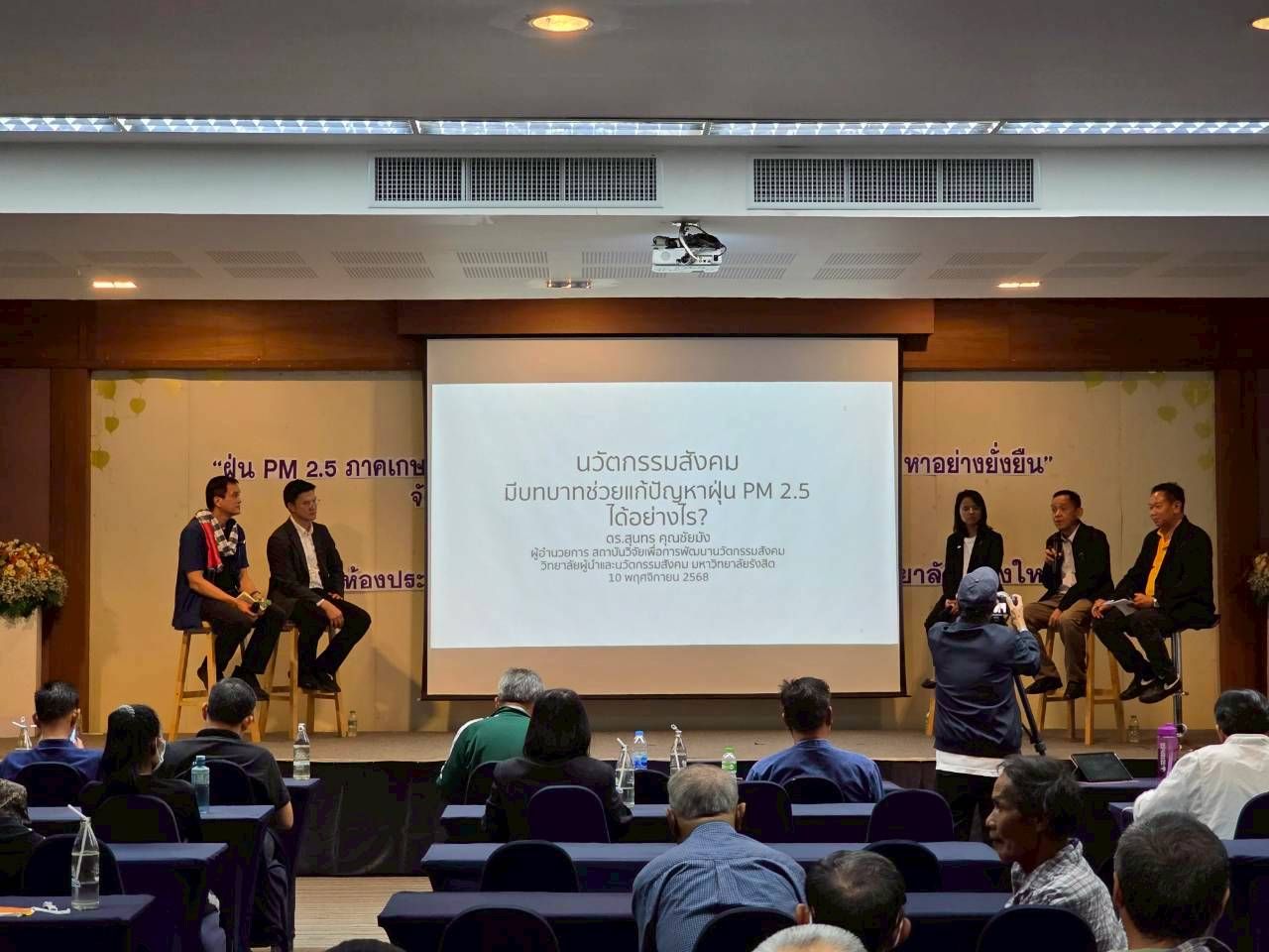 รศ.ดร.สมเกียรติ ชัยพิบูลย์ คณบดีคณะสารสนเทศและการสื่อสาร มหาวิทยาลัยแม่โจ้ และหัวหน้าโครงการธรรมชาติปลอดภัย แม่ปาน-สันเกี๋ยงโมเดล ร่วมบรรยายและแบ่งปันประสบการณ์การทำงานการพัฒนาชุมชนในพื้นที่แม่แจ่ม ในงานเสวนา “ฝุ่น PM 2.5 ภาคเกษตรสร้างปัญหาจริงหรือ? ระดมสมองแก้ปัญหาอย่างยั่งยืน” ที่จัดโดยสมาคมสื่อมวลชนเกษตรแห่งประเทศไทย ทั้งนี้อาจารย์ได้ กล่าวถึงจุดเริ่มต้นของโครงการธรรมชาติปลอดภัย แม่ปาน-สันเกี๋ยงโมเดลเมื่อปี 2555 ซึ่งเป็นความร่วมมือระหว่างมหาวิทยาลัยแม่โจ้ และบริษัทเจริญโภคภัณฑ์ โปรดิ๊วส จำกัด เพื่อแก้ไขปัญหาหมอกควันไฟป่าและการเผาพื้นที่เกษตรในอำเภอแม่แจ่ม จังหวัดเชียงใหม่ ตลอดจนพัฒนาแนวทางการเกษตรและสร้างรายได้ที่ยั่งยืนให้กับชุมชน