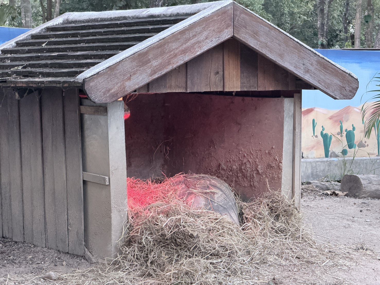 4.จัดทำจุดหลบลมหนาว จัดเตรียมซุ้มหรือบ้านกำบังลมในคอกต่าง ๆ โดยเฉพาะสัตว์ที่ต้องการการดูแลเป็นพิเศษ เช่น เต่าซูลคาตา
