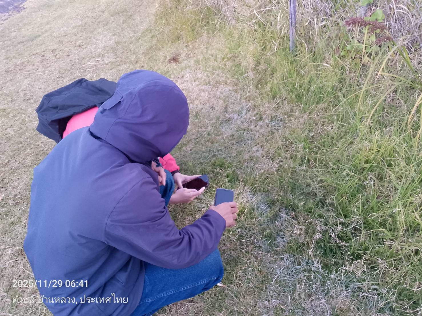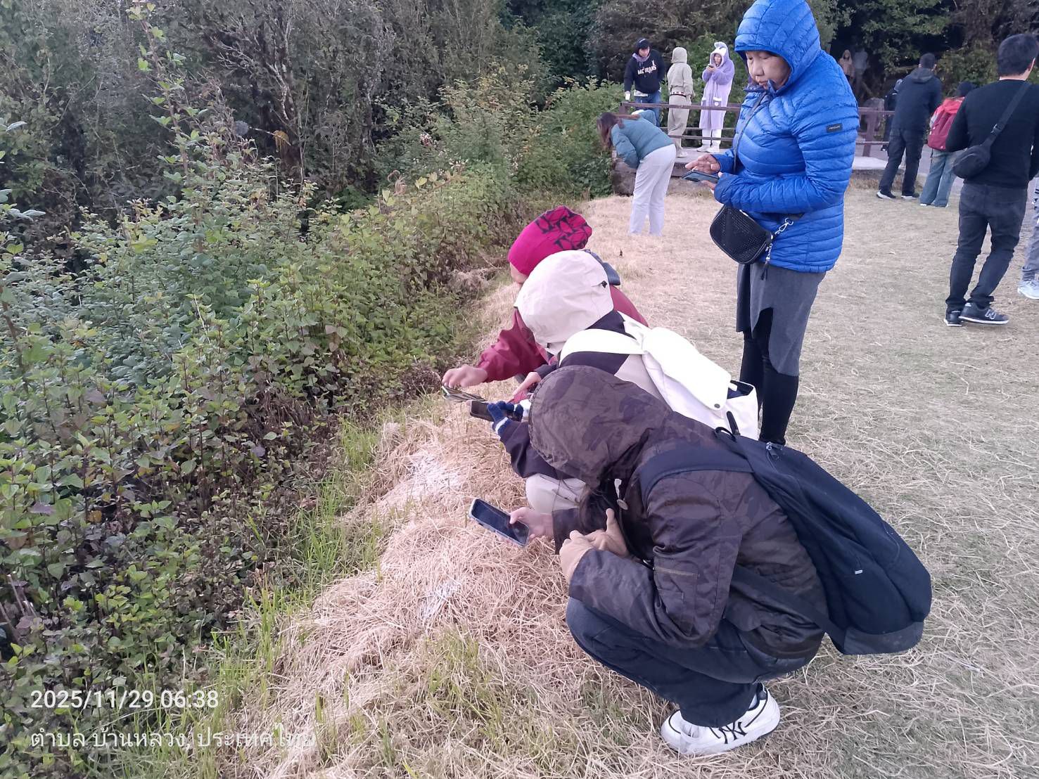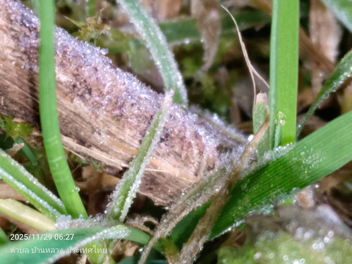 พบ “เหมยขาบ” (น้ำค้างแข็ง) ซึ่งถือเป็นครั้งที่ 6 ติดต่อกันของฤดูหนาวปี 2568 โดยเหมยขาบพบในบริเวณด้านหน้าหน่วยพิทักษ์อุทยานแห่งชาติ ที่ อน.5 (ยอดดอย) และบริเวณลานจอดรถ แม้ว่าอุณหภูมิที่ตรวจวัดที่หน่วยพิทักษ์ฯ จะอยู่ที่ 7 องศาเซลเซียส (เวลา 06.00 น.) แต่ อุณหภูมิยอดหญ้า ได้ลดต่ำลงถึง 0.1 องศาเซลเซียส ซึ่งเป็นสาเหตุให้เกิดปรากฏการณ์น้ำค้างแข็งขึ้น
