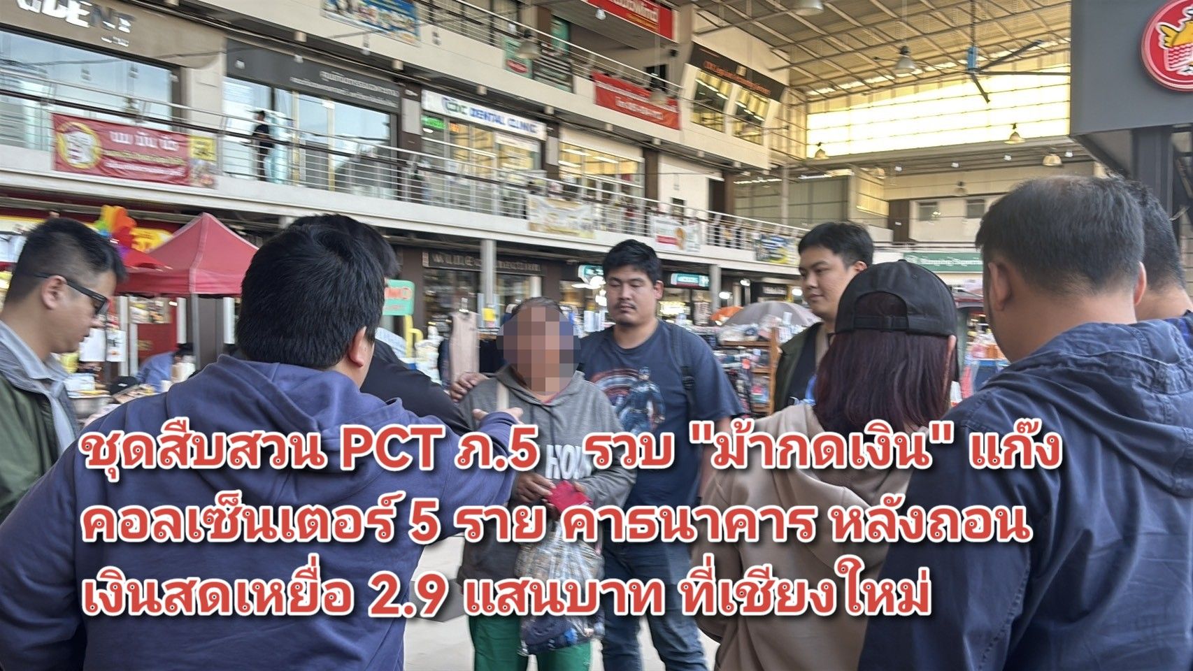 ชุดสืบสวน PCT ภ.5 รวบ “ม้ากดเงิน” แก๊งคอลเซ็นเตอร์ 5 ราย คาธนาคาร หลังถอนเงินสดเหยื่อ 2.9 แสนบาท ที่เชียงใหม่