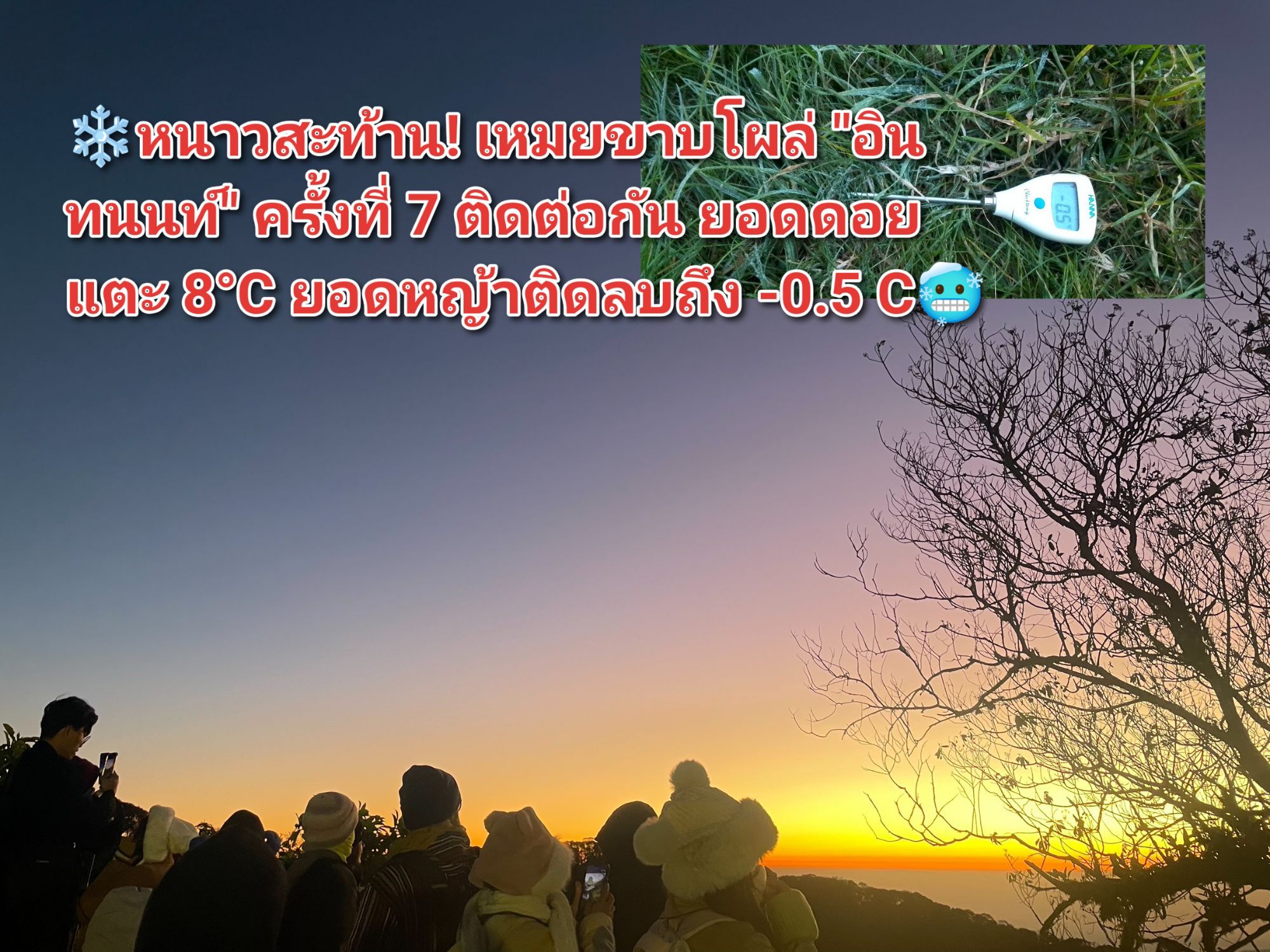 ❄️หนาวสะท้าน! เหมยขาบโผล่ “อินทนนท์” ครั้งที่ 7 ติดต่อกัน ยอดดอยแตะ 8°C ยอดหญ้าติดลบ!🥶