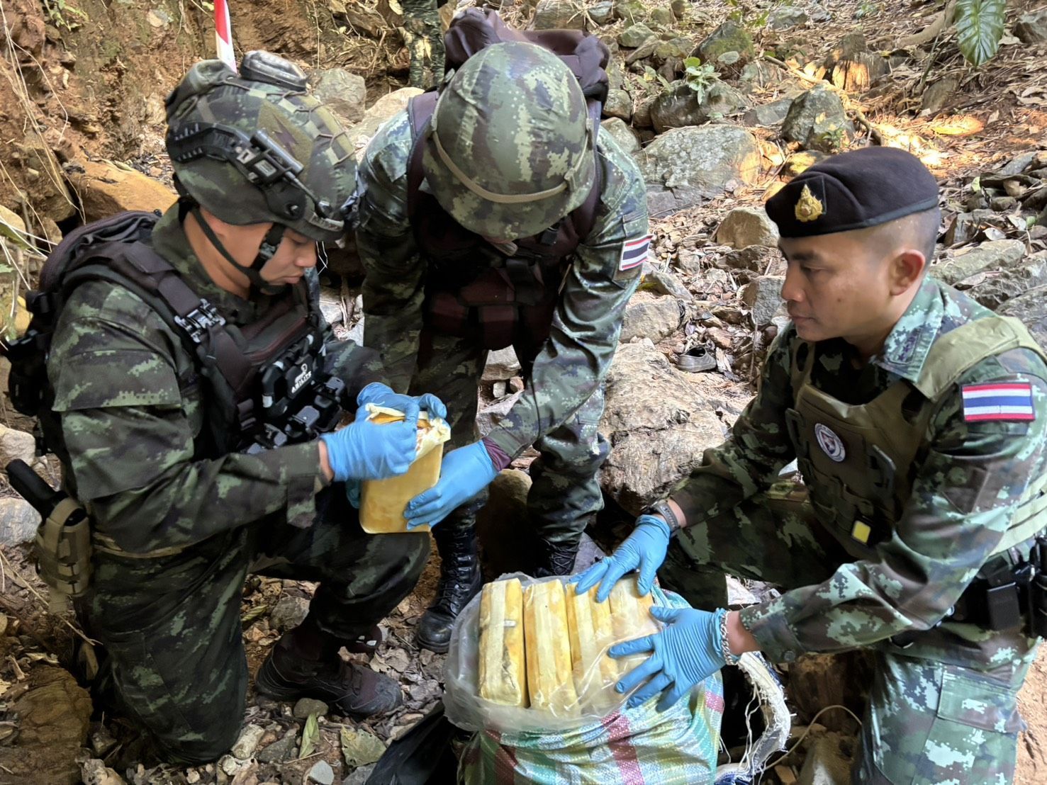 เมื่อวันที่ 29 พฤศจิกายน 2568 เวลา 19.00 น. กองกำลังผาเมือง โดย กองร้อยทหารม้าที่ 2 กองบังคับการควบคุมผาแด่น หน่วยเฉพาะกิจทัพเจ้าตาก จัดกำลัง จำนวน 2 ชุด ปฏิบัติการ ทำการลาดตระเวนเฝ้าตรวจเพื่อป้องกันและสกัดกั้นการกระทำผิดตามพระราชบัญญัติให้ใช้ ประมวลกฎหมายยาเสพติด พ.ศ. 2564 บริเวณ บ้านผาหมี หมู่ 6 ตำบลเวียงพางคำ อำเภอแม่สาย จังหวัดเชียงราย ตรวจพบกลุ่มบุคคลต้องสงสัยสะพายกระสอบดัดแปลง ประมาณ 10 – 12 คน จึงได้แสดงตัว เพื่อขอทำการตรวจค้น แต่กลุ่มบุคคลดังกล่าวได้ใช้อาวุธปืนไม่ทราบชนิดและขนาดยิงใส่ฝ่ายเรา ทำให้เกิดการปะทะกัน ประมาณ 5 นาที เมื่อสิ้นสุด การปะทะ ฝ่ายเราปลอดภัย กลุ่มบุคคลดังกล่าวได้ทิ้งสิ่งของไว้ และใช้ความชำนาญในพื้นที่หลบหนีไปได้ หน่วยจึงได้จัดกำลังพลเพิ่มเติม 2 ชุดปฏิบัติการ เข้าควบคุมพื้นที่เกิดเหตุ