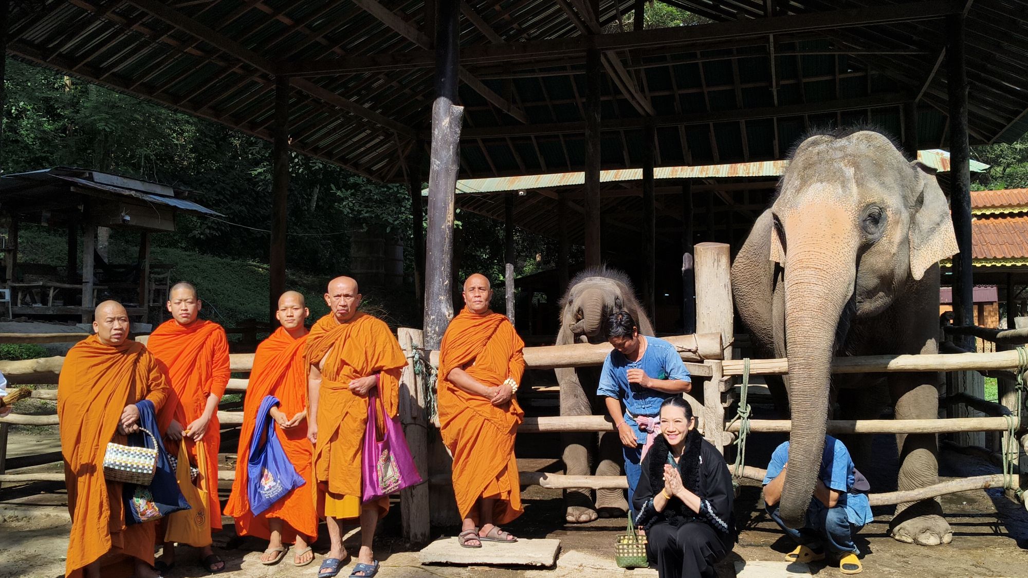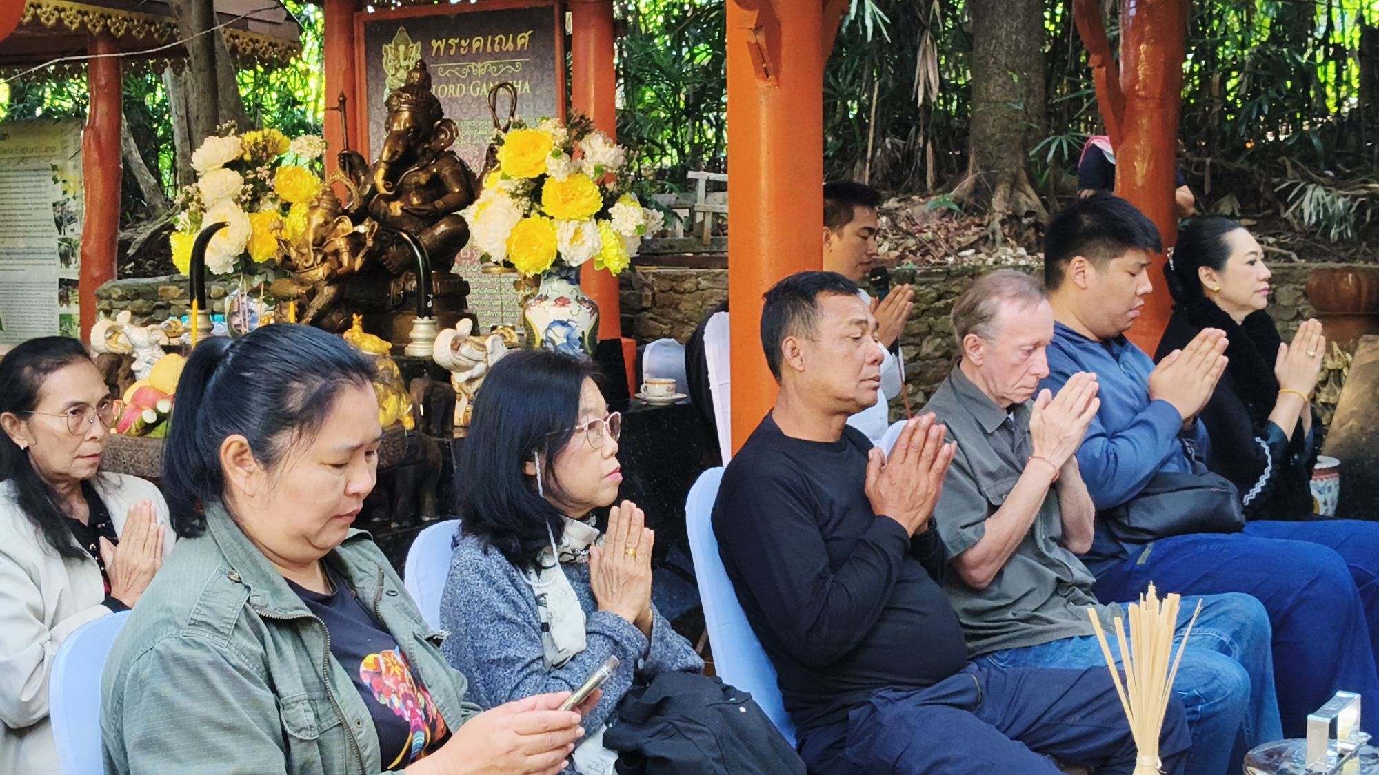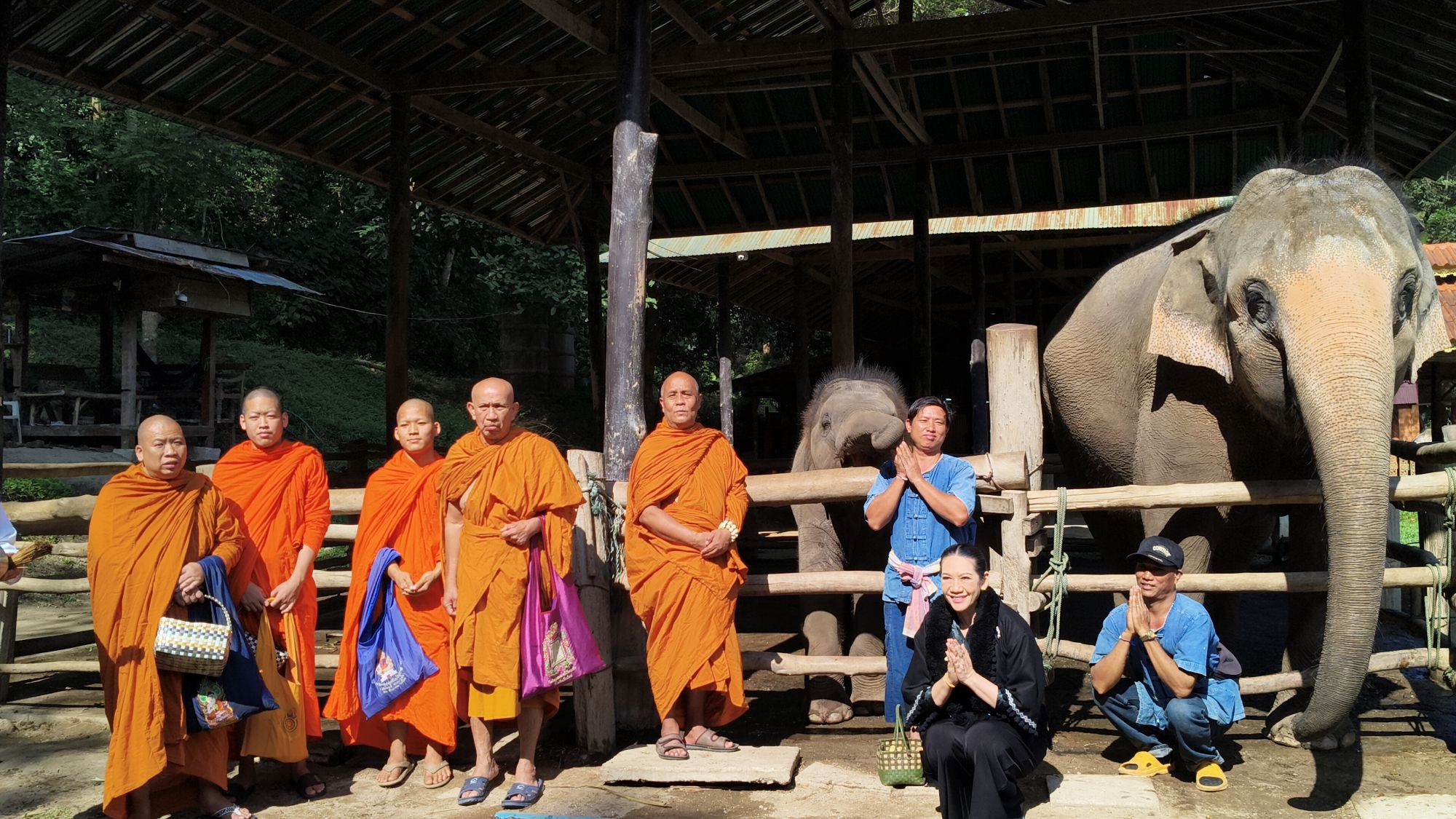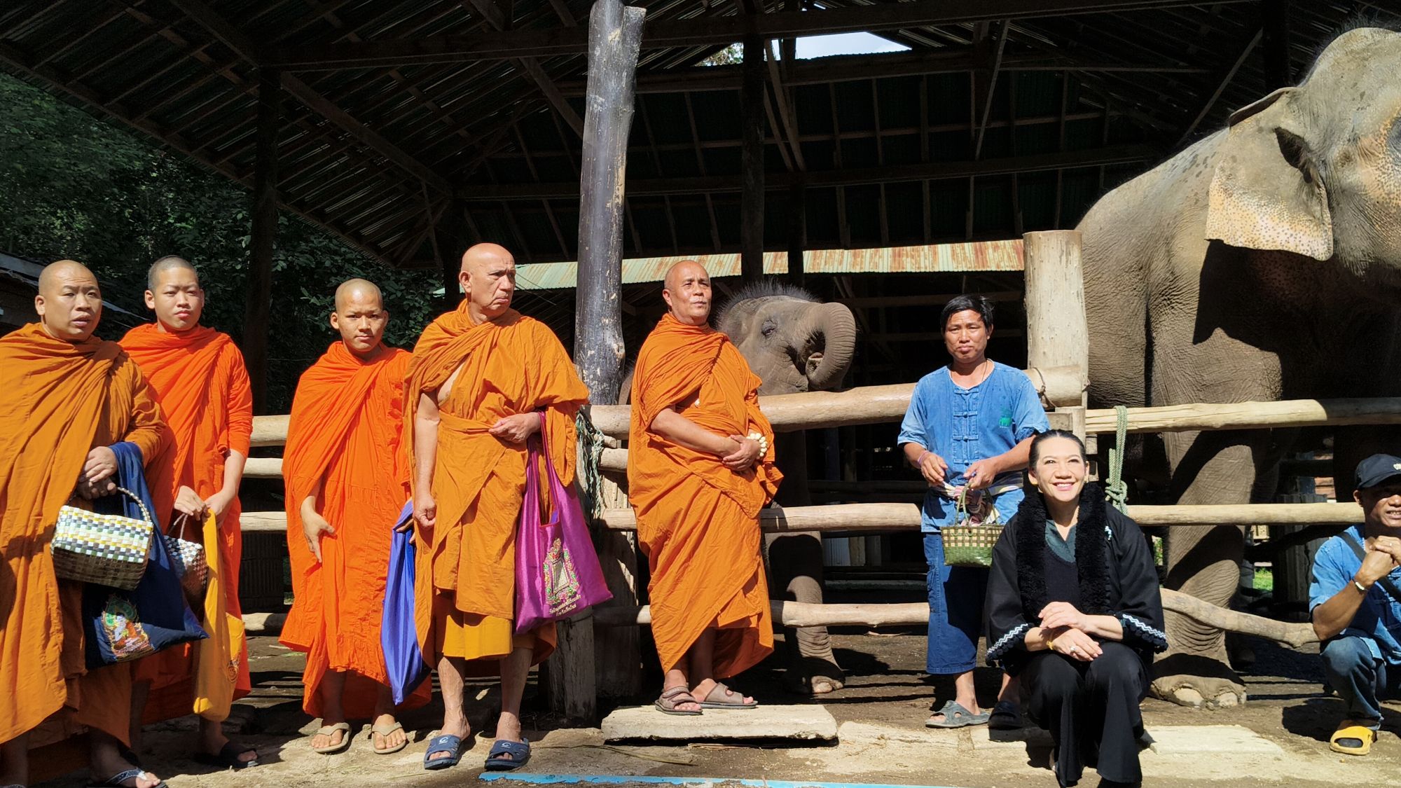 เวลา 10.09 น. ได้เริ่มพิธีสงฆ์ โดยนิมนต์พระสงฆ์จำนวน 5 รูป มาทำพิธีเพื่ออุทิศส่วนบุญส่วนกุศลให้แก่ พ่อเลี้ยงชูชาติ กัลมาพิจิตร, ปู่เชิด กัลมาพิจิตร, ย่าสะอิ้ง ทรรทรานนท์, ป้าสุรางค์ โยมสินธ์, ป้าพาณี กัลมาพิจิตร รวมถึงช้างและควาญช้าง ตลอดจนพนักงานที่ล่วงลับไปแล้ว นอกจากนี้ ยังได้ทำบุญอุทิศส่วนกุญศลไปถึง นายชัยพินธ์ ขัติยะ หรือ “อ้อน ไทยรัฐ” อดีตผู้สื่อข่าวอาวุโสและหัวหน้าศูนย์ข่าวไทยรัฐภาคเหนือ ที่เสียชีวิตเมื่อเดือนมิถุนายน 2568 ด้วย