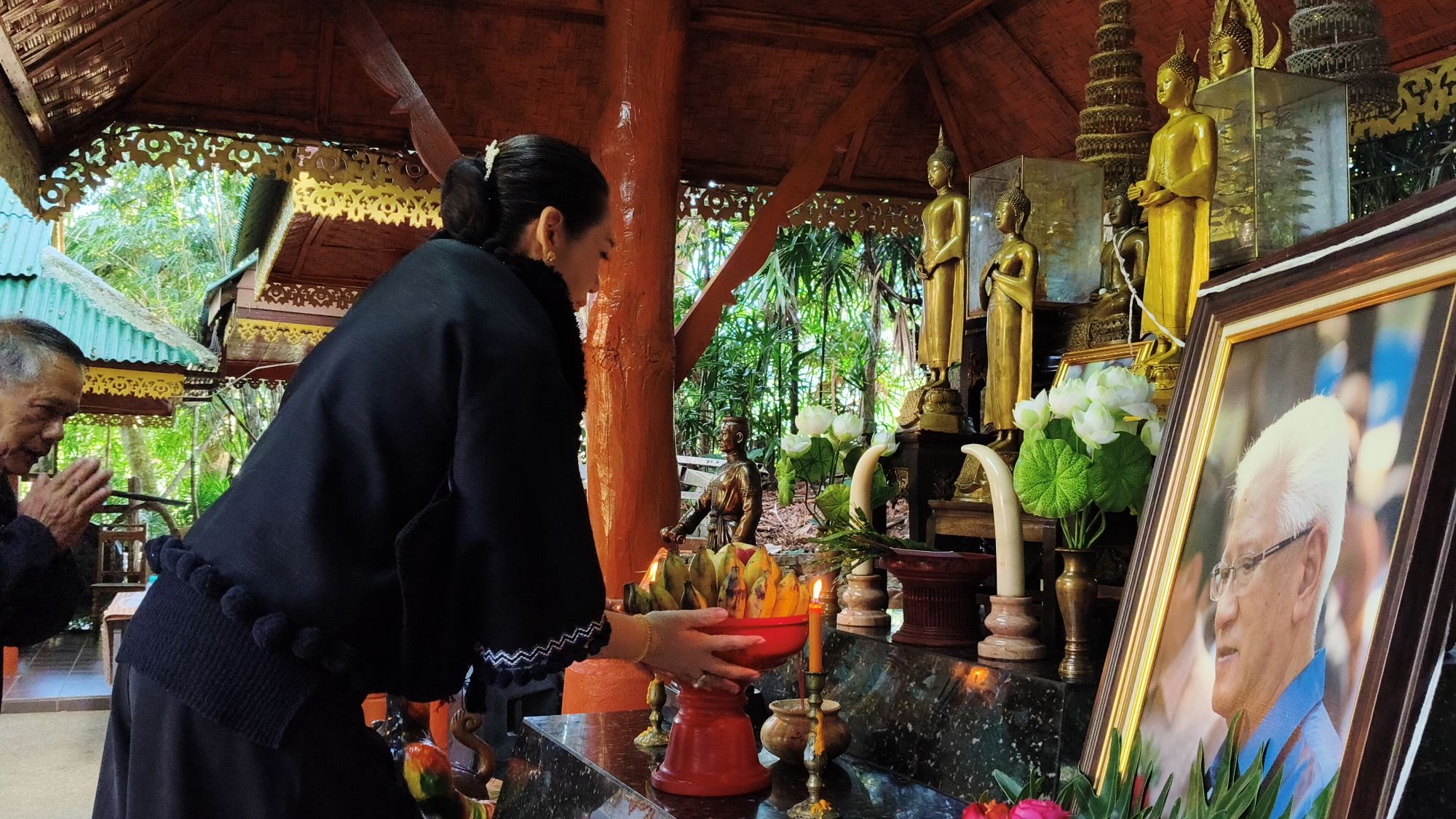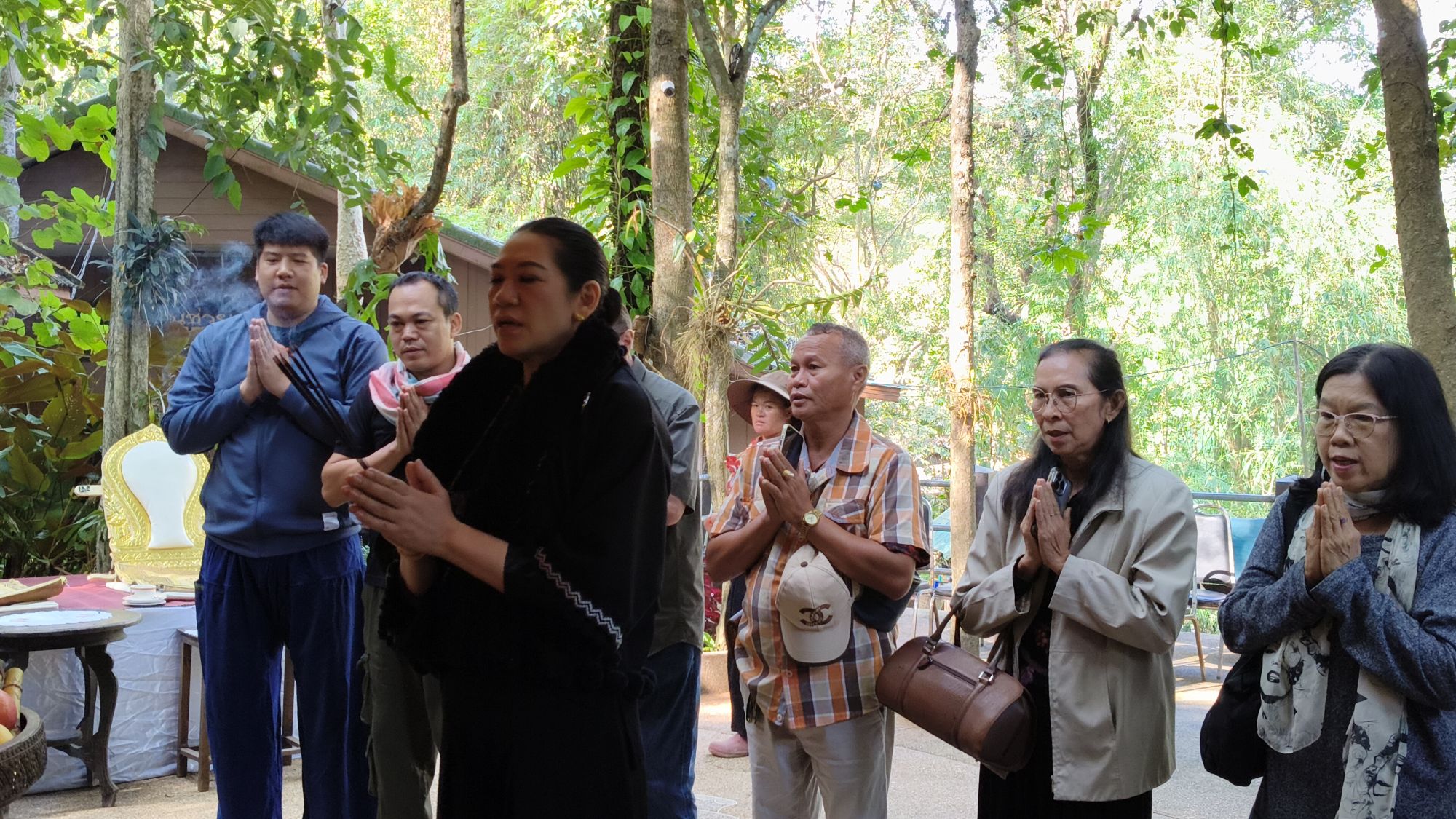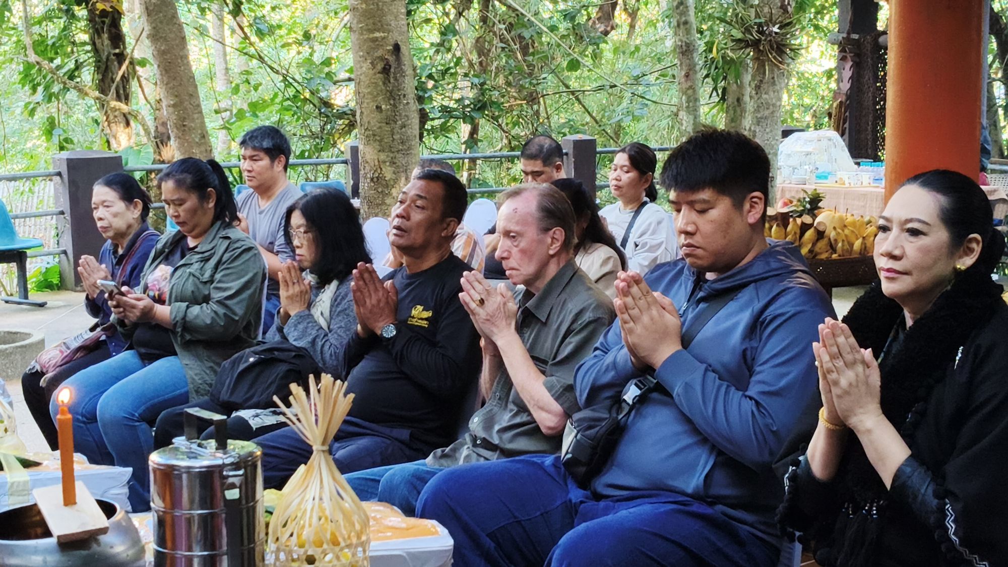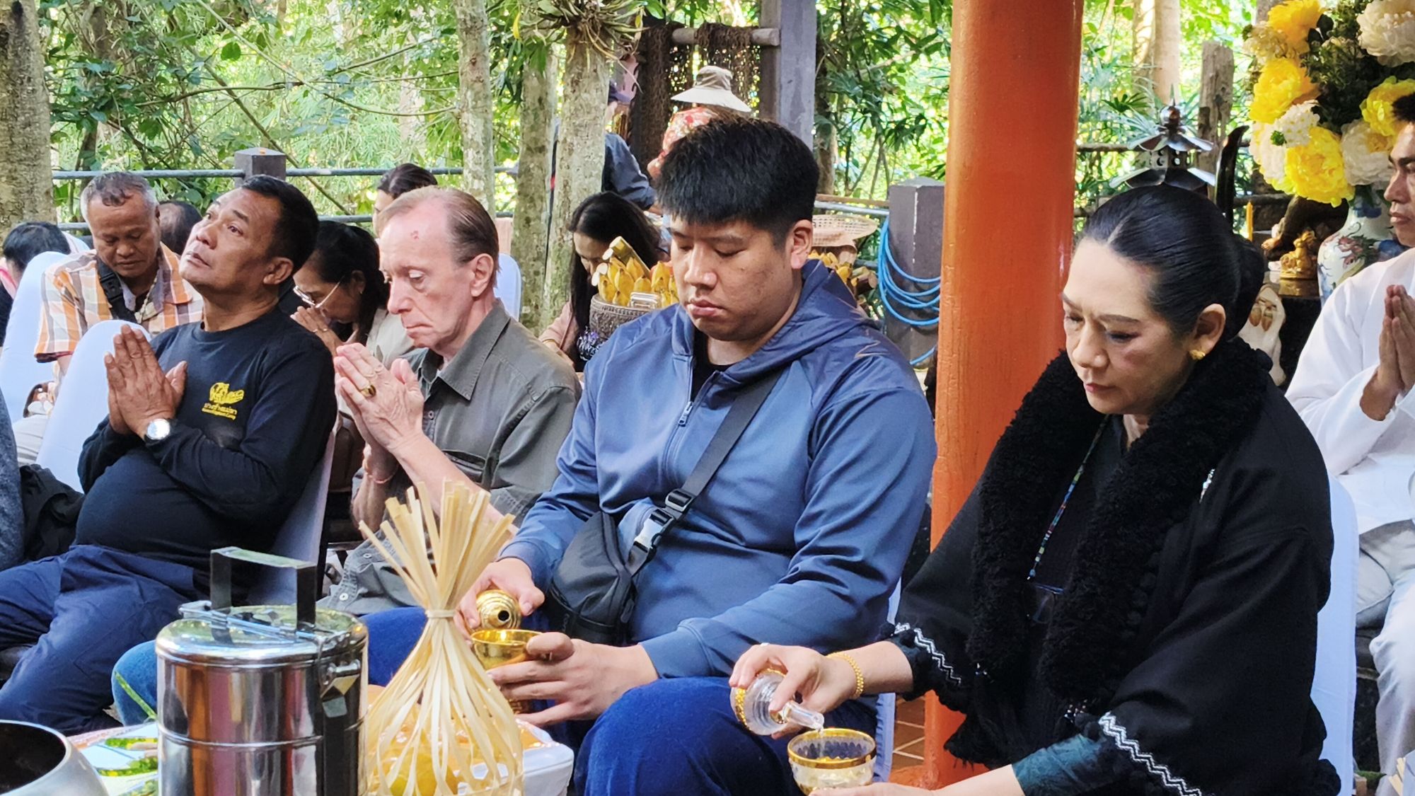 เวลา 10.09 น. ได้เริ่มพิธีสงฆ์ โดยนิมนต์พระสงฆ์จำนวน 5 รูป มาทำพิธีเพื่ออุทิศส่วนบุญส่วนกุศลให้แก่ พ่อเลี้ยงชูชาติ กัลมาพิจิตร, ปู่เชิด กัลมาพิจิตร, ย่าสะอิ้ง ทรรทรานนท์, ป้าสุรางค์ โยมสินธ์, ป้าพาณี กัลมาพิจิตร รวมถึงช้างและควาญช้าง ตลอดจนพนักงานที่ล่วงลับไปแล้ว นอกจากนี้ ยังได้ทำบุญอุทิศส่วนกุญศลไปถึง นายชัยพินธ์ ขัติยะ หรือ “อ้อน ไทยรัฐ” อดีตผู้สื่อข่าวอาวุโสและหัวหน้าศูนย์ข่าวไทยรัฐภาคเหนือ ที่เสียชีวิตเมื่อเดือนมิถุนายน 2568 ด้วย