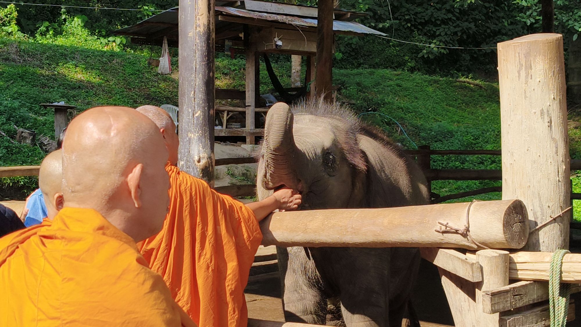 ภายหลังจากนั้นเวลา 11.00 น. พระสงฆ์จำนวน 5 รูป ได้ไปร่วมฉลองวันเกิด 2 ขวบ “น้องชูใจ” ช้างขวัญใจตัวล่าสุด โดยได้ปรับปรุงน้ำมนต์เพื่อเป็นสิริมงคลแก่น้องชูใจ และแม่วันเพ็ญ