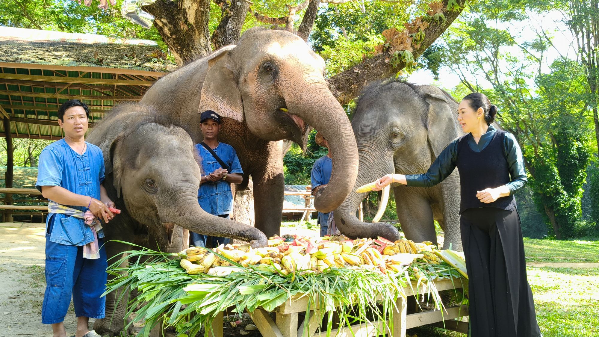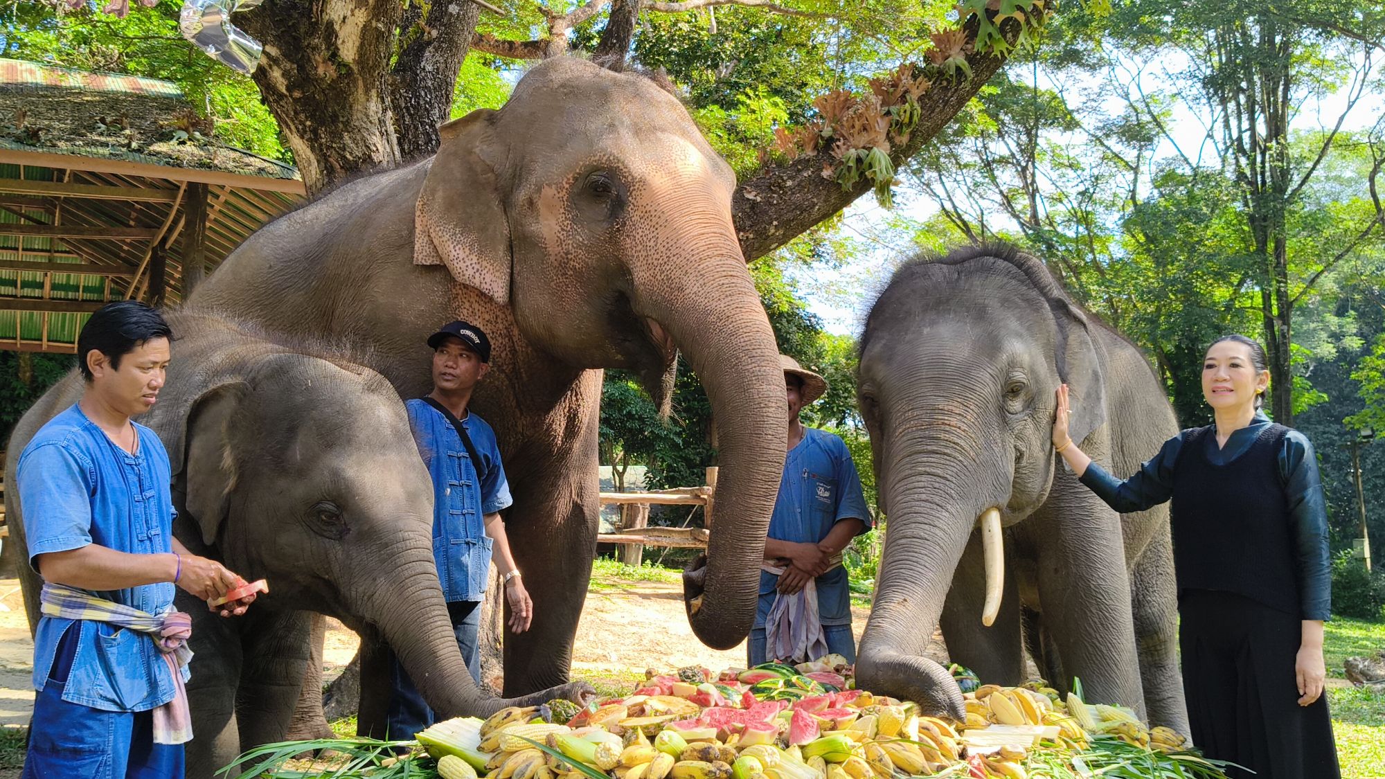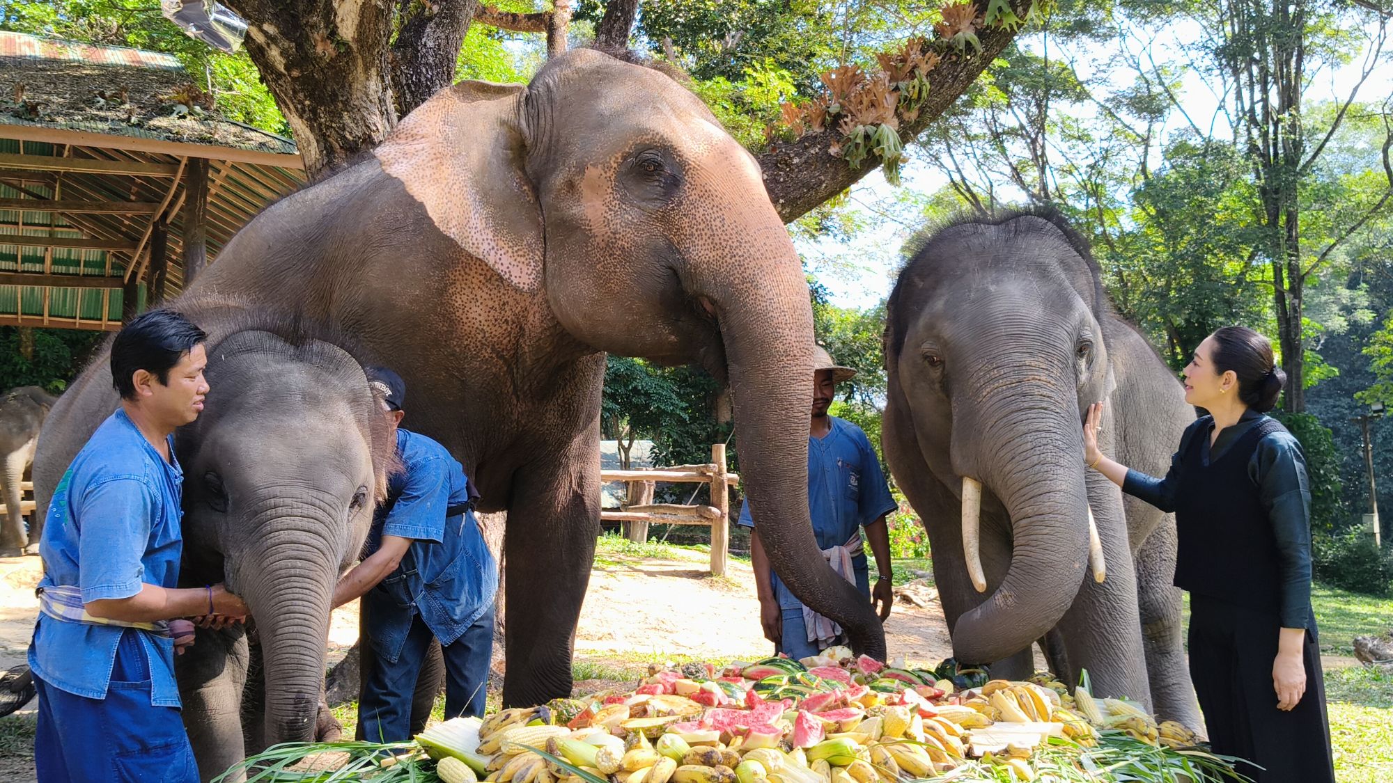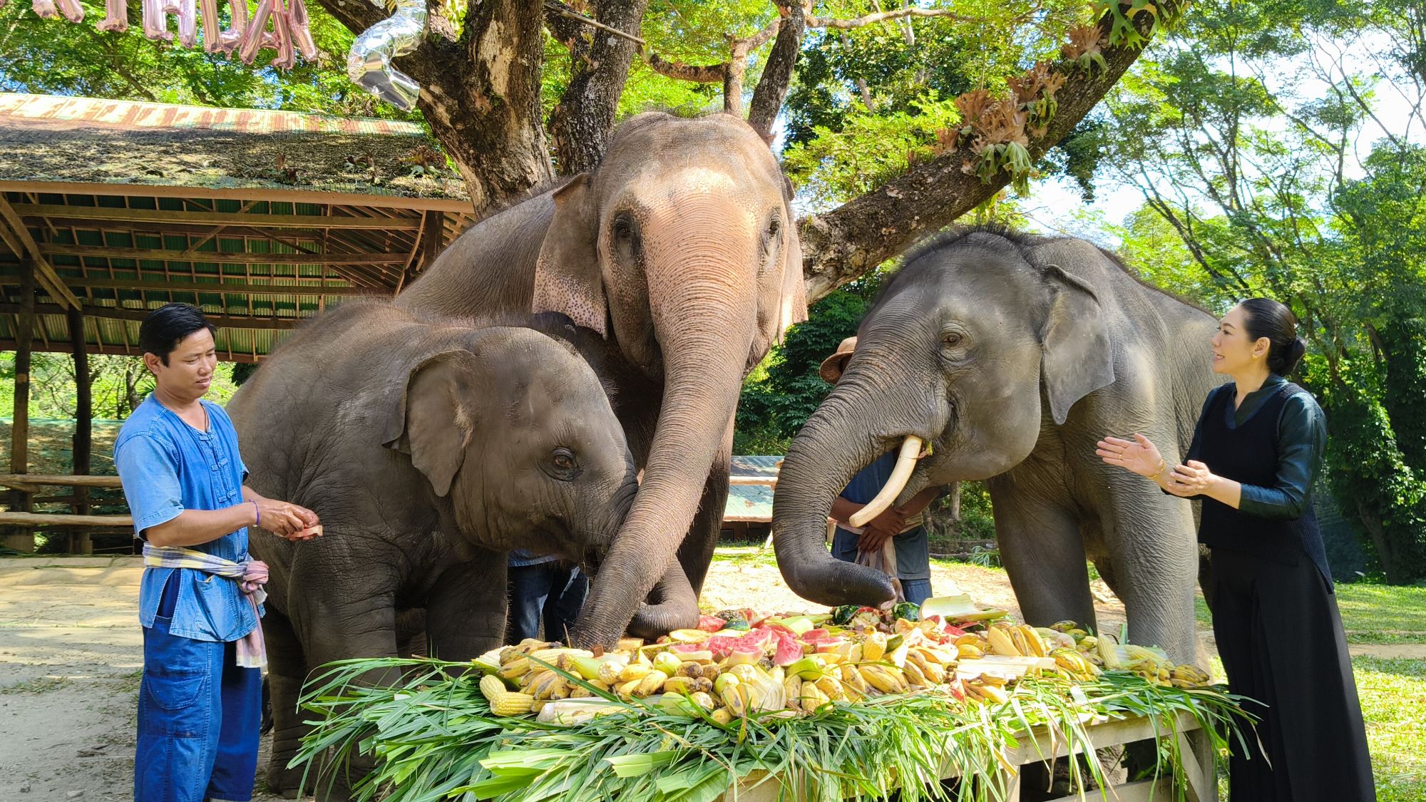 โดยปางช้างแม่สาได้จัด สะโตกผลไม้ ชุดใหญ่ เพื่อให้น้องชูใจได้ฉลอง ร่วมกับแม่วันเพ็ญ และแขกรับเชิญพิเศษคือ พลายขุนศึก พี่ชายน้องชูใจ นับเป็นการรวมครอบครัว ระหว่างพี่ชายและน้องสาว ซึ่งสร้างความประทับใจให้กับนักท่องเที่ยวเป็นอย่างมาก