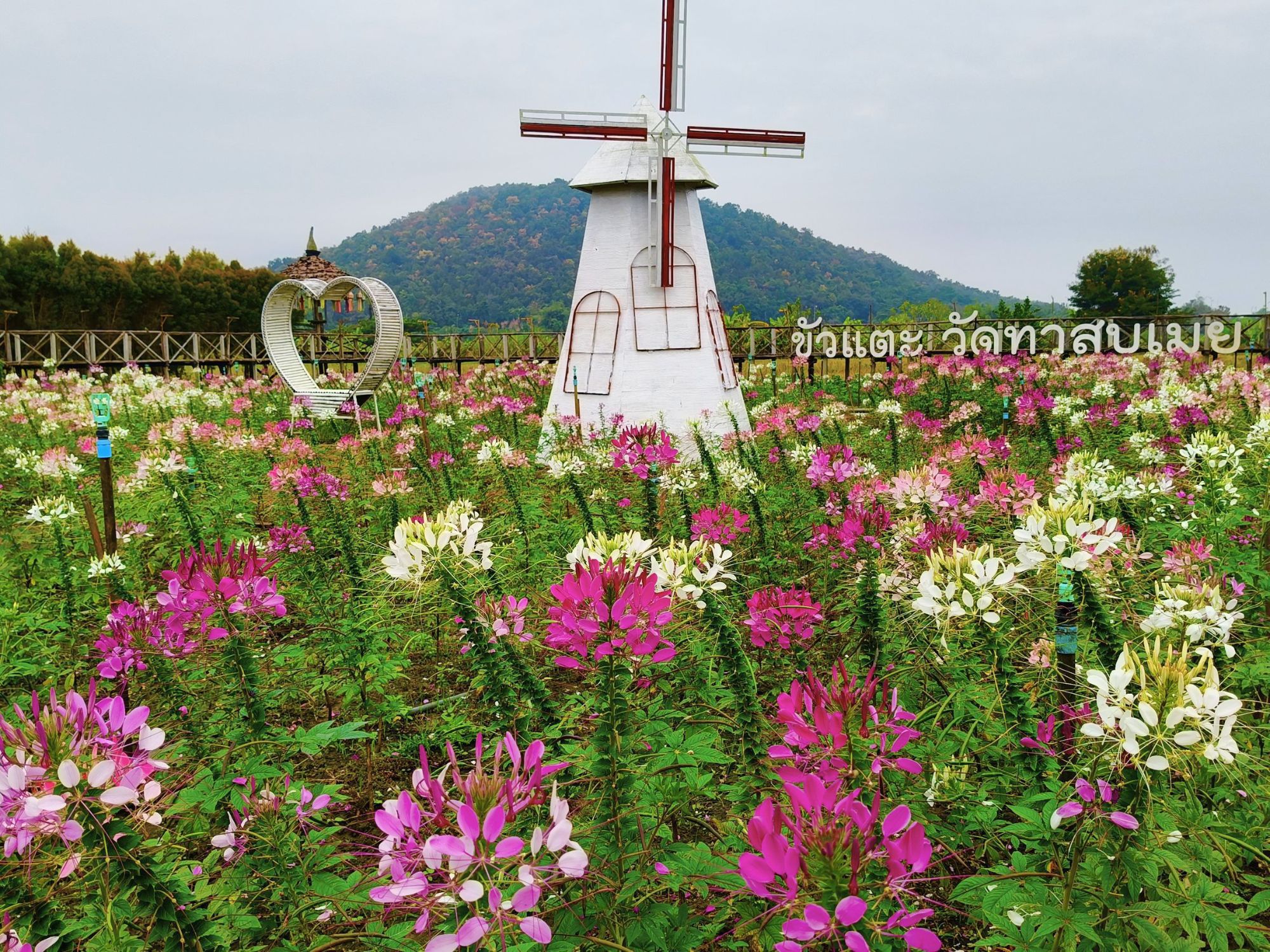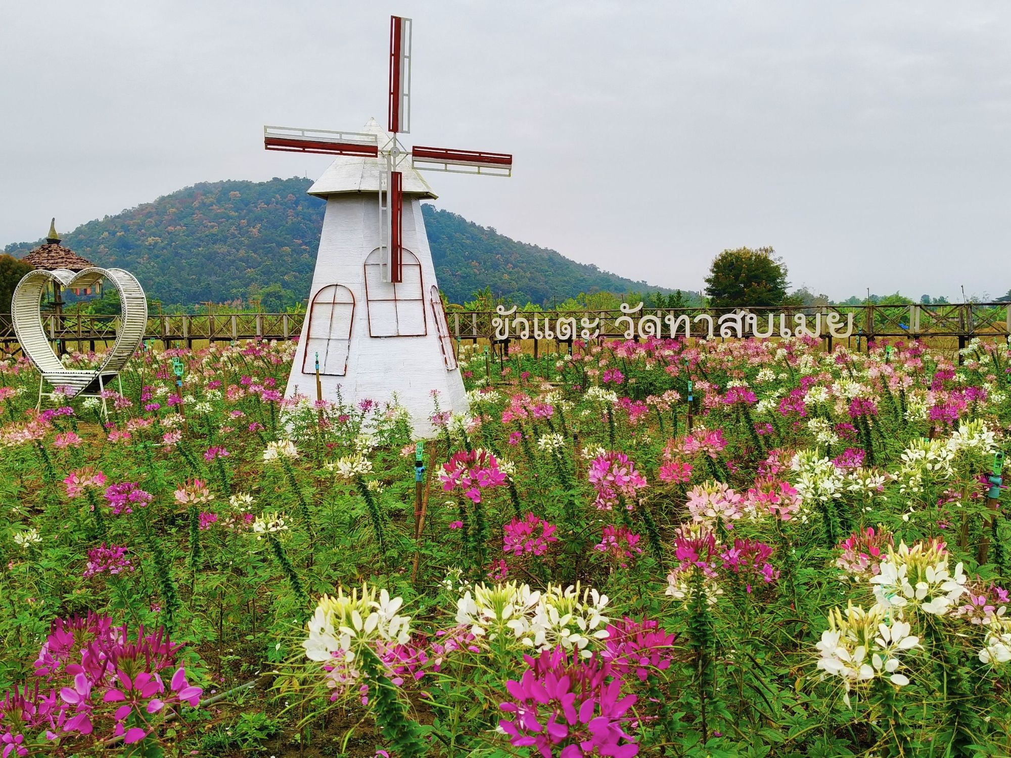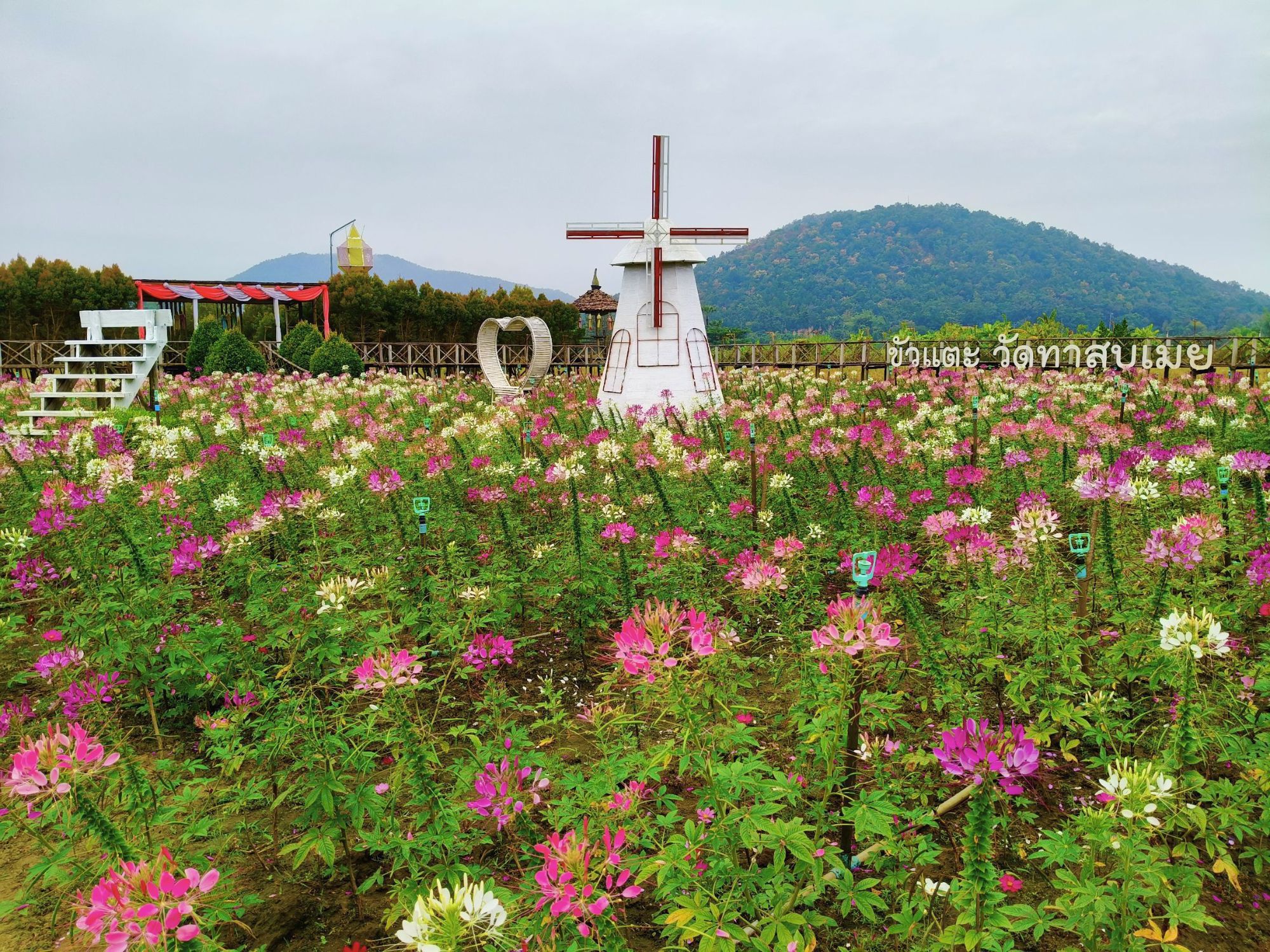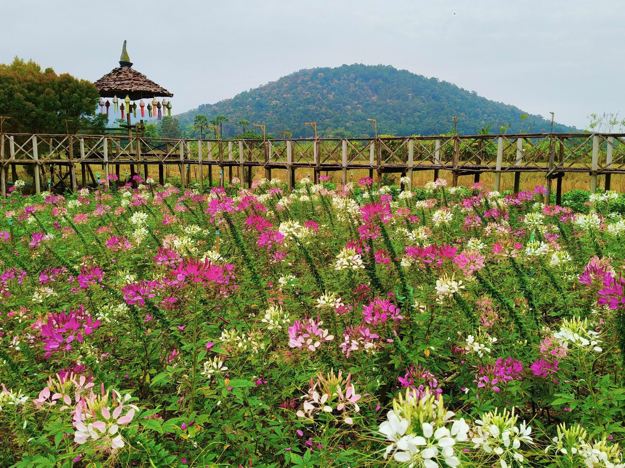 “ขัวแตะวัดทาสบเมย” ลำพูน…สะพานบุญ 99 เมตร ท่ามกลางทุ่งดอกไม้บานสะพรั่ง!