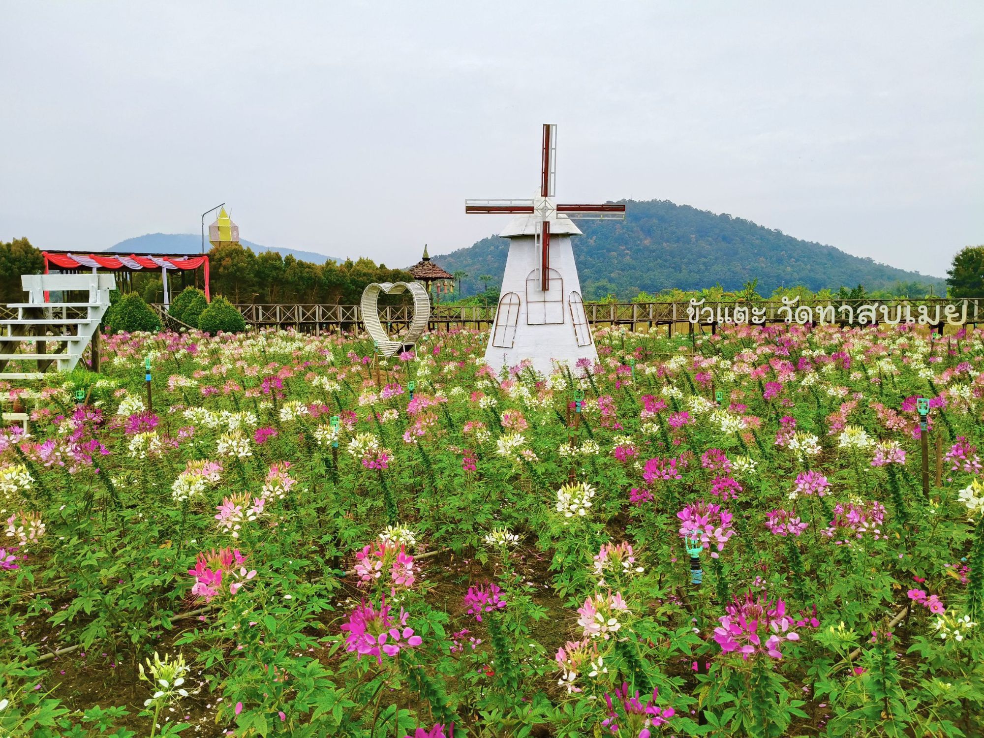 💥⛩️🌻#ขัวแตะวัดทาสบเมย ทุ่งดอกไม้บานแล้ว เชิญแอ่วฟรี ที่ #ขัวแตะวัดทาสบเมย สะพานบุญไม้ไผ่ ความยาว 99 เมตร ท่ามกลางธรรมชาติ บรรยากาศดี เซลฟี่สวย เปิดให้เข้าชม เวลา 07.00 – 18.00 น. (เริ่มวันนี้ คาดว่า ดอกไม้คงจะบานสวย ถึง ปลายเดือน กุมภาพันธ์ 69)