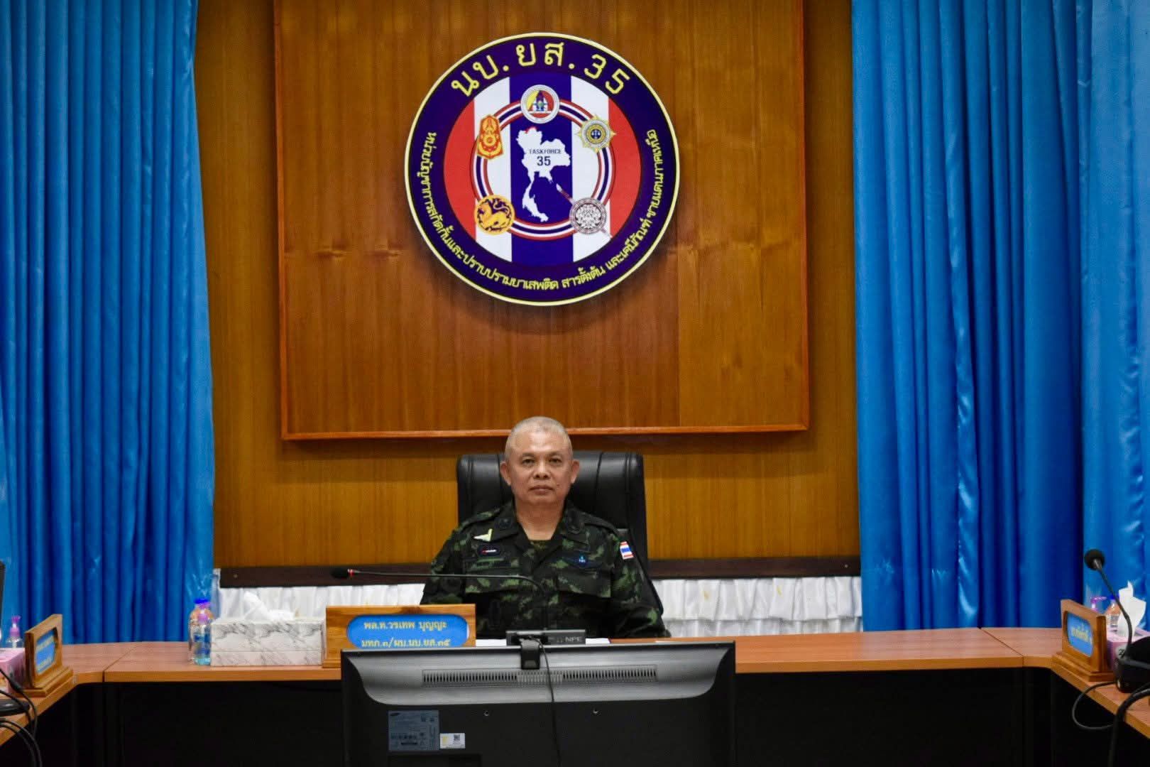 พล.ท. วรเทพ บุญญะ ผบ.นบ.ยส.35 กล่าวมอบนโยบายว่า “การแก้ไขปัญหายาเสพติดจำเป็นต้องอาศัยความร่วมมือจากทุกภาคส่วน ทั้งหน่วยงานความมั่นคง หน่วยงานบังคับใช้กฎหมาย ภาคประชาชน และความร่วมมือระหว่างประเทศ เพื่อคุ้มครองพื้นที่ชายแดนให้ปลอดภัย ลดภัยคุกคาม และทำลายโครงสร้างเครือข่ายค้ายาเสพติดอย่างยั่งยืน”
