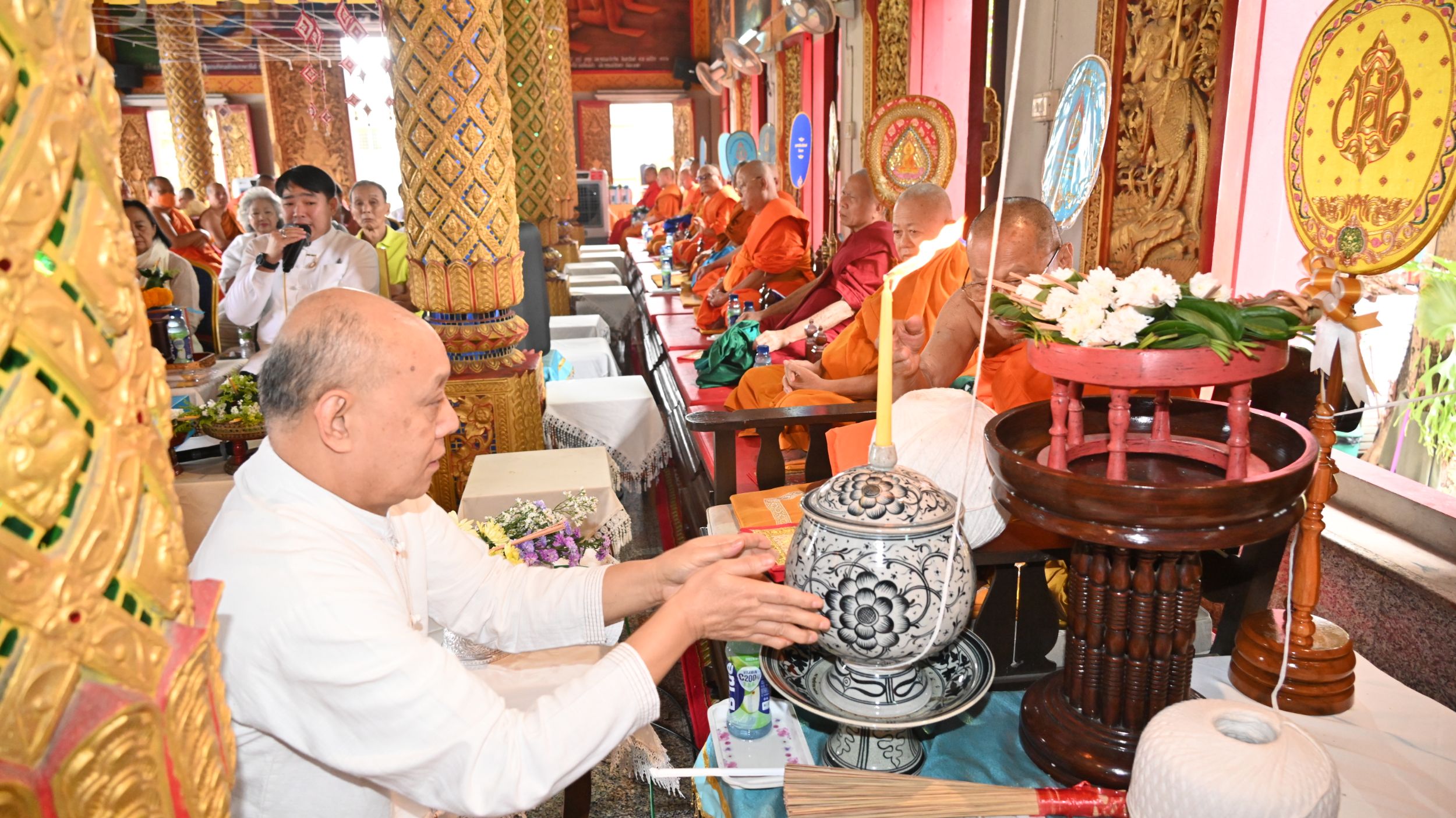 ในการนี้ ได้รับเมตตาจาก พระครูพิพัฒน์สมาจาร (มานัส ธมฺมวุฑฺโฒ) เจ้าอาวาสวัดชมพู อำเภอเมืองเชียงใหม่ ซึ่งเป็นพระสังฆาธิการผู้มีอาวุโสพรรษาสูงรูปหนึ่งของจังหวัดเชียงใหม่ ทำหน้าที่เป็นประธานนำสวดเจริญพุทธมนต์ ท่ามกลางความเลื่อมใสศรัทธาของพุทธศาสนิกชนที่เข้าร่วมพิธีอย่างเนืองแน่น