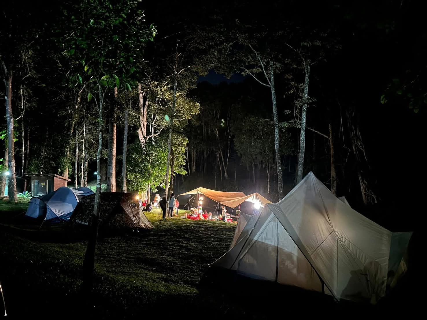 พื้นที่ลานกางเต็นท์ได้รับการจัดเตรียมอย่างพร้อมสรรพ มีลานจอดรถ ห้องอาบน้ำจาก บ่อน้ำอุ่นธรรมชาติริมลำน้ำแม่ ช่วยผ่อนคลายหลังเดินทางหรือทำกิจกรรมต่าง ๆ รวมถึงพื้นที่ประกอบอาหาร ล้างจาน และร้านสวัสดิการ Café & Bistro เปิดให้บริการเวลา 08.30–16.30 น.