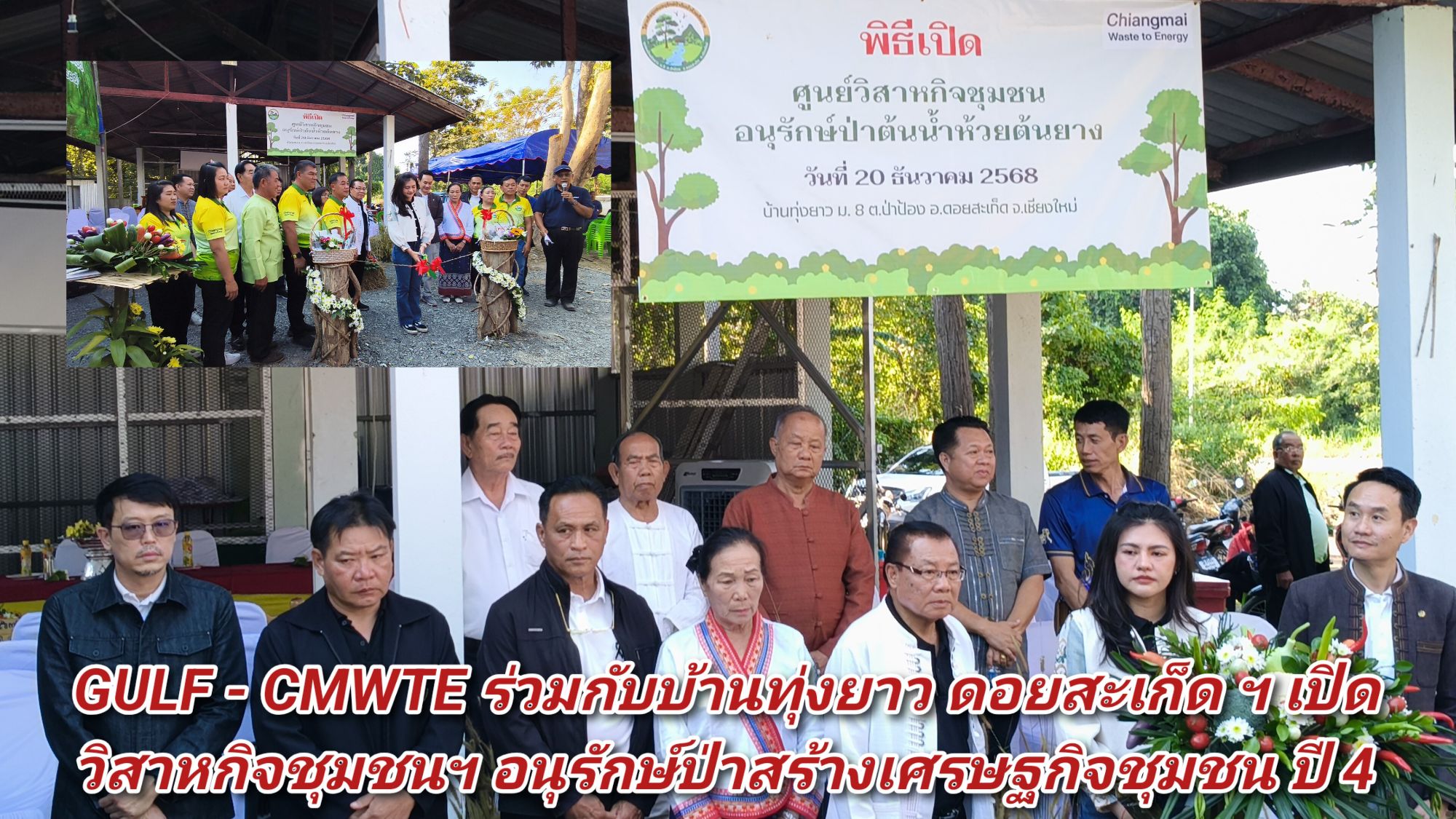 เมื่อวันที่ 20 ธันวาคม 2568 กลุ่มบริษัทกัลฟ์ (GULF) และ บริษัท เชียงใหม่ เวสท์ ทู เอ็นเนอร์จี จำกัด ร่วมกับชุมชนบ้านทุ่งยาว ม.8 อ.ดอยสะเก็ด จ.เชียงใหม่ จัดกิจกรรมต่อเนื่องปีที่ 4 ภายใต้โครงการ “คืนสมดุลให้ป่าด้วยจุลินทรีย์” โดยได้รับเกียรติจาก น.ส.ฉัตรฑริกา ปัญญาโสภา ปลัดอำเภอดอยสะเก็ด (งานอำนวยความเป็นธรรม) เป็นประธานในพิธีเปิด “ศูนย์วิสาหกิจชุมชนอนุรักษ์ป่าต้นน้ำห้วยต้นยาง” หมู่ 8 บ้านทุ่งยาว ต.ป่าป้อง อ.ดอยสะเก็ด จ.เชียงใหม่โดยมี ดร.กฤษณ์ พงษ์เทพิน ผช.ผอ.ฝ่ายชุมชนสัมพันธ์ กลุ่มบริษัทกัลฟ์ (GULF) วิทยากรส่งเสริมกระบวนการพัฒนาชุมชนและสิ่งแวดล้อม และ นายสมพงค์ เจริญศิริ กำนันตำบลป่าป้อง อ.ดอยสะเก็ด จ.เชียงใหม่ ผู้ร่วมจัดตั้งและเป็นประธานวิสาหกิจชุมชนฯ ร่วมให้การต้อนรับ ซึ่งวิสาหกิจชุมชนแห่งนี้เป็นองค์กรชุมชนและกลไกการบริหารจัดการที่เป็นระบบ เพื่อเพิ่มประสิทธิภาพในการขับเคลื่อนการอนุรักษ์ฟื้นฟูป่าชุมชนห้วยต้นยาง (จำนวน 2,307 ไร่) ซึ่งได้ดำเนินงานด้านการตรวจป่า เฝ้าระวังและการป้องกันไฟป่า เพื่อลด PM 2.5 รักษาระบบนิเวศ ปลูกป่า บวชป่า จัดสร้างฝายชะลอน้ำ และลดเชื้อเพลิงในป่า อีกทั้งยังเข้าร่วมโครงการป่าคาร์บอนเครดิตด้วย