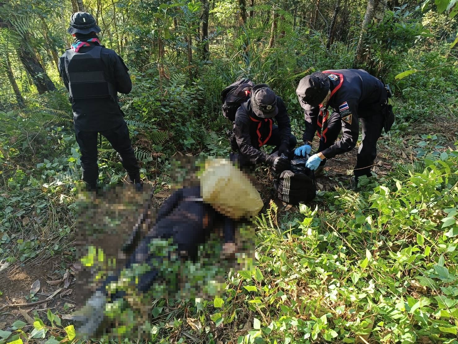 กองกำลังผาเมือง จำนวน 2 ชุดปฏิบัติการ เข้าตรวจสอบพื้นที่เกิดเหตุ ตรวจพบกลุ่มขบวนการเสียชีวิต