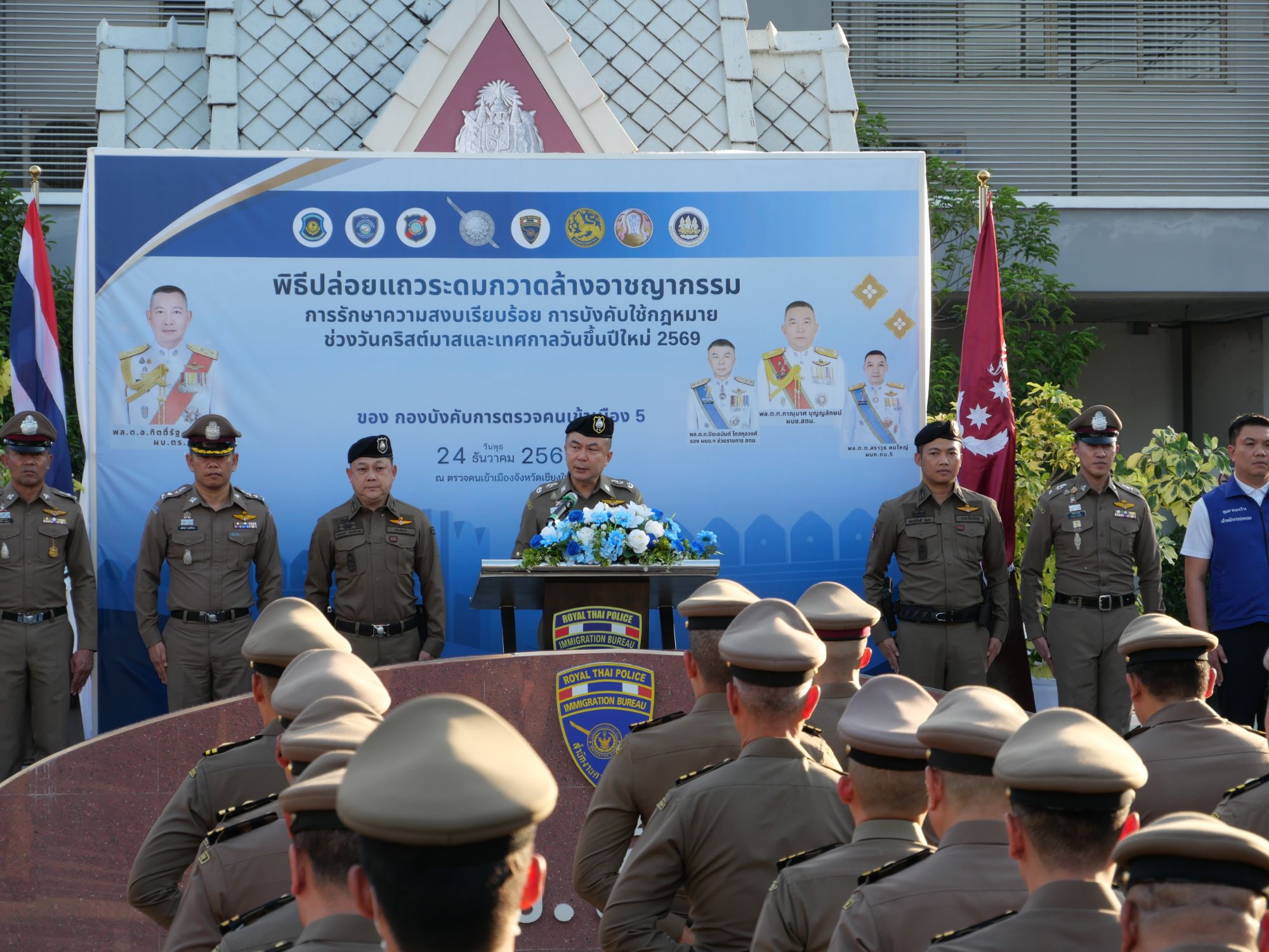 จึงสั่งการให้ ตรวจคนเข้าเมืองจังหวัด และด่านตรวจคนเข้าเมือง ในสังกัด บก.ตม.5 ดำเนินการปล่อยแถวระดมกวาดล้างอาชญากรรมโดยพร้อมเพรียงกัน ในวันที่ 24 ธ.ค.68 เพื่อเป็นการป้องกันปราบปรามอาชญากรรมการรักษาความสงบเรียบร้อย ในวันคริสต์มาสและช่วงวันหยุดยาวเทศกาลปีใหม่ 2569