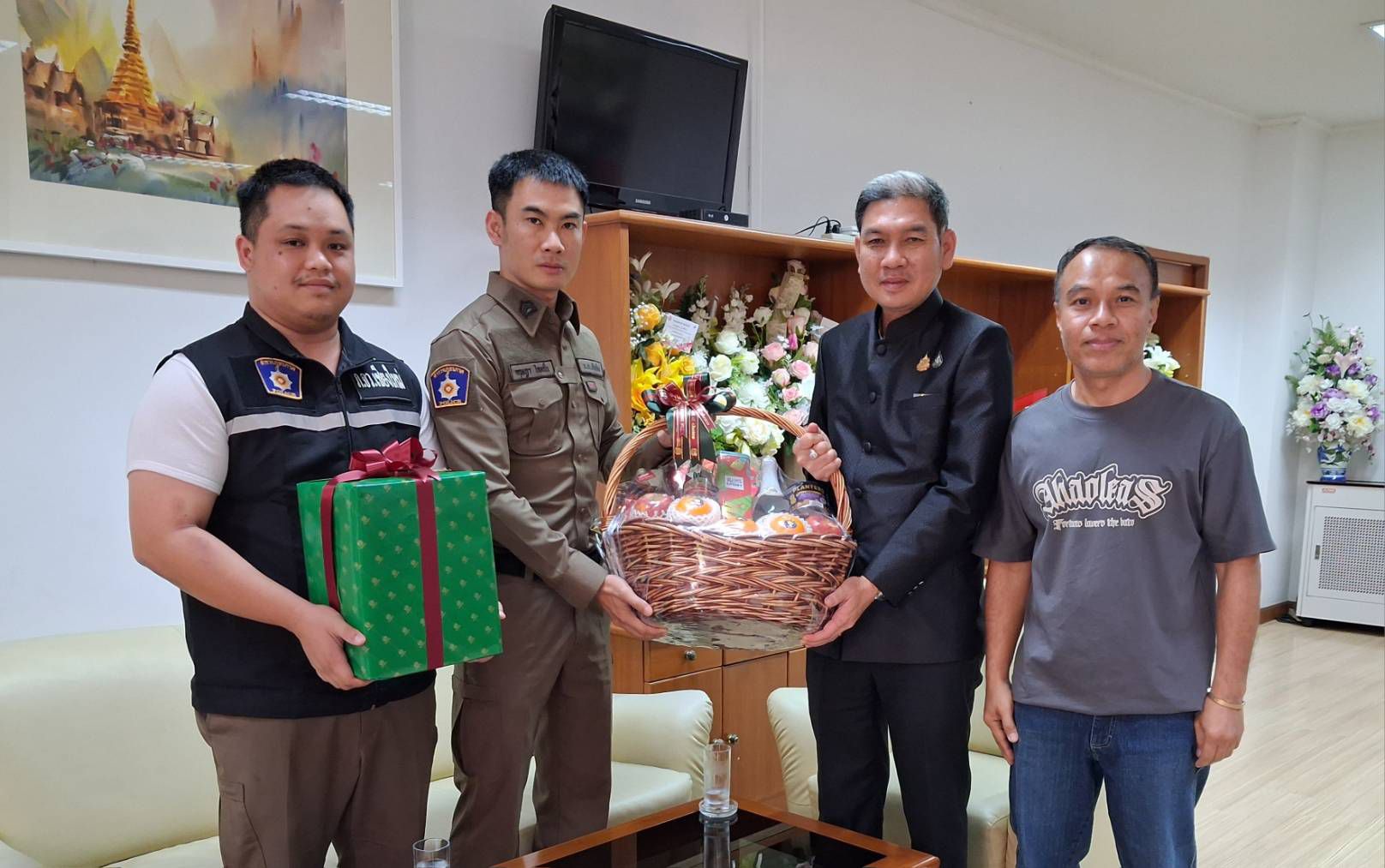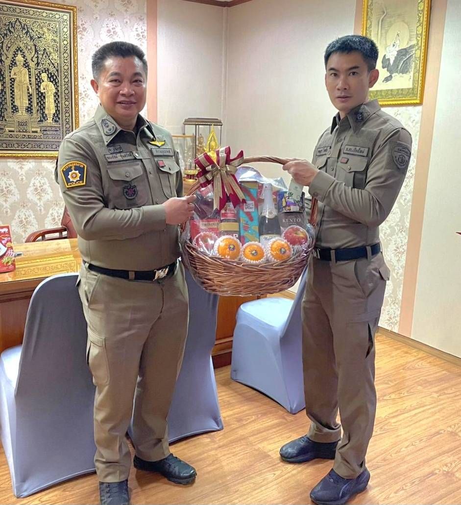 ภาค5 ถึงเจ้าตัวจะอยู่เมืองนอกแต่ก็ส่งตัวแทนมามอบกระเช้าให้ถึงที่ ด้วยรักและเคารพ ปีใหม่นี้ก็ขอให้ผู้รับและผู้ให้ โชคดีมีความสุขตลอดปี