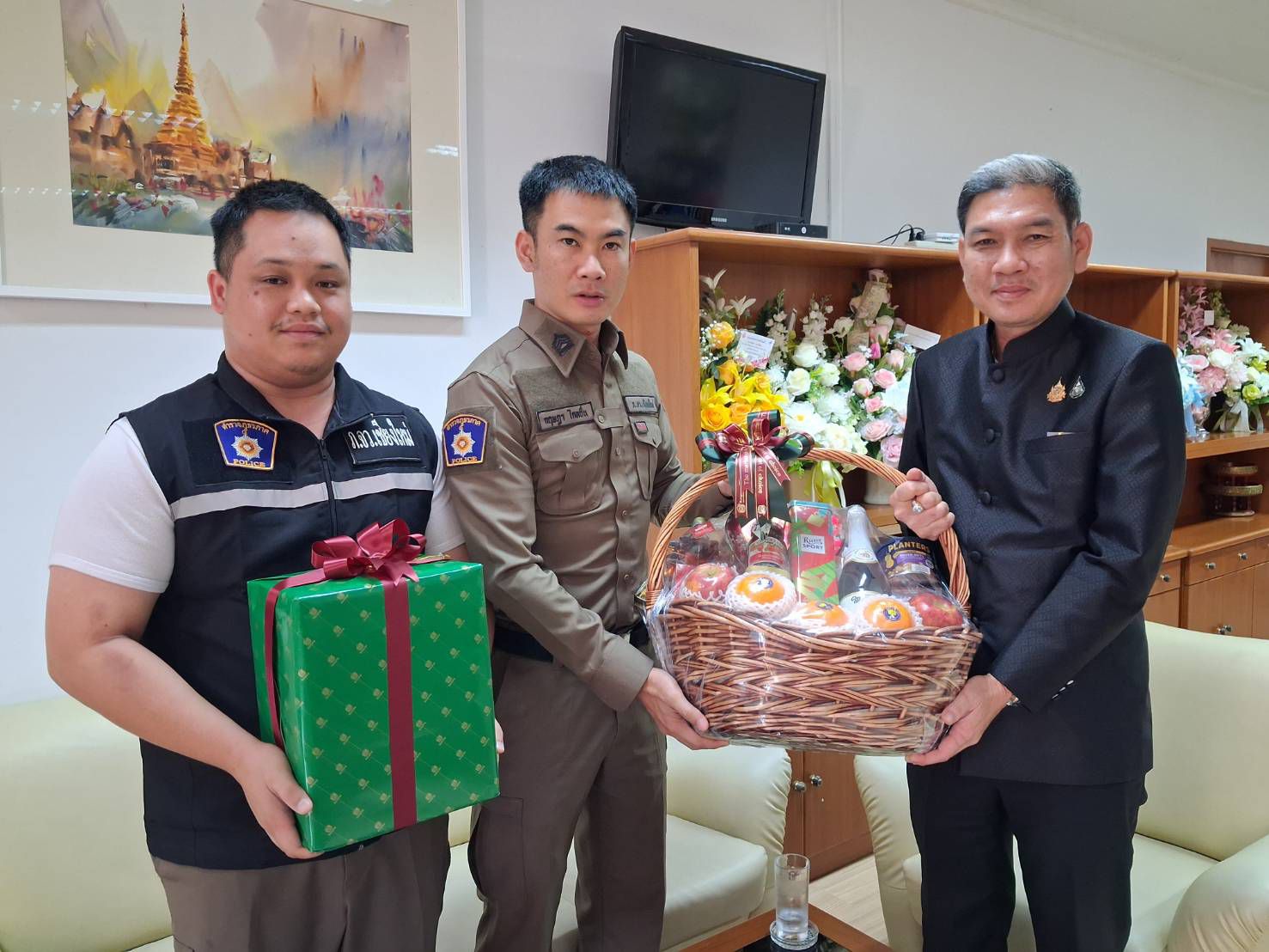 ยังเป็นที่รักและเคารพของหน่วยงานและหลายๆองค์กรอยู่ สำหรับท่านพ่อเมืองเชียงใหม่และรองพ่อเมือง ช่วงบ่ายวันนี้นายรัฐพล นราดิศร ผู้ว่าราชการจังหวัดเชียงใหม่และนายศิวะ ธมิกานนท์ รองผู้ว่าราชการจังหวัดเชียงใหม่ นายนพดล สุระสังวาลย์ นอภ.สันทราย และพล.ต.ต.ธนะรัชต์ ชุ่มสวัสดิ์ รองผบช.ภาค5 รับมอบกระเช้าของขวัญจากตัวแทนของดร.กาญจนา เอี่ยมสมบัติ ที่ได้มอบหมายให้จ.ส.ต.กฤษฏา ไกลถิ่น และจ.ส.ต.ณัฐพล เรือนสอน ได้นำกระเช้าของขวัญมาอวยพรปีใหม่และสุขสันต์วันคริสต์มาสปีนี้ ที่มาถึงให้กับท่านพ่อเมืองและรองพ่อเมือง นายอำเภอ ตำรวจ
