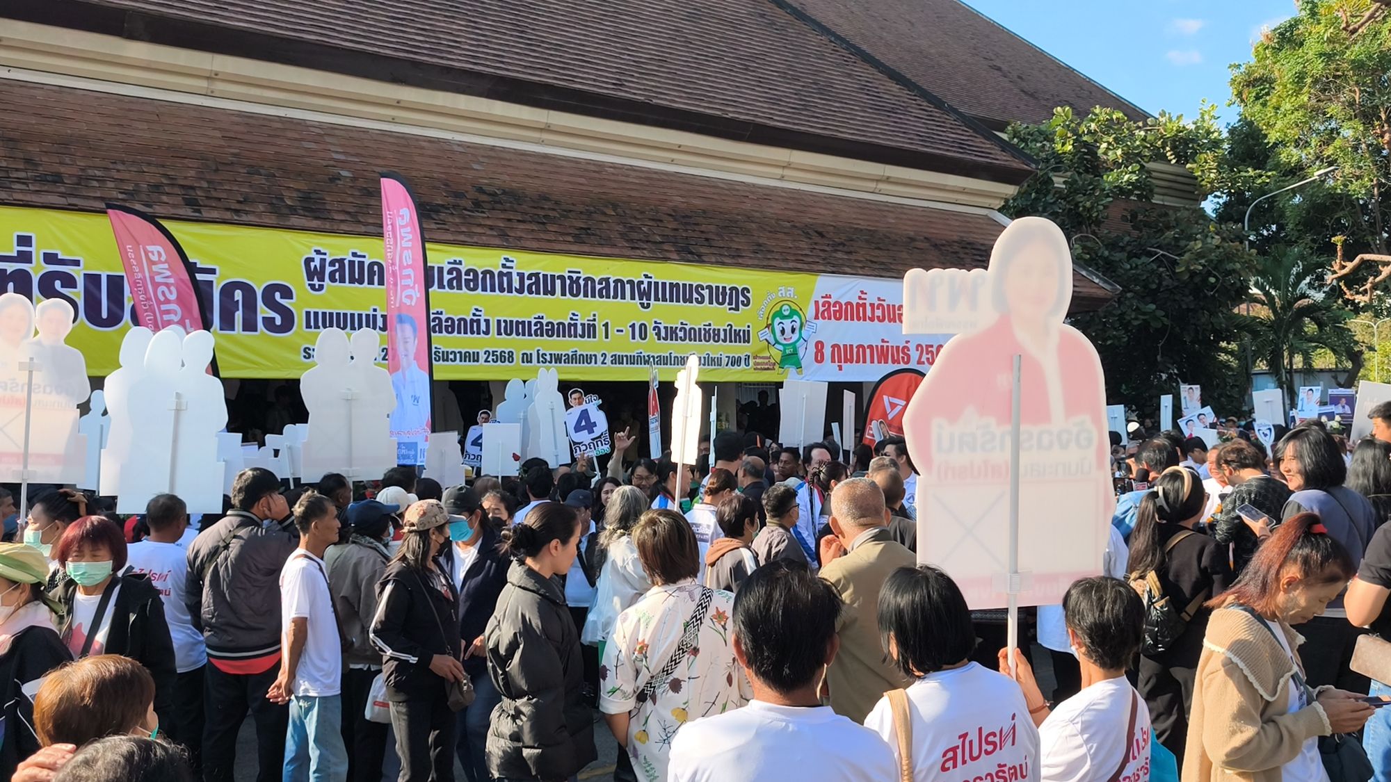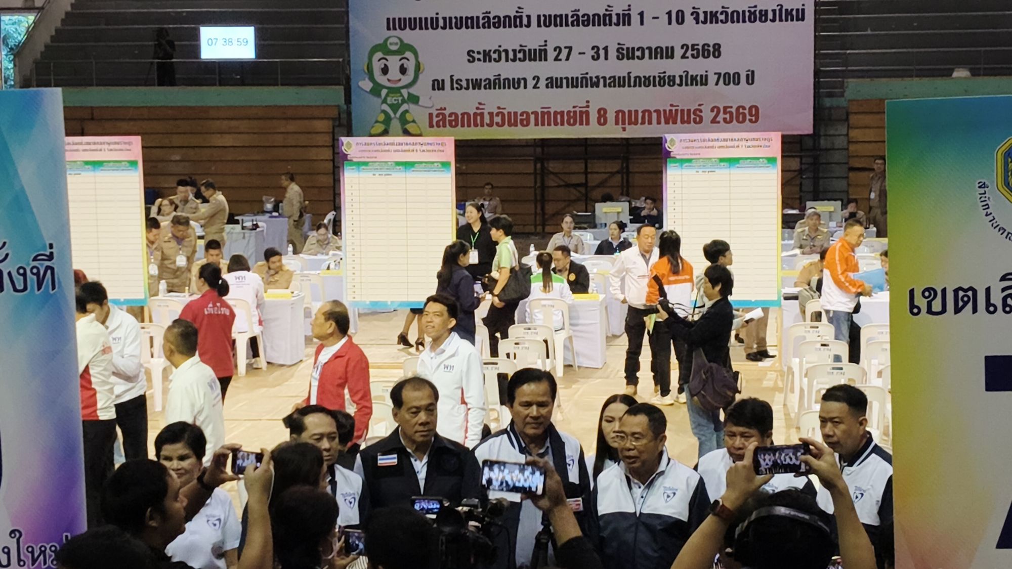 เชียงใหม่ 27 ธ.ค. 2568 – บรรยากาศการรับสมัครเลือกตั้งสมาชิกสภาผู้แทนราษฎร (ส.ส.) แบบแบ่งเขตของจังหวัดเชียงใหม่วันแรก ณ อาคารยิมเนเซียม 2 สนามกีฬาสมโภชเชียงใหม่ 700 ปี เต็มไปด้วยความคึกคัก ตั้งแต่ช่วงเช้าตรู่ก่อนเวลา 08.00 น. ท่ามกลางกองเชียร์ที่ขนอุปกรณ์เชียร์ รถแห่ และธงสัญลักษณ์พรรคมาให้กำลังใจผู้สมัครกันอย่างเนืองแน่น ในช่วงเวลา 08:10 น.นายรัฐพล นราดิศร ผู้ว่าราชการจังหวัดเชียงใหม่ ได้เดินทางมาตรวจเยี่ยมให้กำลังใจเจ้าหน้าที่กกตและผู้สมัครรับเลือกตั้งสมาชิกสภาผู้แทนราษฎรจังหวัดเชียงใหม่ หลังจากเวลา 08.30 น. คณะกรรมการการเลือกตั้งได้ตกลงต่อผู้มายืนสมัครที่มาก่อนเวลา จะจับชื่อ 2 ครั้ง เรียกลำดับจับรายชื่อ และจับหมายเลขยืนสมัคร เป็นเลขผู้สมัคร