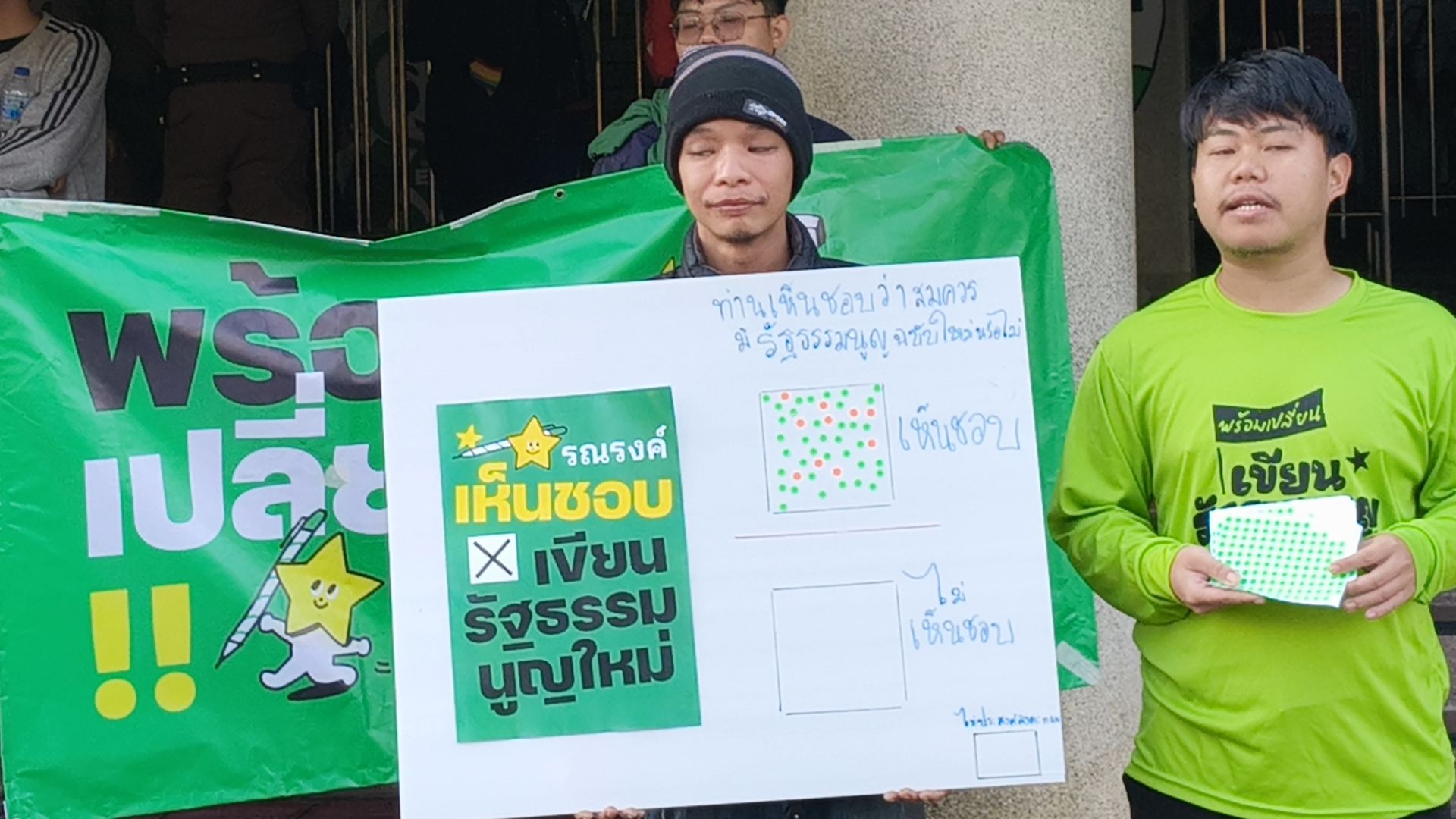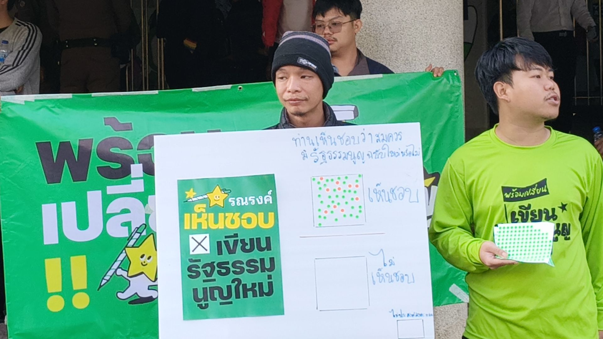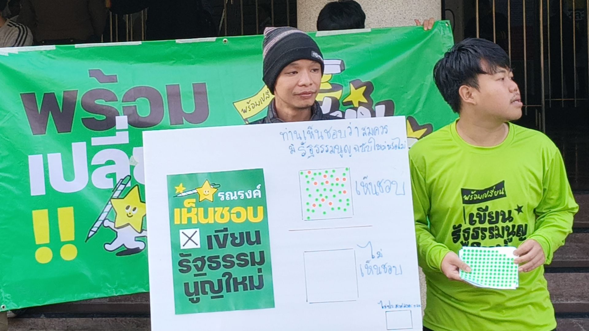 นอกจากนี้ทางด้านหน้าที่ลงรับสมัครรับเลือกตั้งยังมีการประชาสัมพันธ์เรื่องการพร้อมทำประชามติร่างรัฐธรรมนูญใหม่ทั้งฉบับในวันที่ 8 ก.พ. 2569 โดยใช้คำถาม “ท่านเห็นด้วยหรือไม่ที่จะให้มีการจัดทำรัฐธรรมนูญฉบับใหม่” เป็นความพยายามของภาคประชาชนและหน่วยงานที่เกี่ยวข้อง เพื่อเปลี่ยนผ่านไปสู่รัฐธรรมนูญฉบับประชาชน โดยมีมติเห็นชอบให้วันที่ 8 กุมภาพันธ์ 2569 เป็นวันลงคะแนนเลือกตั้งสมาชิกสภาผู้แทนราษฎร (สส.) และวันทำประชามติเรื่องการจัดทำรัฐธรรมนูญใหม่ โดยมี คำถามหลักคือ “ท่านเห็นด้วยหรือไม่ที่จะให้มีการจัดทำรัฐธรรมนูญฉบับใหม่” เพื่อปูทางสู่การตั้ง สสร. ที่มาจากการเลือกตั้ง 100% อีกด้วย.