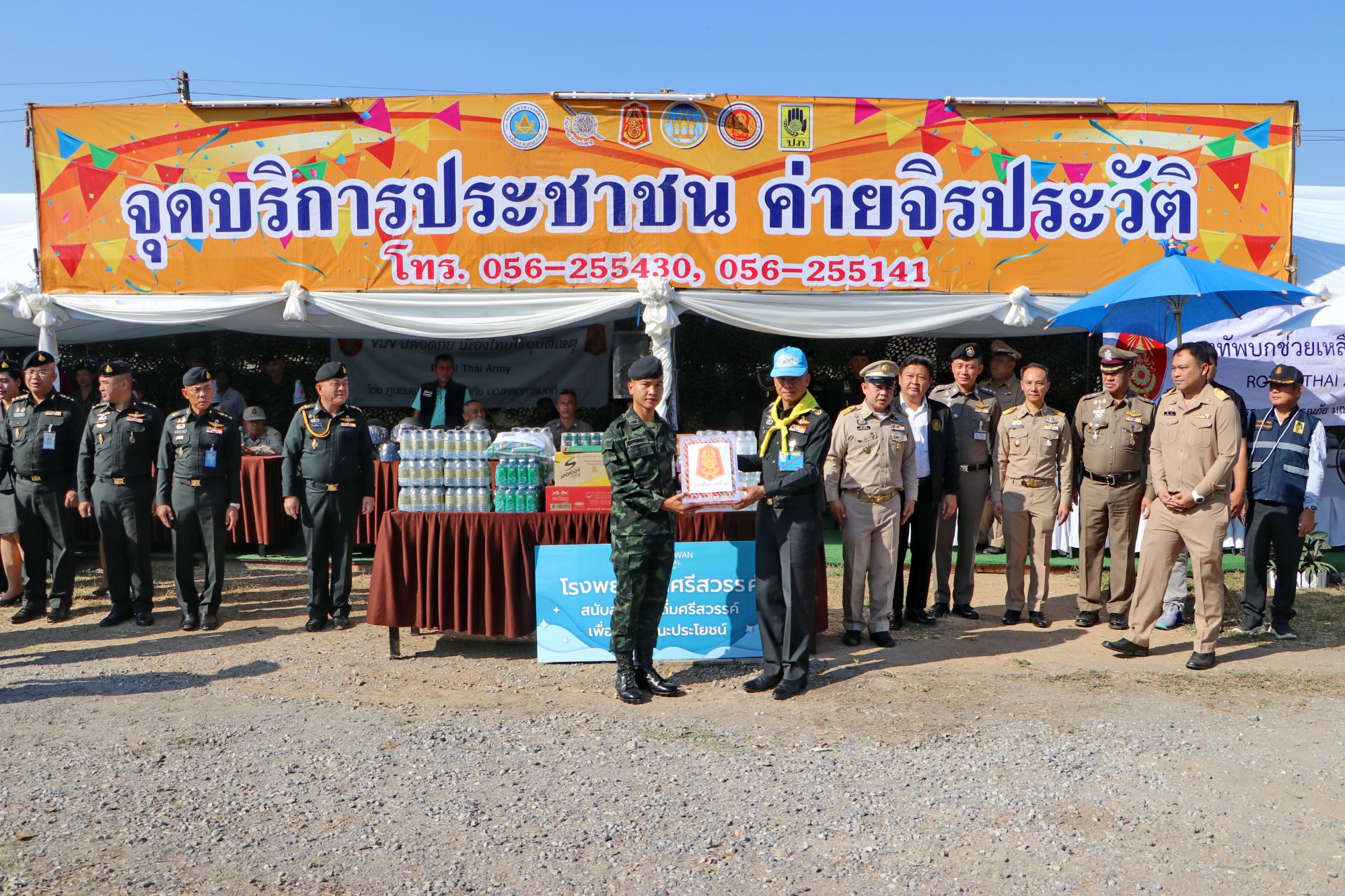 จากนั้น รองแม่ทัพภาคที่ 3 ได้เดินเยี่ยมให้กำลังใจและมอบสิ่งของอุปโภค บริโภค เพื่อเป็นขวัญและกำลังใจให้กับเจ้าหน้าที่ปฏิบัติงาน