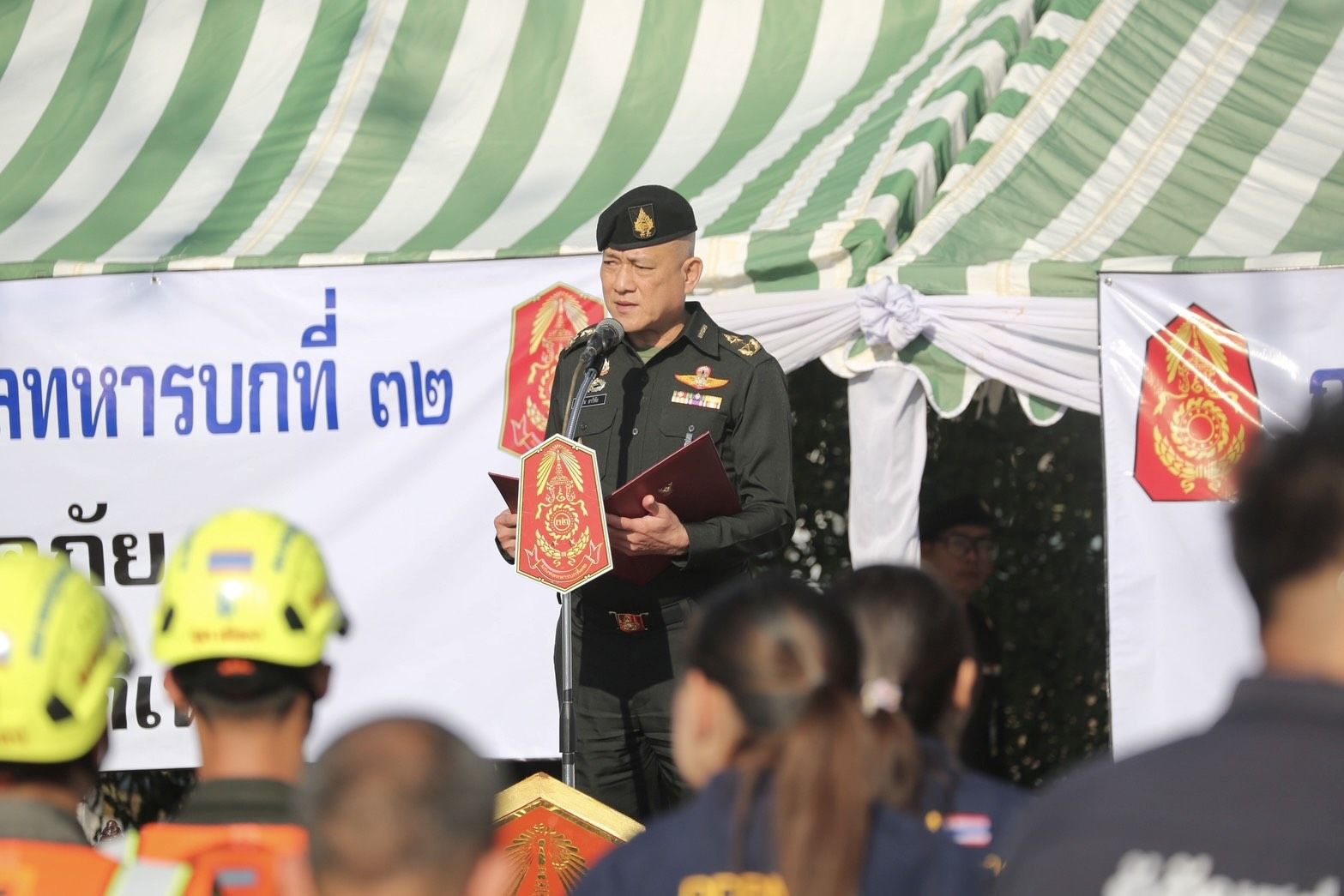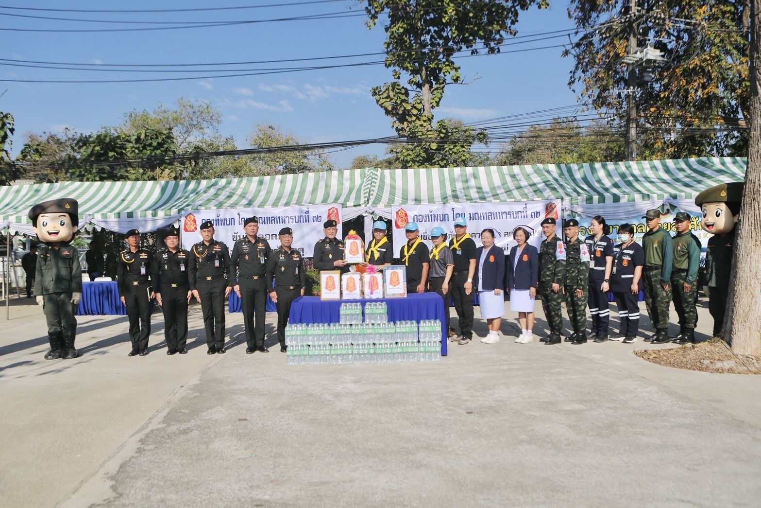 ในโอกาสนี้ ผู้บัญชาการมณฑลทหารบกที่ 32 ได้รับมอบสิ่งของสนับสนุนจากหน่วยงานและจากองค์กรปกครองส่วนท้องถิ่นในพื้นที่สำหรับใช้ในภารกิจ ก่อนจะร่วมกันส่งมอบน้ำดื่มและผ้าเย็นให้กับประชาชนที่สัญจรผ่านจุดบริการ พร้อมทั้งกล่าวอวยพรให้ประชาชนเดินทางกลับภูมิลำเนาและท่องเที่ยวด้วยความปลอดภัย มีสติ และมีสวัสดิภาพตลอดการเดินทางในช่วงเทศกาลปีใหม่นี้.