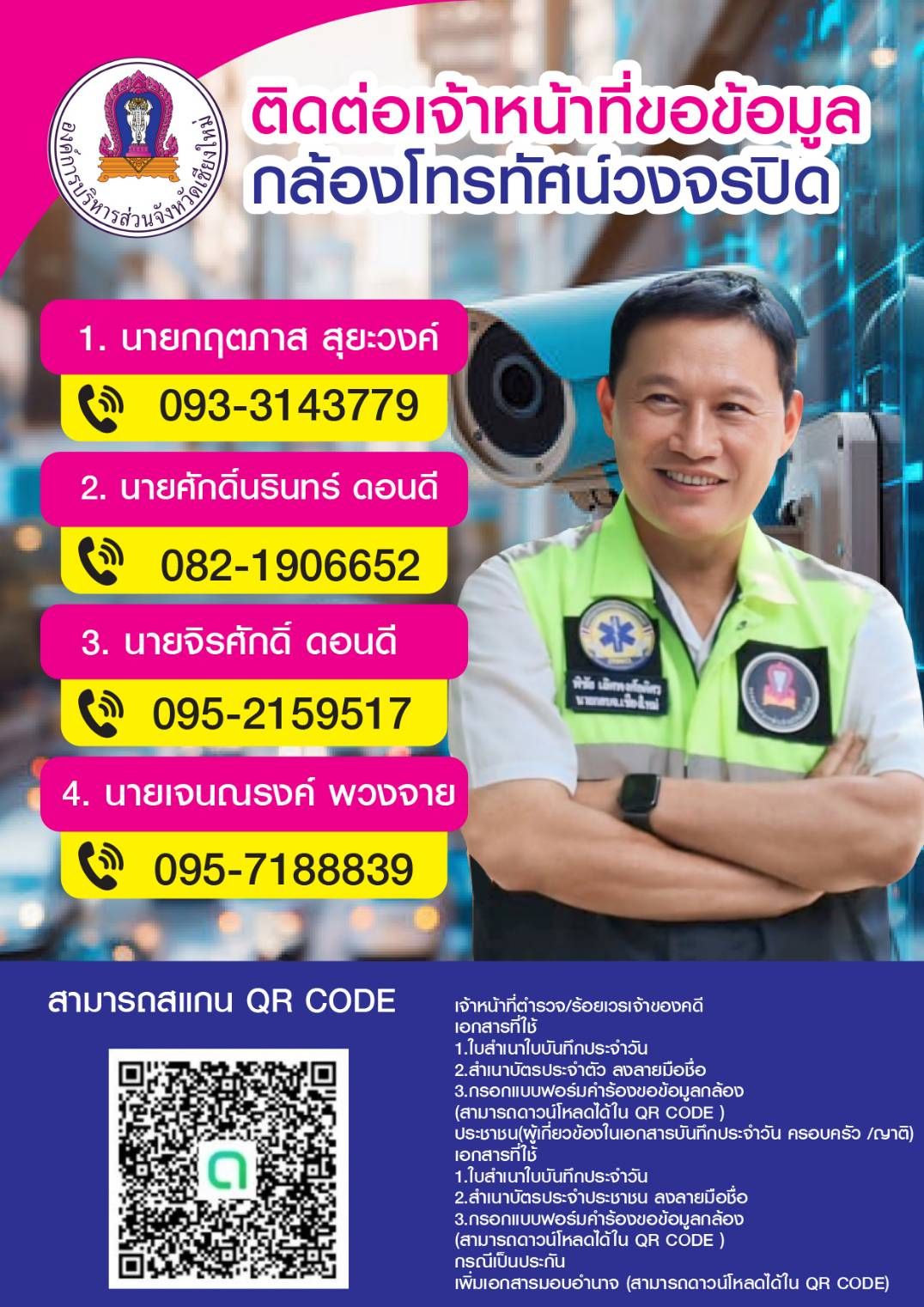 อบจ.เชียงใหม่ เปิดช่องทางขอ “ภาพกล้องวงจรปิด” (CCTV) ช่วยไขคดี/เหตุการณ์สำคัญ โทรเลย!