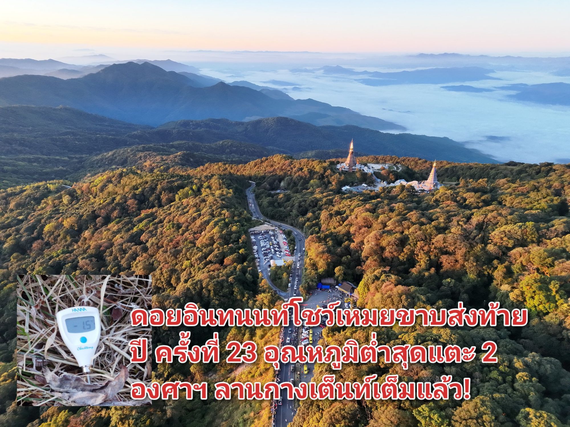 ดอยอินทนนท์โชว์เหมยขาบส่งท้ายปี ครั้งที่ 23 อุณหภูมิต่ำสุดแตะ 2 องศาฯ ลานกางเต็นท์เต็มแล้ว!