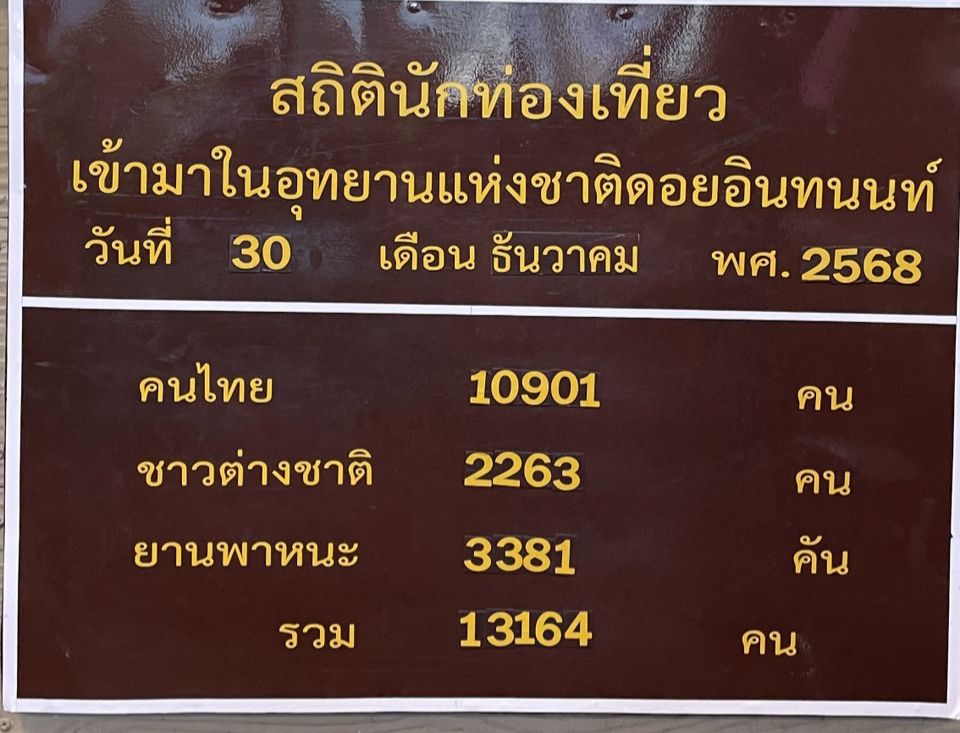 สถิติของทางอุทยานฯ ประจำวันที่ 30 ธันวาคม 2568 พบว่ามีจำนวนผู้มาเยือนรวมกว่าหมื่นคน โดยมีรายละเอียดดังนี้ ชาวไทย 10,901 คน, ชาวต่างชาติ 2,263 คน, รวมจำนวนนักท่องเที่ยว 13,164 คน และจำนวนยานพาหนะ 3,381 คัน