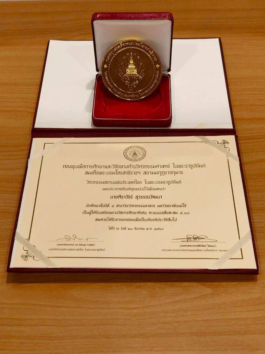 ในการนี้ นายศิราวัชร์ สุวรรณวัฒนา นักศึกษาคณะวิศวกรรมและอุตสาหกรรมเกษตร มหาวิทยาลัยแม่โจ้ ซึ่งมีผลการเรียนดีเยี่ยม เกรดเฉลี่ยสะสม 4.00 เข้ารับเหรียญรางวัลเรียนดี เมื่อวันที่ 23 ธันวาคม 2568