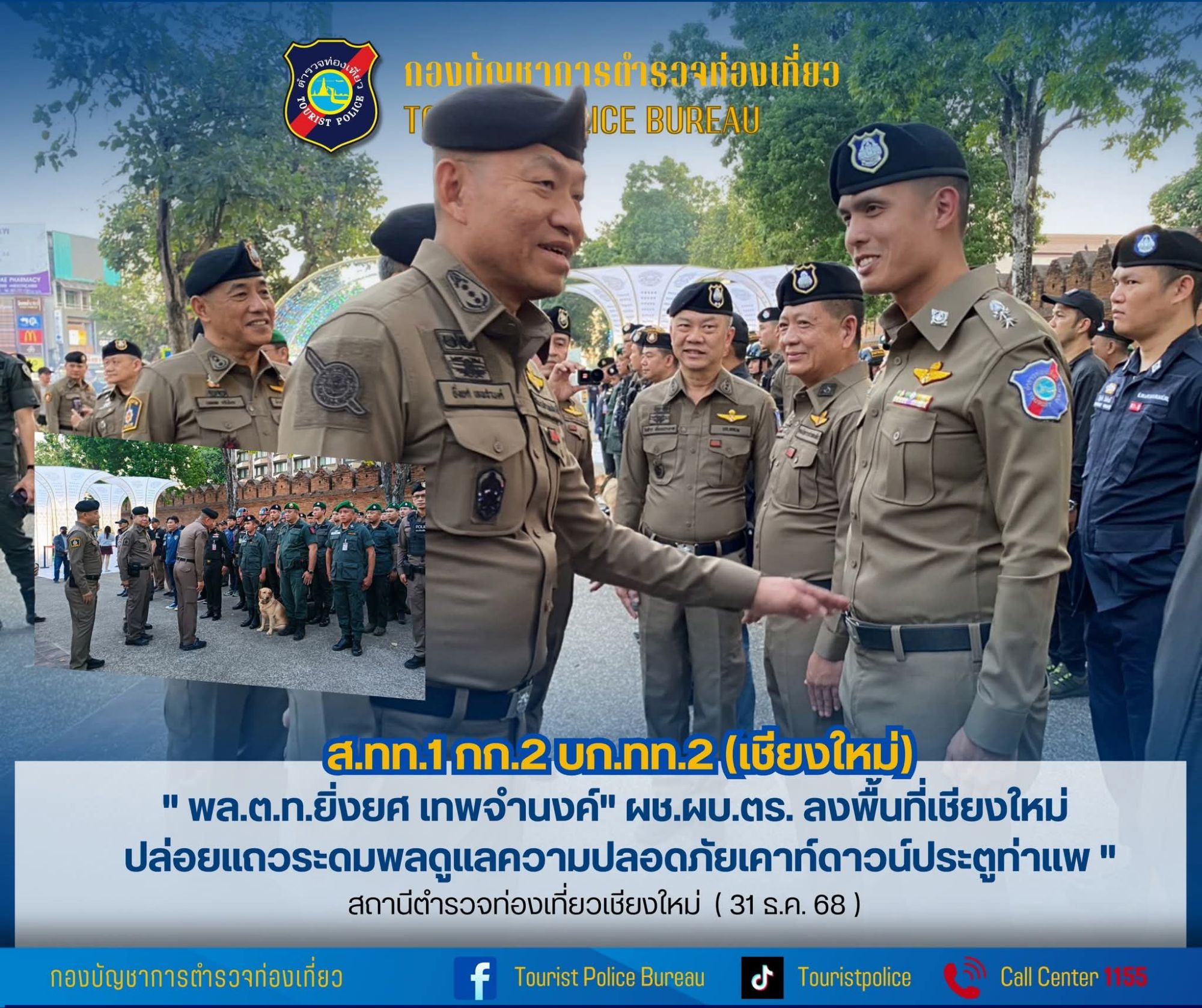 เชียงใหม่-พล.ต.ท.ยิ่งยศ เทพจำนงค์ ผช.ผบ.ตร. ลงพื้นที่เชียงใหม่ ปล่อยแถวระดมพลดูแลความปลอดภัยเคาท์ดาวน์ประตูท่าแพ