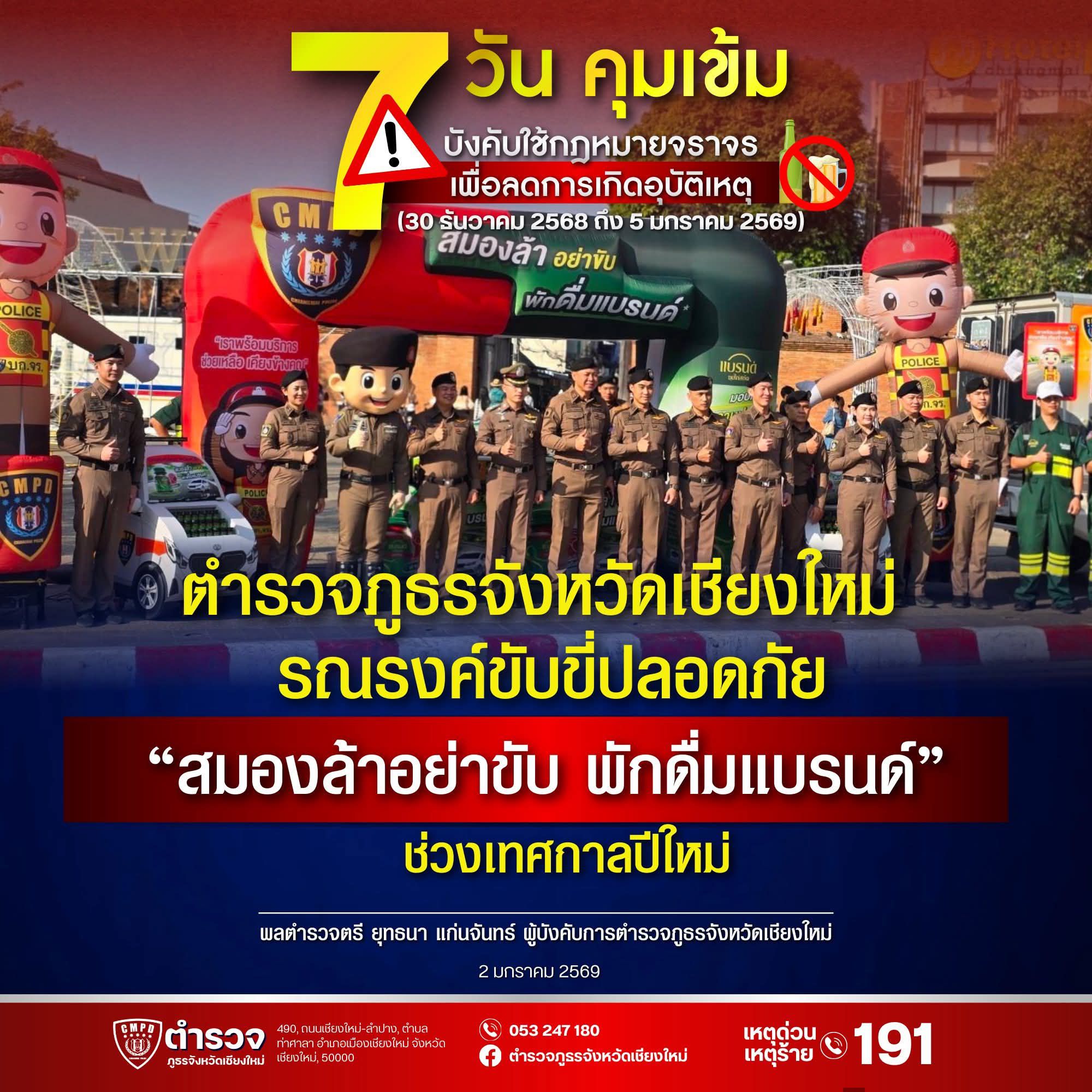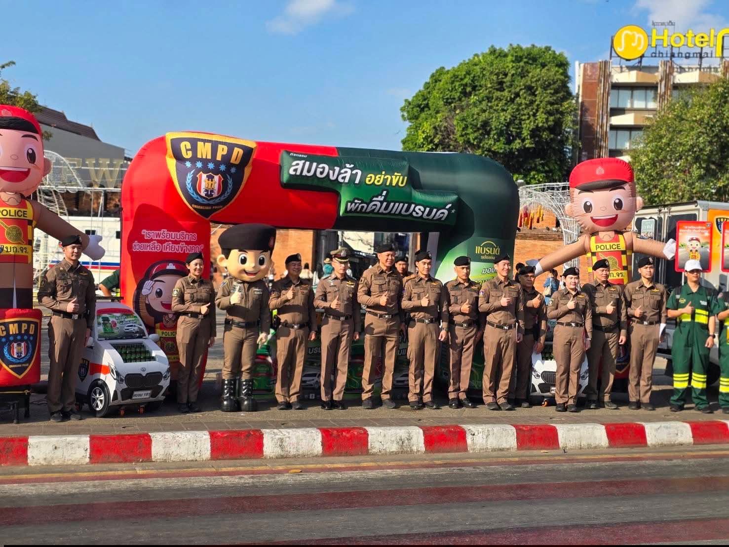 ตำรวจเชียงใหม่รณรงค์ขับขี่ปลอดภัย “สมองล้าอย่าขับ พักดื่มแบรนด์” ช่วงเทศกาลปีใหม่