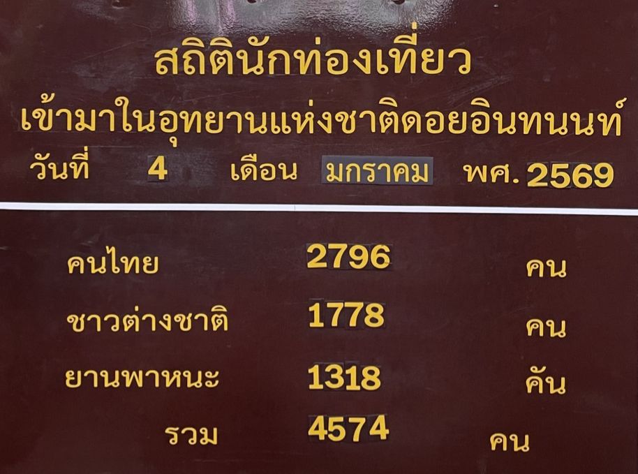 สำหรับสถิตินักท่องเที่ยวที่เดินทางเข้ามาสัมผัสธรรมชาติเมื่อวานนี้ (4 มกราคม 2569) มียอดสะสมพุ่งสูงถึง 4,574 คน แบ่งเป็นชาวไทย 2,796 คน และชาวต่างชาติ 1,778 คน โดยมีปริมาณยานพาหนะรวมทั้งสิ้น 1,318 คัน