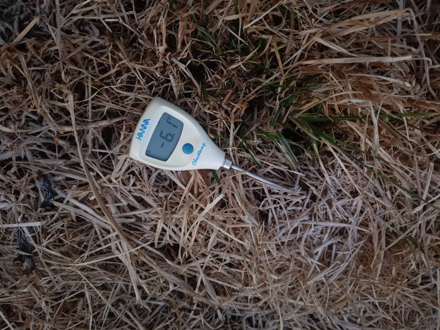 โดยในเช้าวันที่ 6 มกราคม 2569 เวลา 07.00 น. บริเวณยอดดอยมีอุณหภูมิต่ำสุดเพียง 2 องศาเซลเซียส ขณะที่อุณหภูมิยอดหญ้าดิ่งลงต่ำสุดถึง -6.1 องศาเซลเซียส ทำให้เกิดเกล็ดน้ำค้างแข็งเกาะตัวหนาแน่นทั่วบริเวณหน่วยพิทักษ์ยอดดอย (อน.5) รวมถึงบริเวณกิโลเมตรที่ 43 ถึง 44 ซึ่งอุณหภูมิยอดหญ้าจุดนั้นวัดได้ -1.6 องศาเซลเซียส แม้ว่าเช้านี้สภาพอากาศที่ยอดดอยและกิ่วแม่ปานจะปิด แต่คุณภาพอากาศยังคงอยู่ในเกณฑ์ดีมาก โดยที่กิ่วแม่ปานวัดอุณหภูมิได้ 4 องศาเซลเซียส และที่ทำการอุทยานฯ วัดได้ 7 องศาเซลเซียส