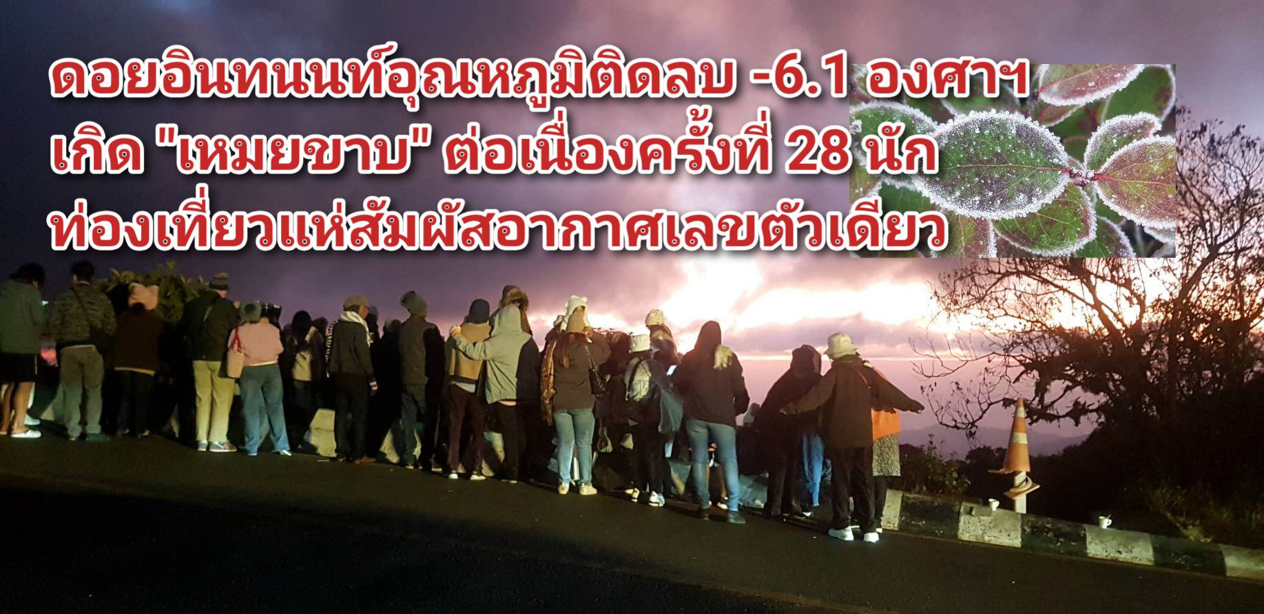 ดอยอินทนนท์อุณหภูมิติดลบ -6.1 องศาฯ เกิด “เหมยขาบ” ต่อเนื่องครั้งที่ 28 นักท่องเที่ยวแห่สัมผัสอากาศเลขตัวเดียว