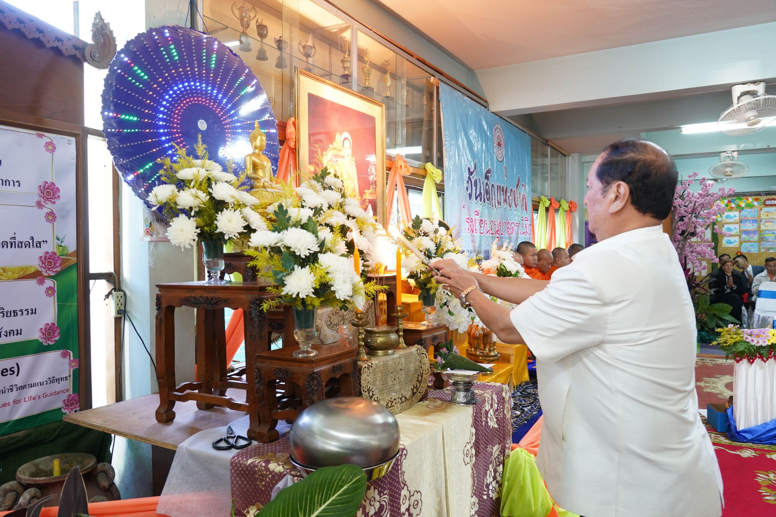 โอกาสนี้ พระครูอมรธรรมทัต ประธานสงฆ์ ได้แสดงธรรมโอวาทแก่คณะผู้บริหาร คณะครู นักเรียน และผู้ปกครอง เพื่อเป็นแนวทางในการดำเนินชีวิตอย่างมีสติ มีคุณธรรม และประสบความสำเร็จในอนาคต พร้อมทั้งให้พรเพื่อความเป็นสิริมงคลแก่ผู้เข้าร่วมงานทุกคน