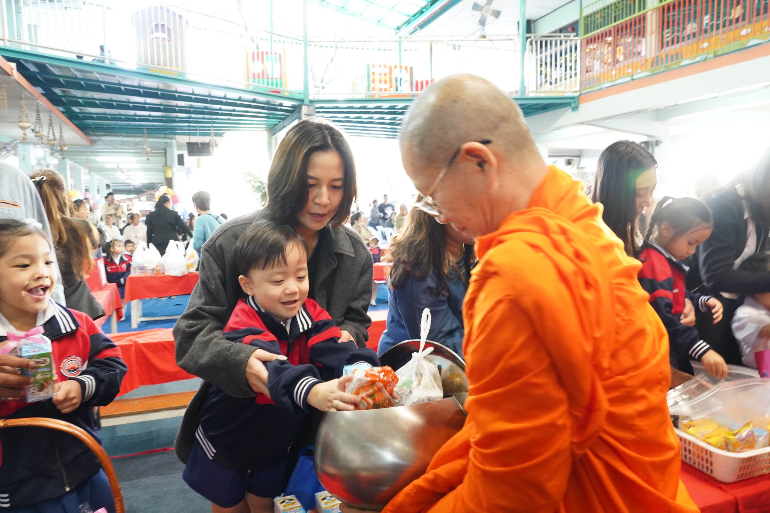วันพฤหัสบดีที่ 8 มกราคม พ.ศ.2569 โรงเรียนอนุบาลดรุณนิมิต จัดกิจกรรมเนื่องในวันเด็กแห่งชาติ ประจำปี 2569 ภายใต้แนวคิด “รักชาติไทย ใส่ใจโลก” โดยมีนางธวัช–พรรณี บุญประเสริฐ ผู้อำนวยการและผู้จัดการโรงเรียน เป็นประธานในพิธี นิมนต์พระครูอมรธรรมทัต เจ้าอาวาสวัดพันอ้น จังหวัดเชียงใหม่ นำพระภิกษุสามเณรออกบิณฑบาตรับข้าวสารอาหารแห้งจากคณะผู้บริหาร คณะครู นักเรียน และผู้ปกครอง เพื่อปลูกฝังคุณธรรม จริยธรรม และการรู้จักแบ่งปันแก่เยาวชน ณ โรงเรียนอนุบาลดรุณนิมิต ตำบลช้างคลาน อำเภอเมืองเชียงใหม่ จังหวัดเชียงใหม่