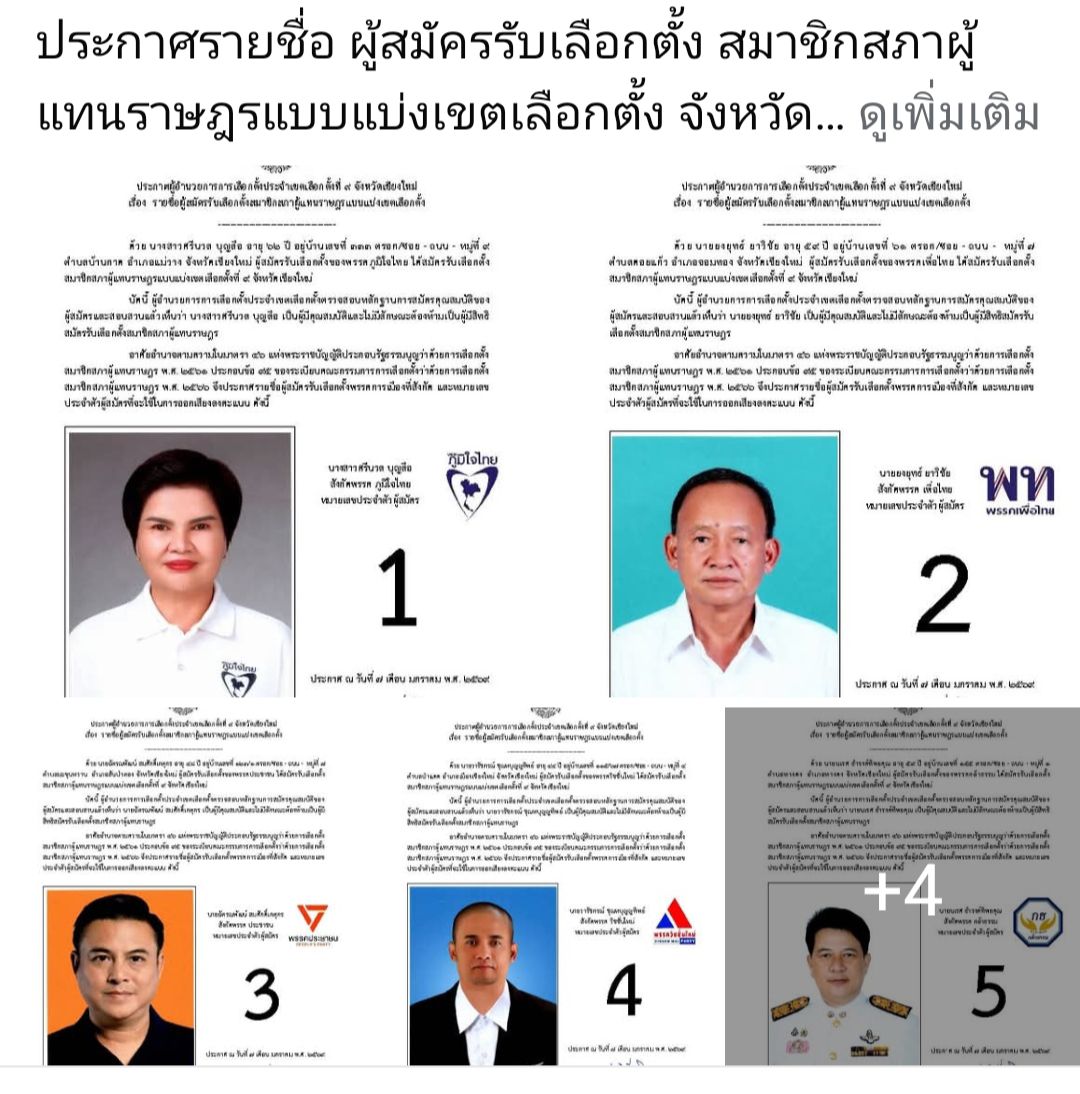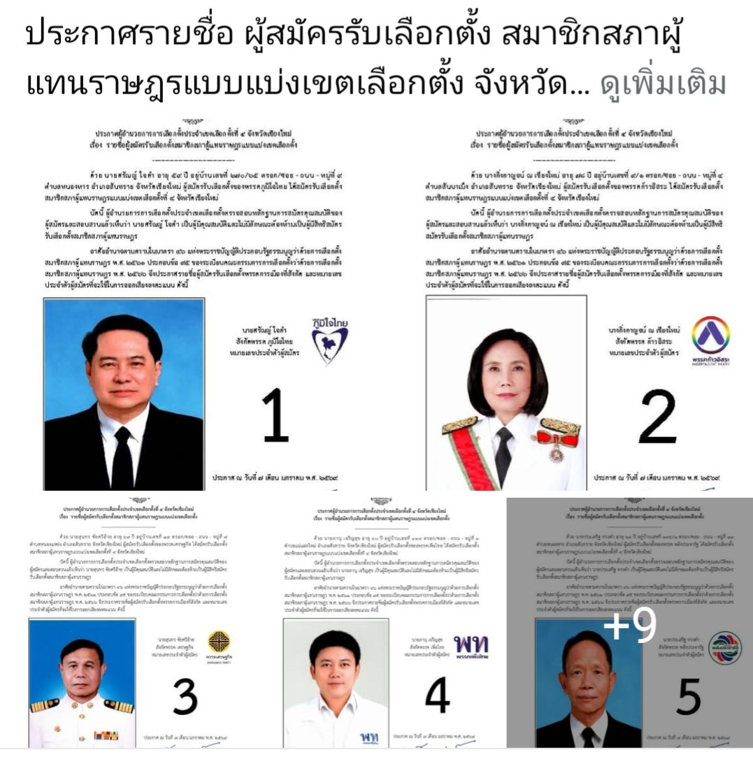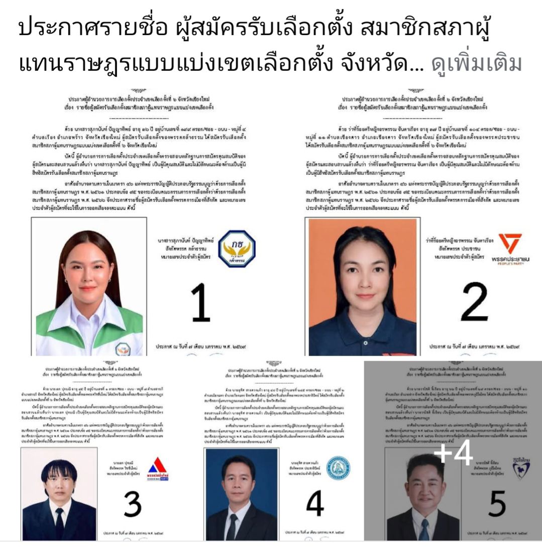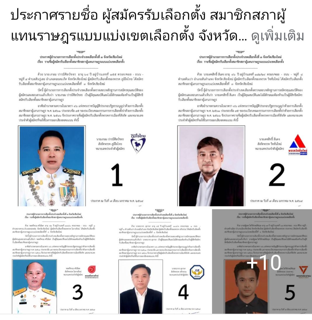 นายนพดล สุยะ ผู้อำนวยการสำนักงานคณะกรรมการการเลือกตั้งประจำจังหวัดเชียงใหม่ ประชาสัมพันธ์การประกาศรายชื่อผู้สมัครรับเลือกตั้งสมาชิกสภาผู้แทนราษฎร (สส.) แบบแบ่งเขตเลือกตั้งจังหวัดเชียงใหม่ ทั้ง 10 เขตเลือกตั้ง โดยมีผู้สมัครรับเลือกตั้งรวมจำนวน 107 ราย ซึ่งผลการตรวจสอบพบว่า มีผู้ที่มีคุณสมบัติครบถ้วนและไม่มีลักษณะต้องห้ามจำนวน 106 ราย