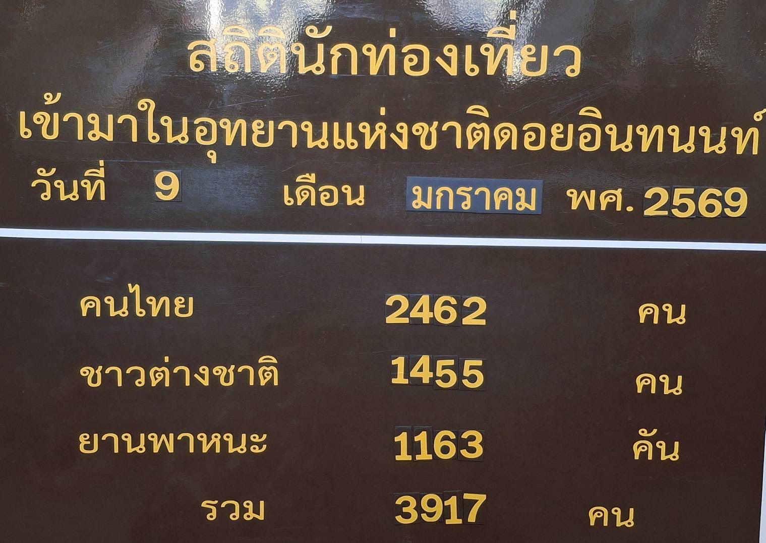 สำหรับสถิตินักท่องเที่ยวที่เดินทางเข้ามาในพื้นที่อุทยานแห่งชาติดอยอินทนนท์ล่าสุด พบว่ามีจำนวนรวมกว่า 3,917 คน แบ่งเป็นชาวไทย 2,462 คน และชาวต่างชาติ 1,455 คน โดยมีปริมาณยานพาหนะสะสมกว่า 1,163 คัน
