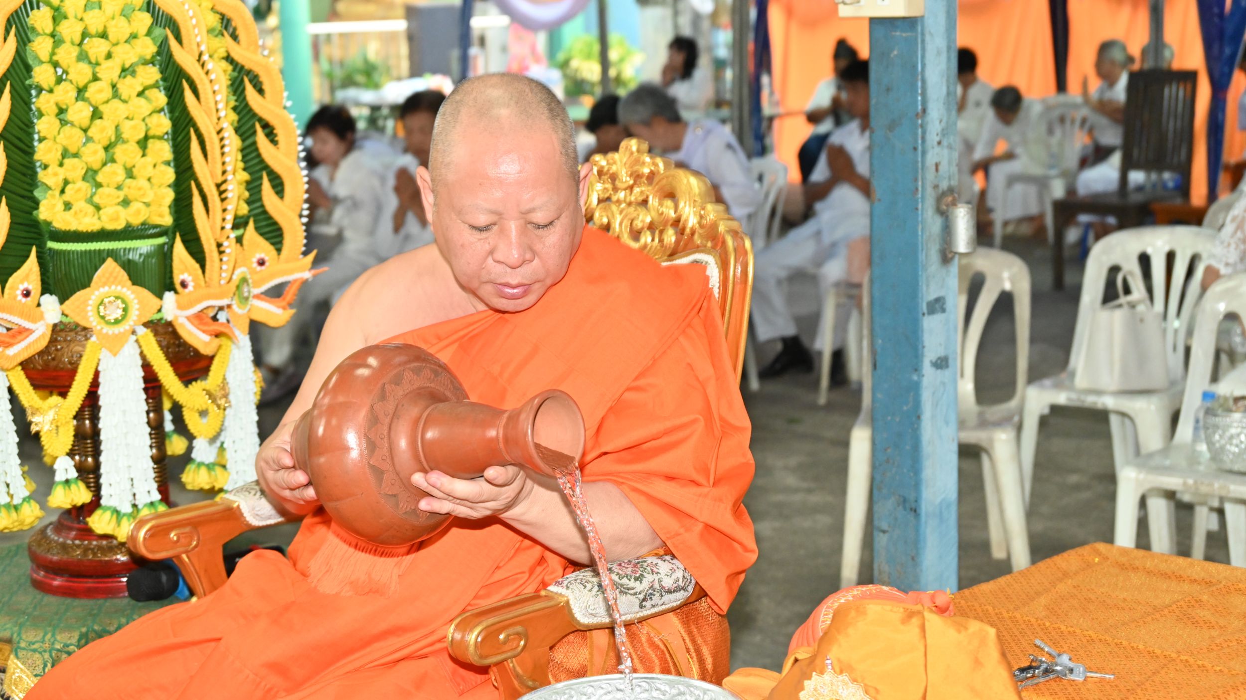 ขณะเดียวกัน ฝ่ายฆราวาสได้รับเกียรติจาก ดร.รุ่งปรีชา ปั๋นแก้ว นายกเทศมนตรีตำบลป่าแดด เป็นประธานฝ่ายฆราวาส พร้อมด้วยคณะผู้บริหาร สมาชิกสภาเทศบาล ผู้นำชุมชน และประชาชนในพื้นที่เข้าร่วมพิธีอย่างพร้อมเพรียง
