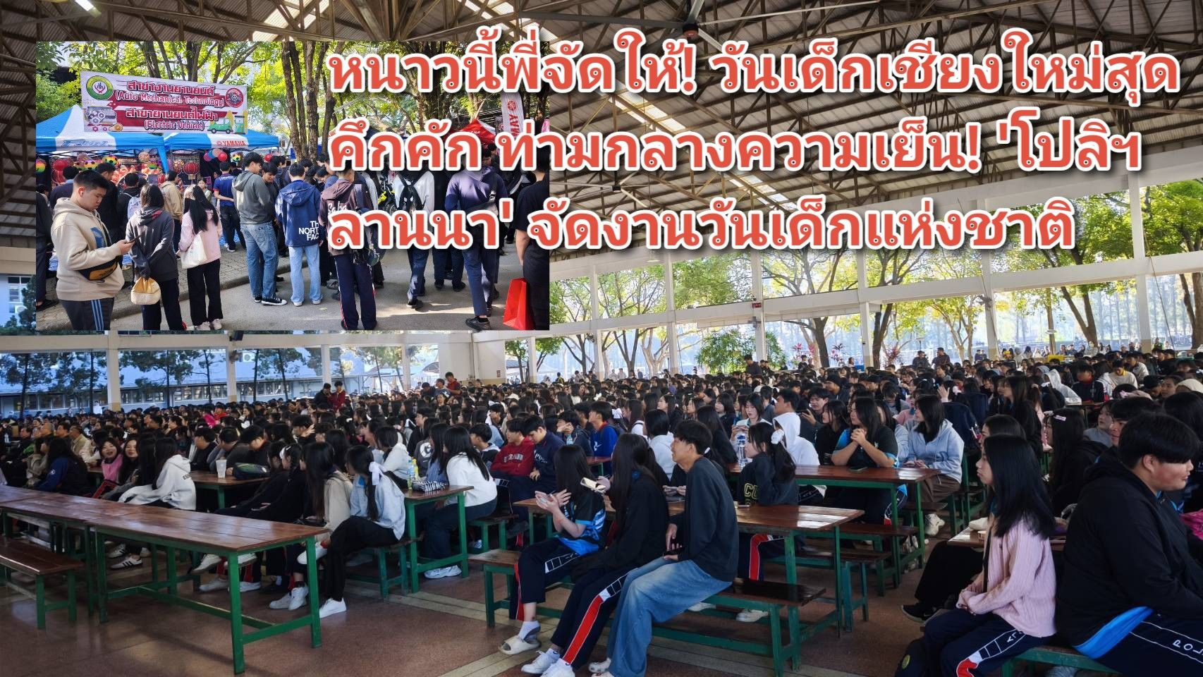ผู้สื่อข่าวพาไปที่วิทยาลัยโปลิเทคนิคลานนา อำเภอเมืองเชียงใหม่ จังหวัดเชียงใหม่ อีกหนึ่งสถานที่จัดกิจกรรมเนื่องในวันเด็กแห่งชาติปีนี้ มีกิจกรรมต่างๆ ให้ได้สนุกสนาน เช่น การประกวดร้องเพลง การแข่งขันฟุตบอล การแข่งขันเกมส์ออนไลน์ มีบริษัทห้างร้านเข้ามาจัดบูทแจกขนม ของเล่น กิจกรรมให้ร่วมสนุกตลอดทั้งวันนี้