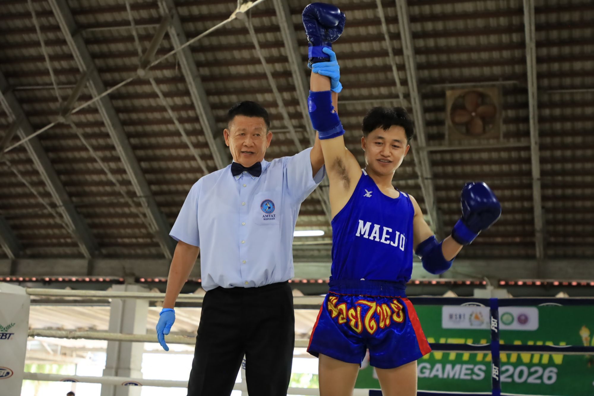 ม.แม่โจ้ ชนะน๊อค มรภ.สุราษฎร์ฯ มวยไทยสมัครเล่น รุ่นไลท์เวท นน. 60 กก.ชาย ในศึก “อินทนิลเกมส์ 2026”
