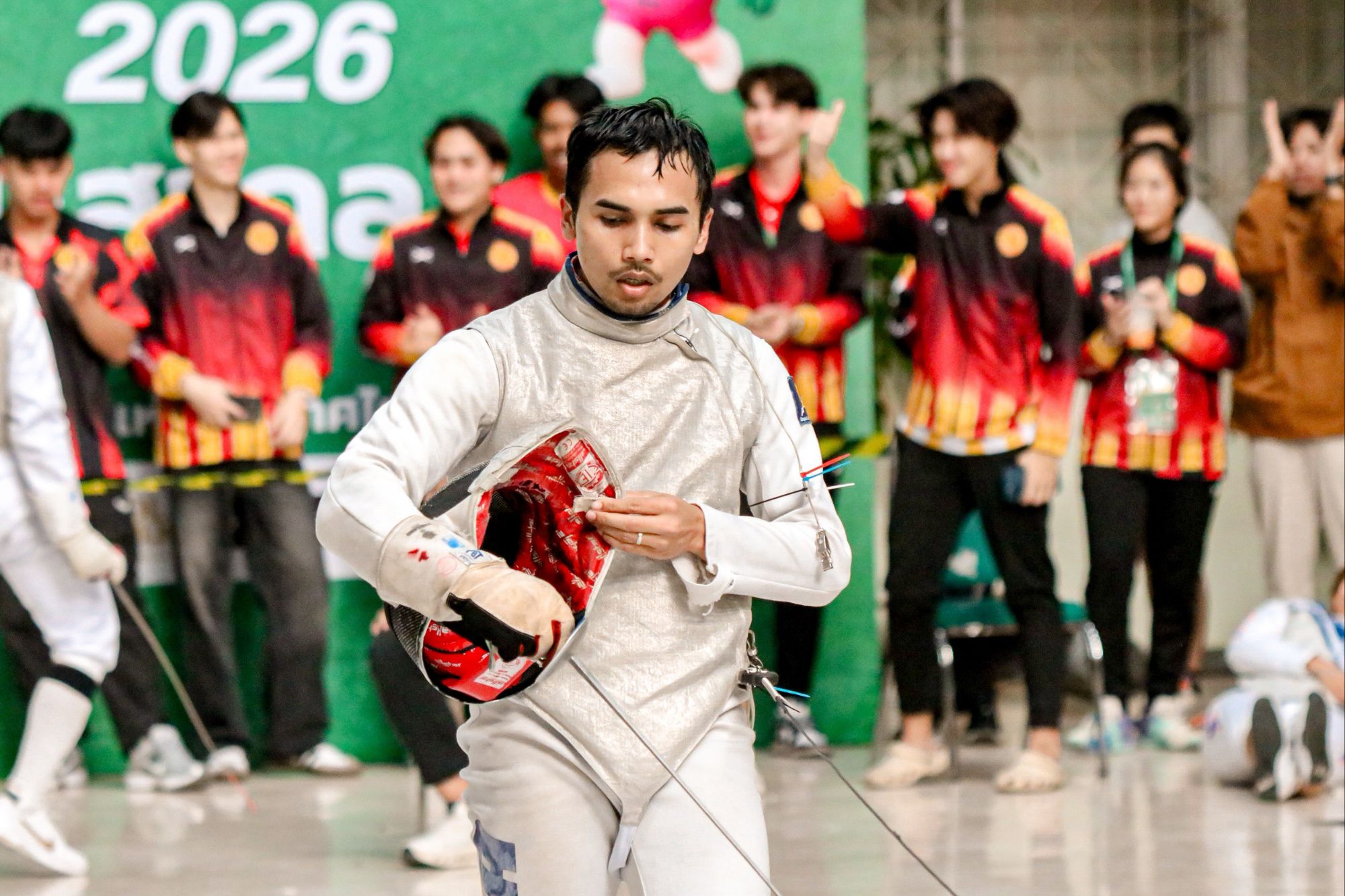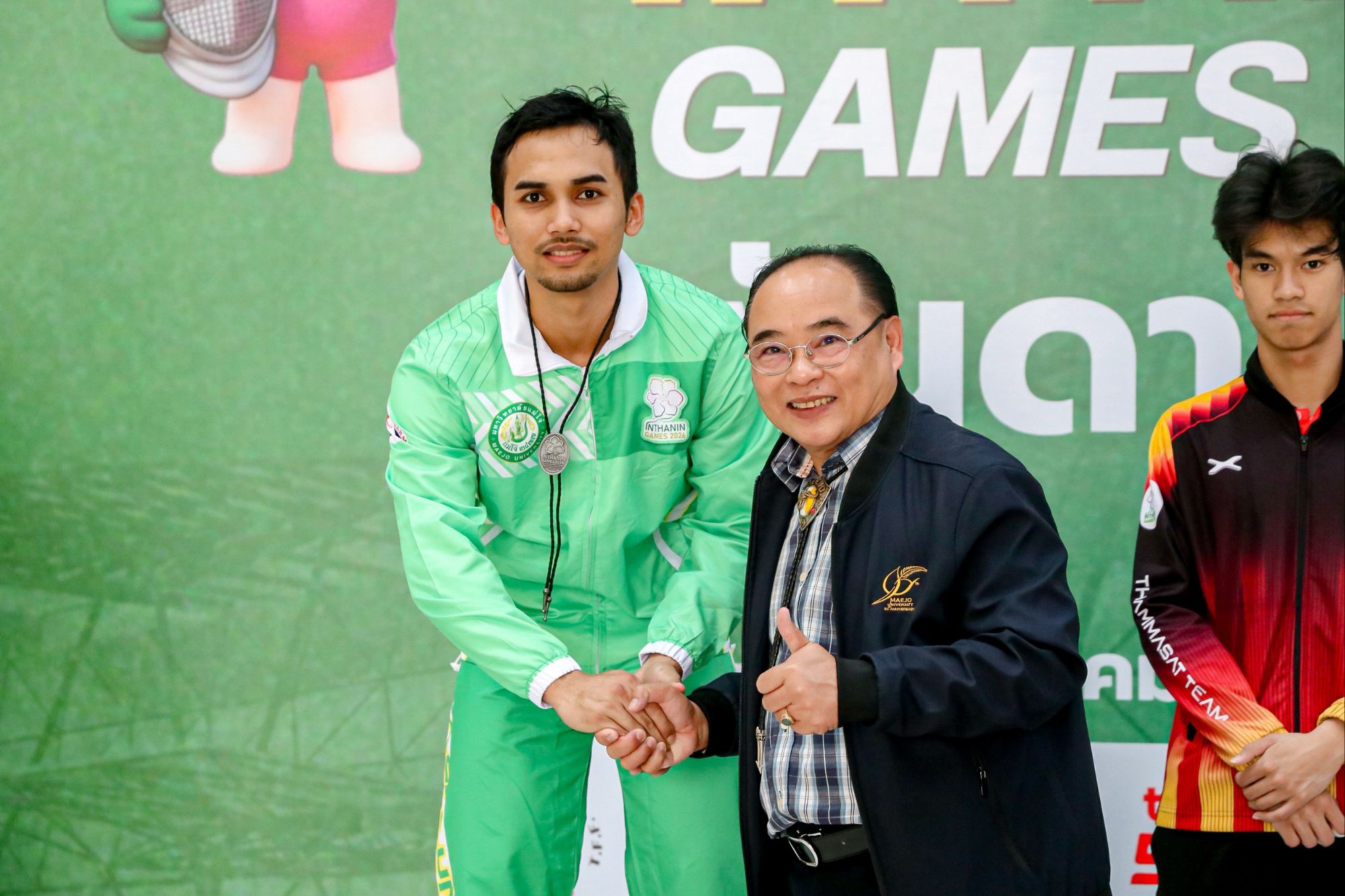 จากมหาวิทยาลัยแม่โจ้ คว้าเหรีญเงินการแข่งขันกีฬาฟันดาบสากล ประเภท Senior Men’s Foil พบกับ นายเจ้าคุณ จันทร์สิริธร จากมหาวิทยาลัยธรรมศาสตร์ ด้วยสกอ 11:15 ซึ่งเป็นเหรียญรางวัลแรกของทัพนักกีฬามหาวิทยาลัยแม่โจ้ในการแข่งขันกีฬามหาวิทยาลัยแห่งประเทศไทย ครั้งที่ 51 “อินทนิลเกมส์ 2026”