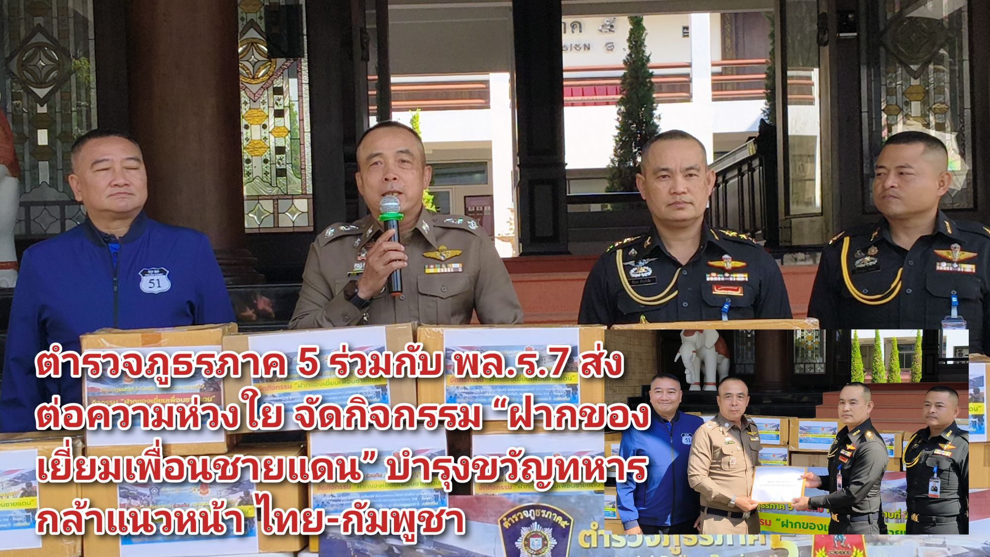 ตำรวจภูธรภาค 5 ร่วมกับ พล.ร.7 ส่งต่อความห่วงใย จัดกิจกรรม “ฝากของเยี่ยมเพื่อนชายแดน” บำรุงขวัญทหารกล้าแนวหน้า ไทย-กัมพูชา