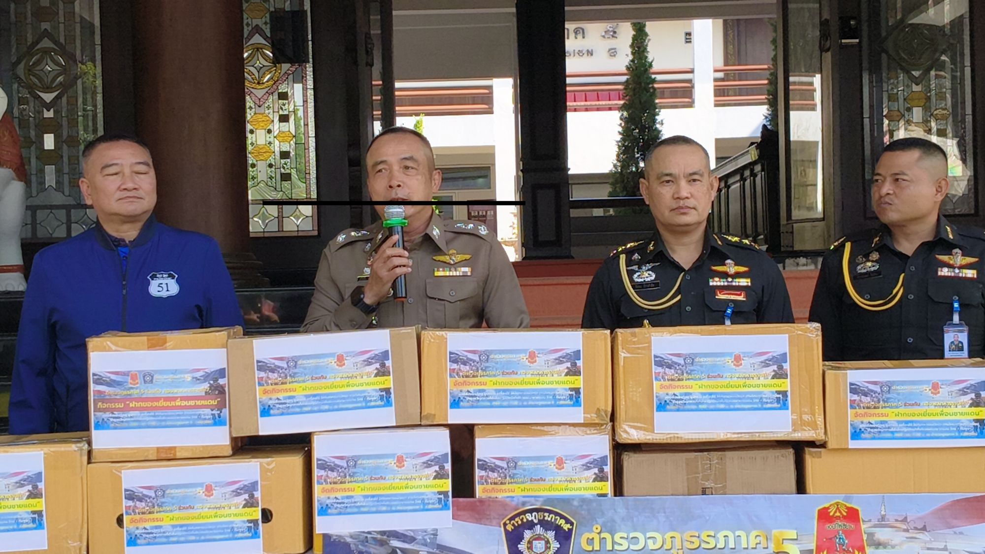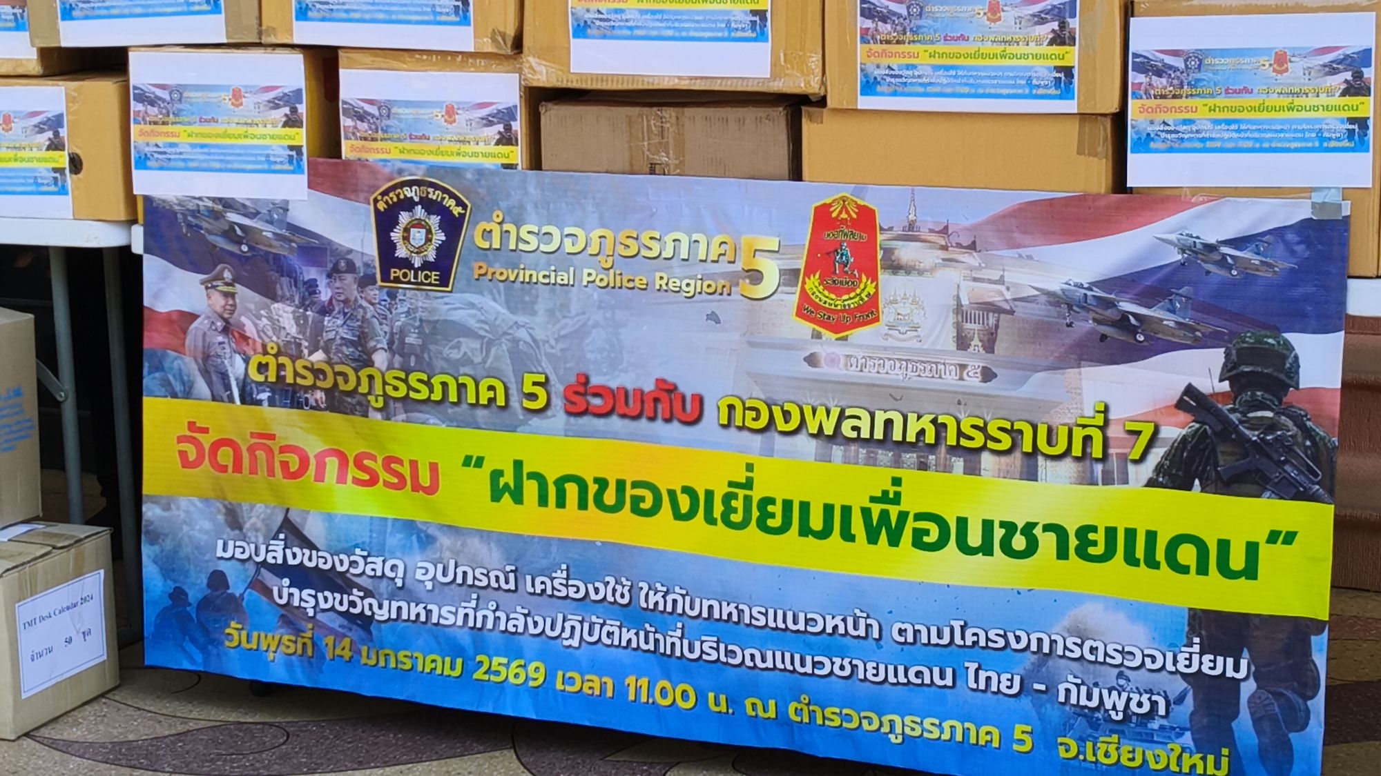 เชียงใหม่ – เมื่อเวลา 11.00 น. วันที่ 14 มกราคม 2569 ณ บริเวณหน้าอาคารที่ทำการตำรวจภูธรภาค 5 อำเภอเมือง จังหวัดเชียงใหม่ ได้มีการจัดพิธีส่งมอบสิ่งของอุปโภคบริโภคตามโครงการ “ฝากของเยี่ยมเพื่อนชายแดน” ซึ่งเป็นการผนึกกำลังระหว่างหน่วยงานตำรวจและทหาร เพื่อสนับสนุนการปฏิบัติหน้าที่ของรั้วของชาติ