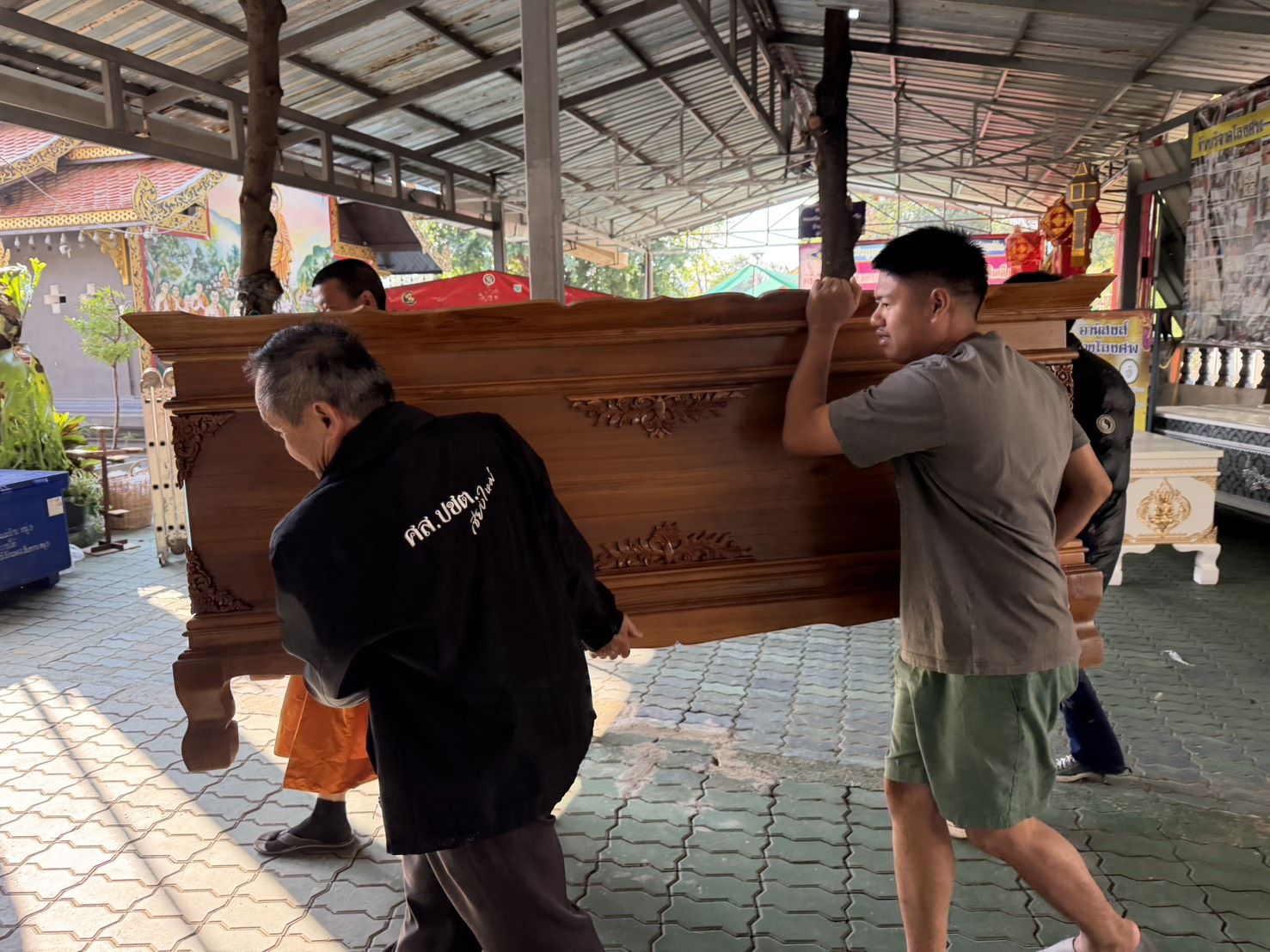 คณะสงฆ์ตำบลท่าศาลา–หนองป่าครั่ง อุทิศกุศลแก่ผู้วายชนม์ มอบโลงศพ 2 โลง เพื่อบำเพ็ญกุศลตามประเพณี