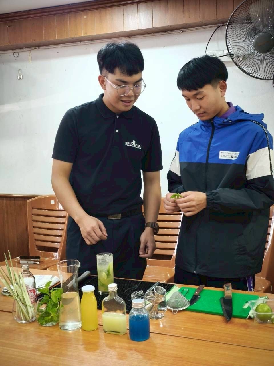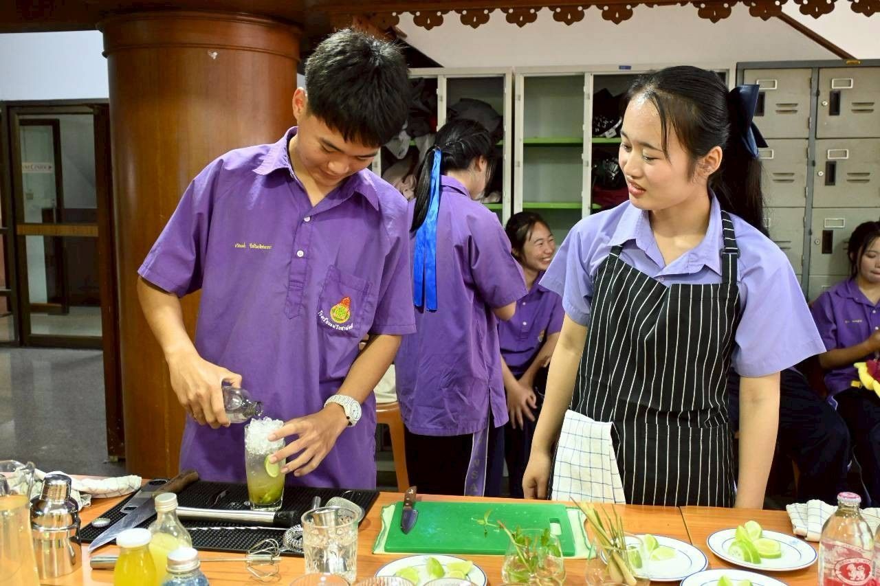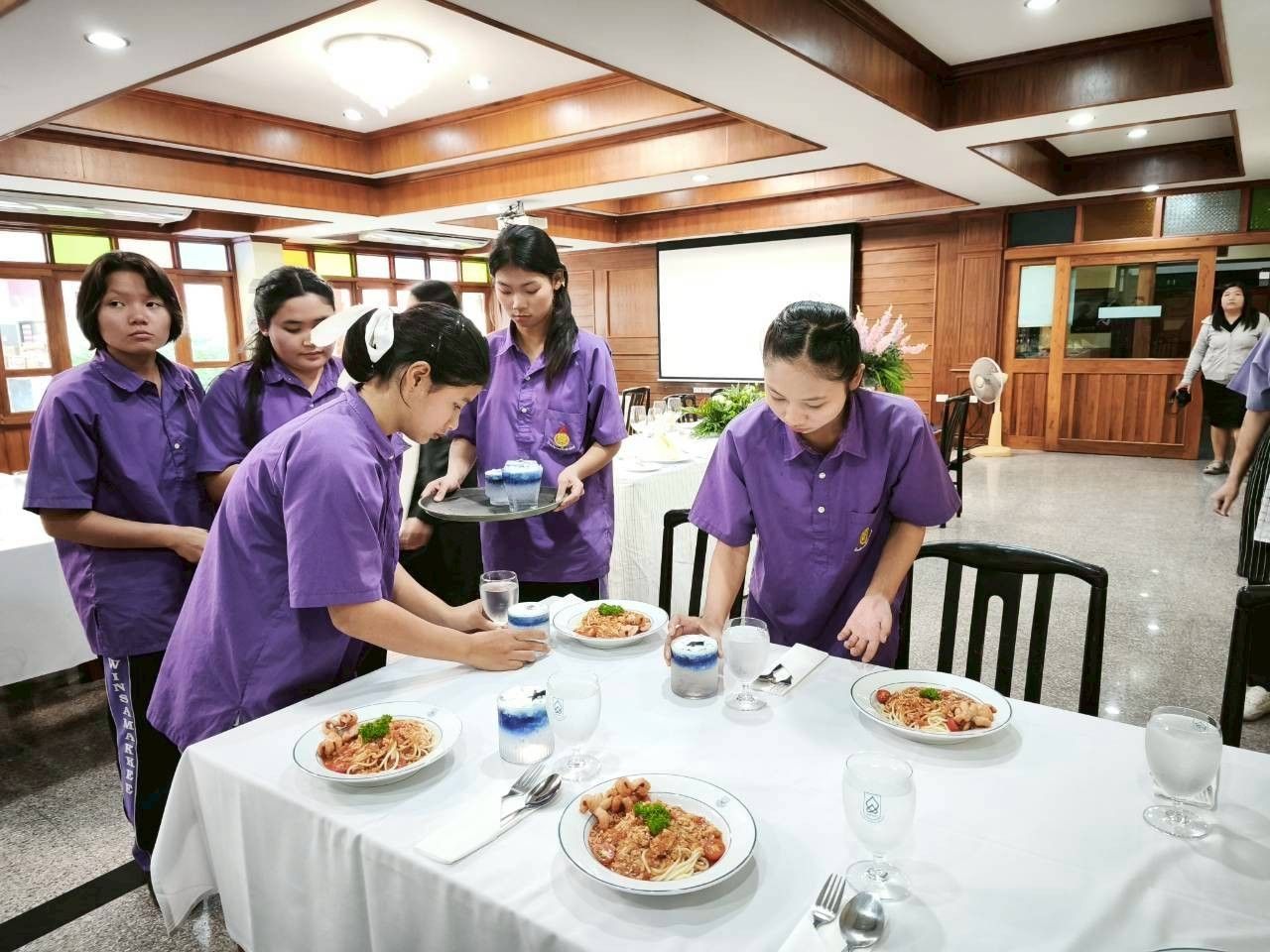 จุดหมายแรก คณะครูและนักเรียนได้เข้าศึกษาดูงาน ณ แผนกวิชาการโรงแรม วิทยาลัยอาชีวศึกษาเชียงใหม่ โดยนักเรียนได้เรียนรู้และสัมผัสบรรยากาศการทำงานในอุตสาหกรรมการบริการระดับมืออาชีพ ตั้งแต่ทักษะการต้อนรับ การบริหารจัดการส่วนหน้า ไปจนถึงบทบาทสำคัญของการสื่อสารด้วยภาษาต่างประเทศในธุรกิจโรงแรม ซึ่งถือเป็นหัวใจหลักในการสร้างความประทับใจแก่ผู้รับบริการชาวต่างชาติ