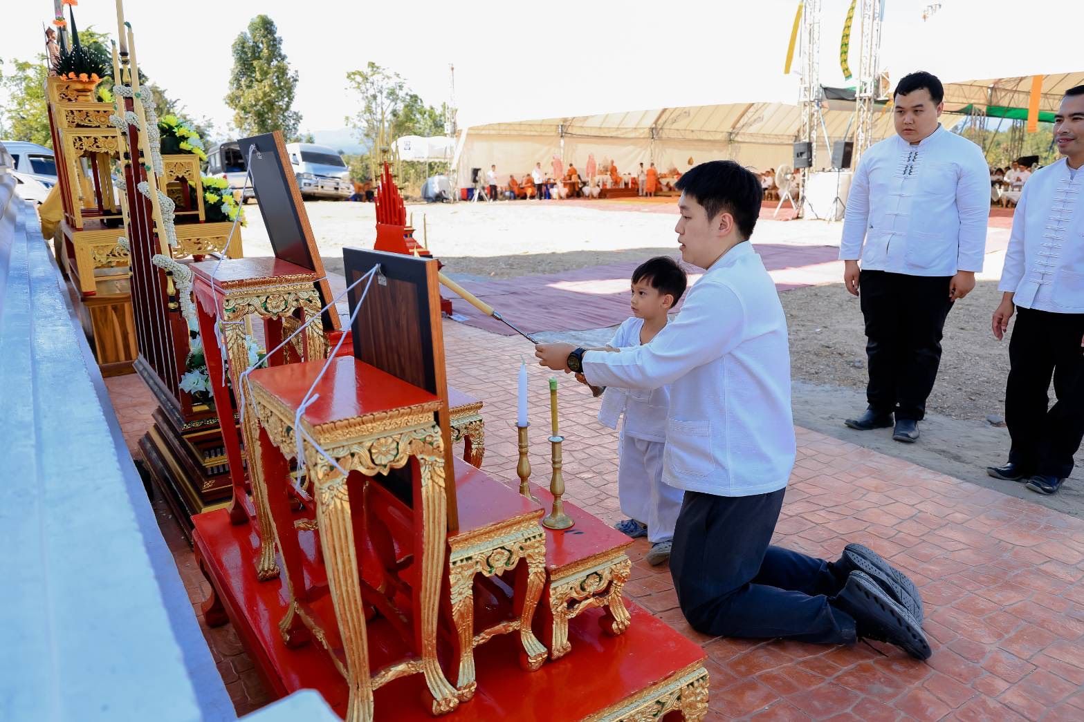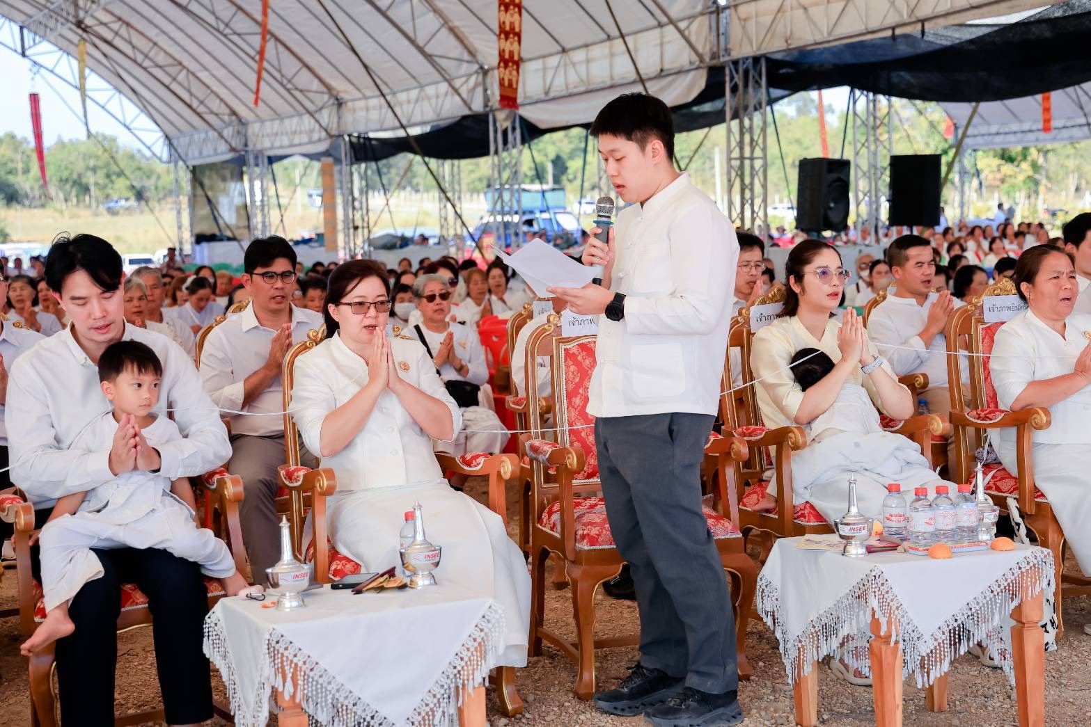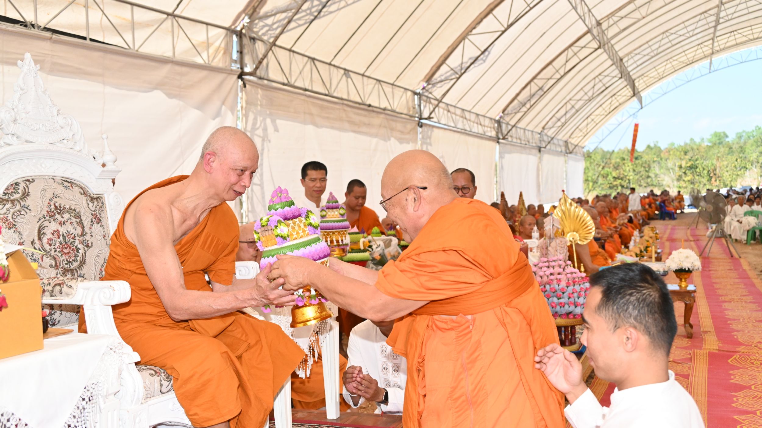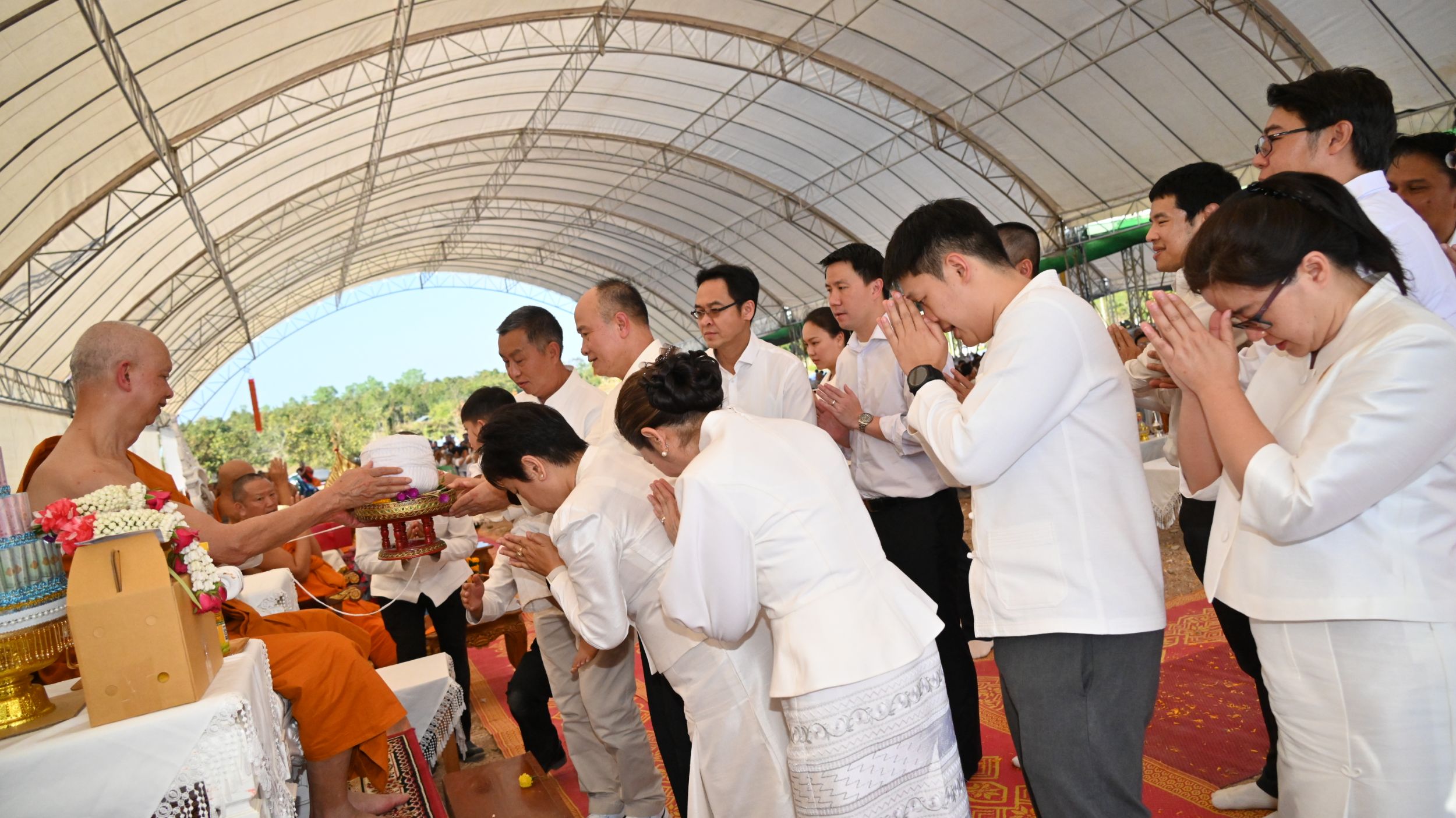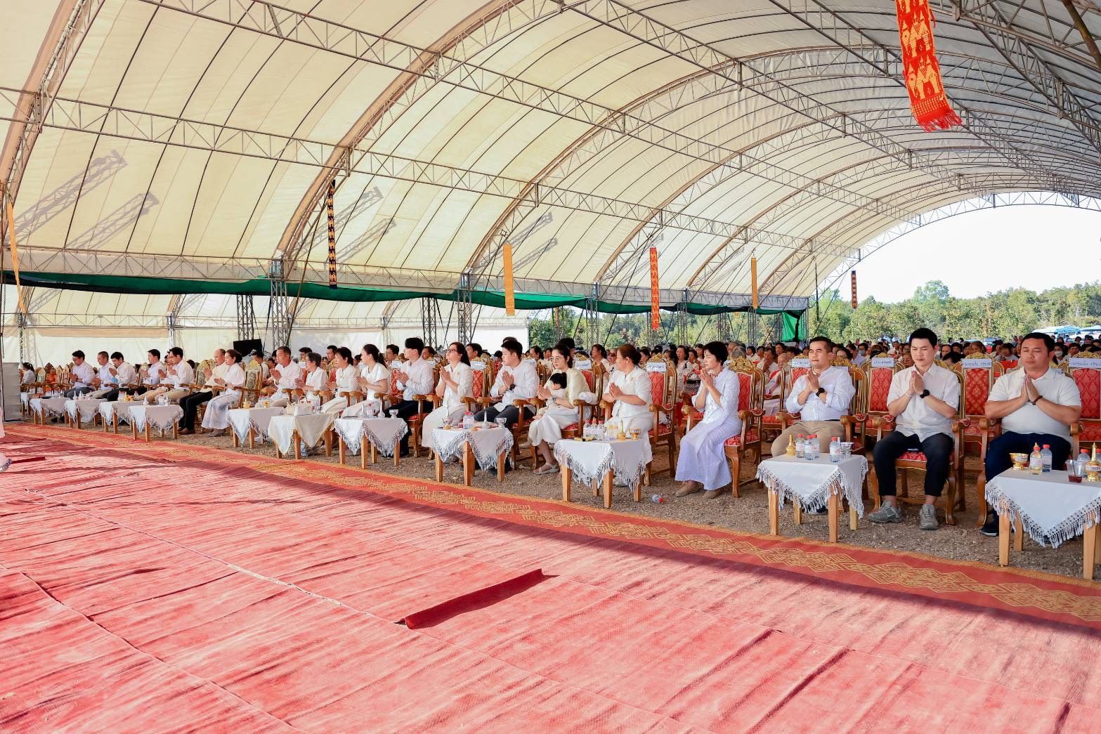 ในพิธีได้รับความเมตตาจาก พระธรรมเสนาบดี เจ้าคณะภาค 7 เจ้าอาวาสวัดพระธาตุดอยสุเทพราชวรวิหาร เป็นประธานฝ่ายสงฆ์ ขณะที่ฝ่ายฆราวาสมี พล.ต.อ.ประจวบ วงศ์สุข อดีตรองผู้บัญชาการตำรวจแห่งชาติ เป็นประธาน นอกจากนี้มี นายรัฐพล นราดิศร ผู้ว่าราชการจังหวัดเชียงใหม่ นายศิวะ ธมิกานนท์ รองผู้ว่าราชการจังหวัดเชียงใหม่ พร้อมด้วย นายปรีชา ศิรินาม นายอำเภอดอยหล่อ นางอารีย์พันธุ์จันทร์ ผู้อำนวยการสำนักงานพระพุทธศาสนาจังหวัดเชียงใหม่ นายจรัญ ทรเทพ ผู้ใหญ่บ้านหมู่ที่ 18 บ้านโทกเสือ เข้าร่วมพิธีและร่วมแสดงความยินดี